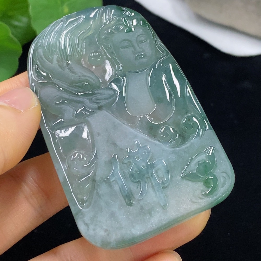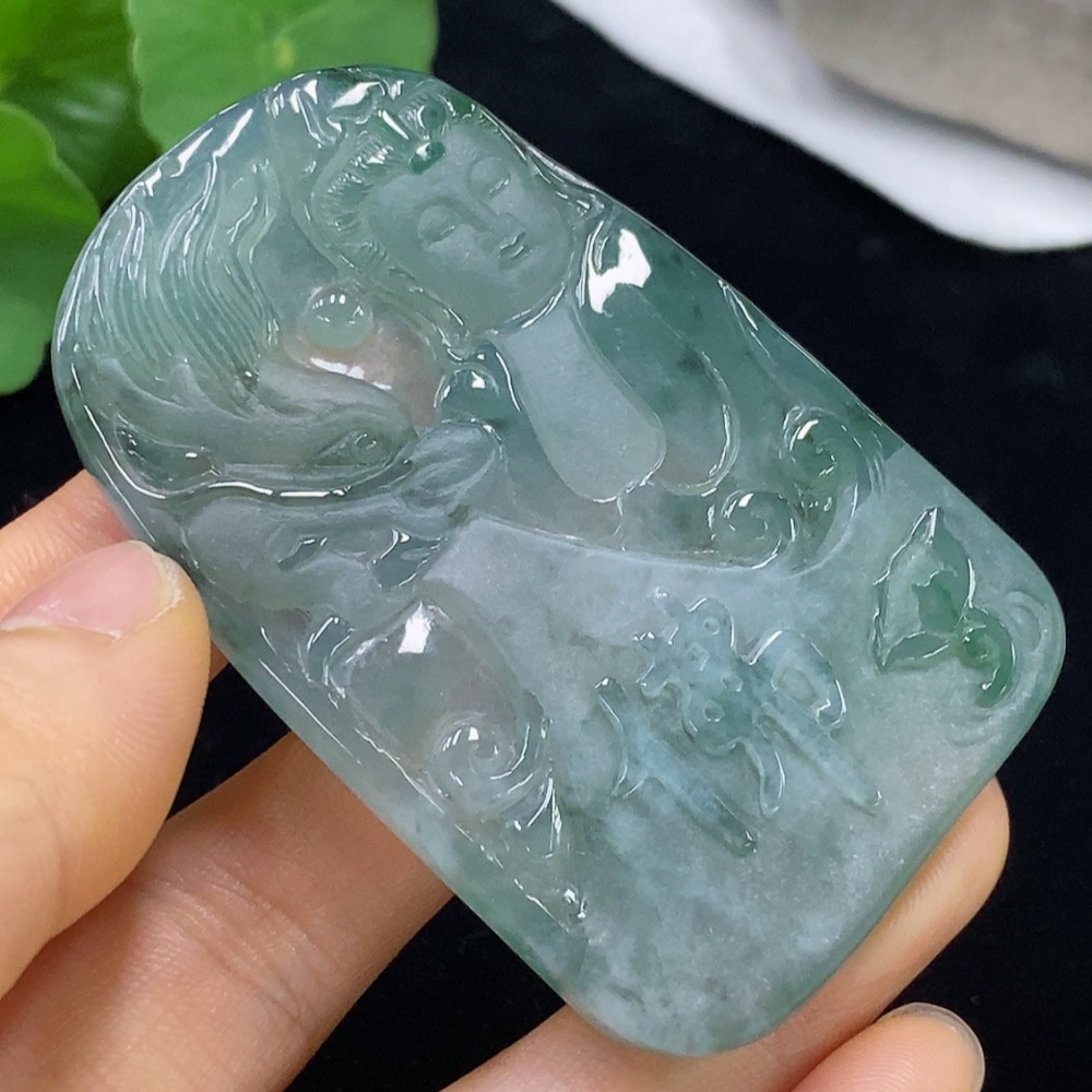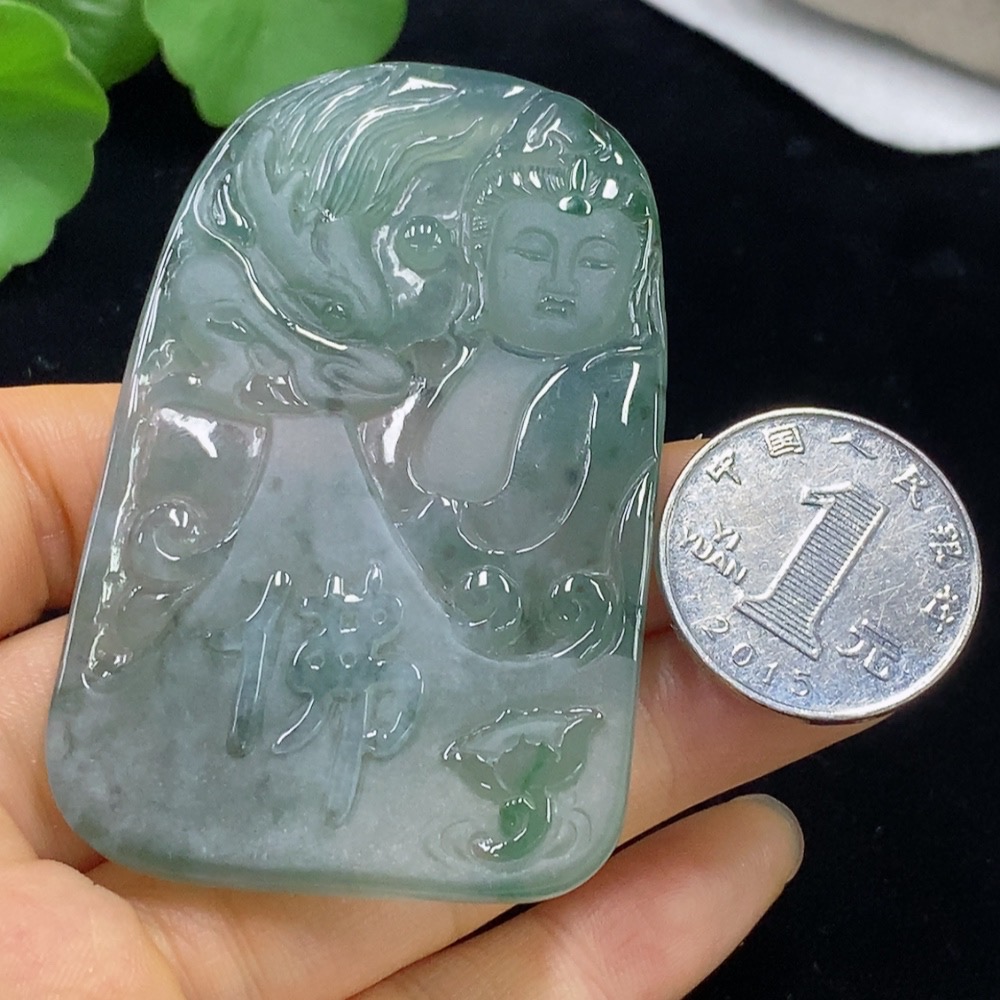 Jadeite Guanyin Pendant Total Weight Approx. 39.33g