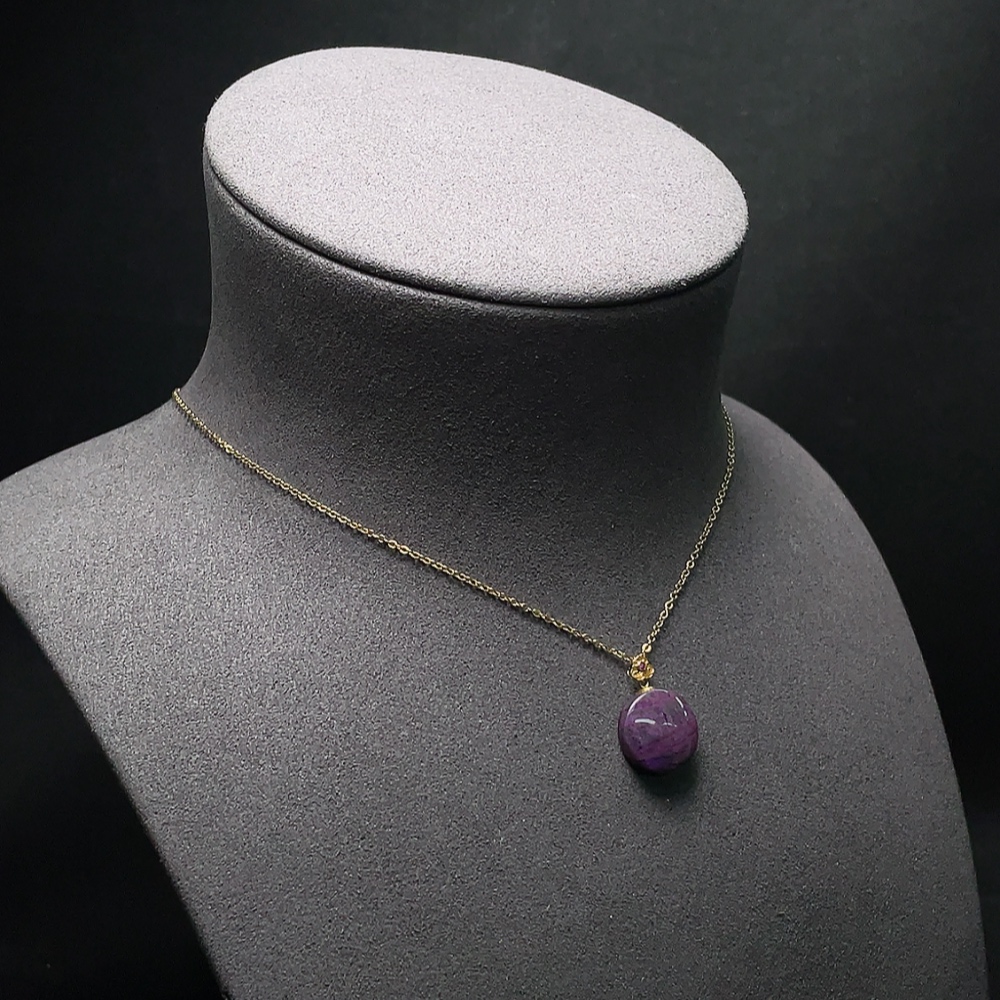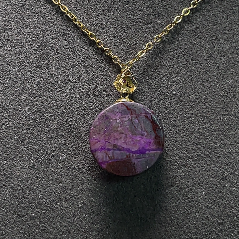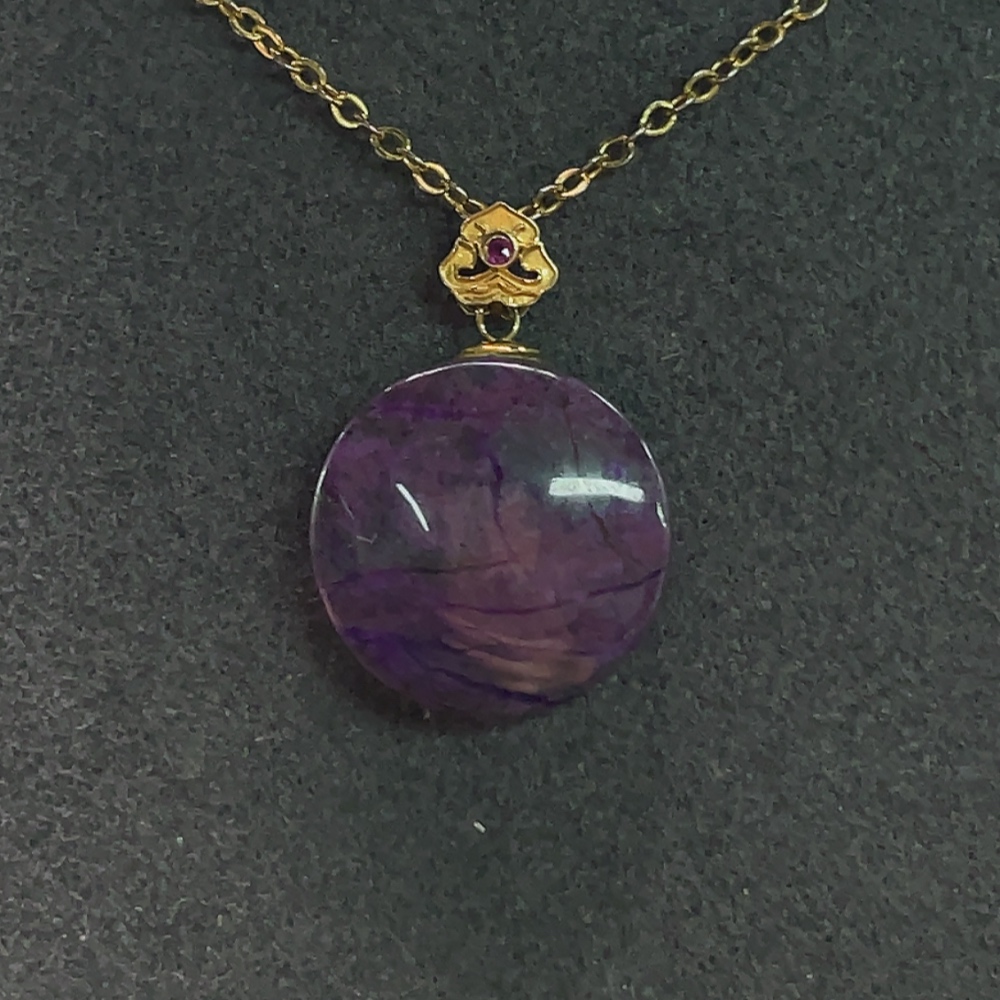 Sugilite pendant with other mineral components, purple only, non-gold, total weight approx. 3.2g (mineral)