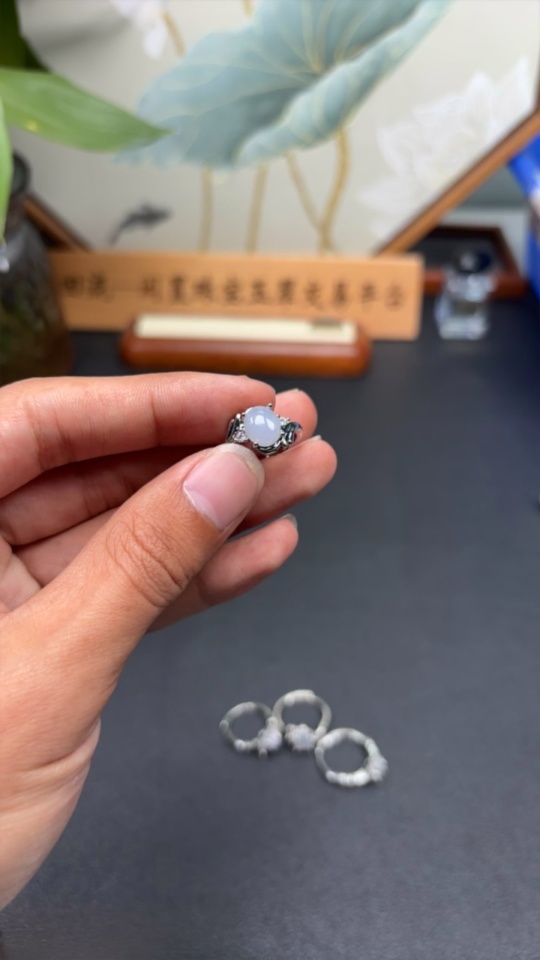 Jadeite Inlaid Ring Sell as a Lot Non-Gold