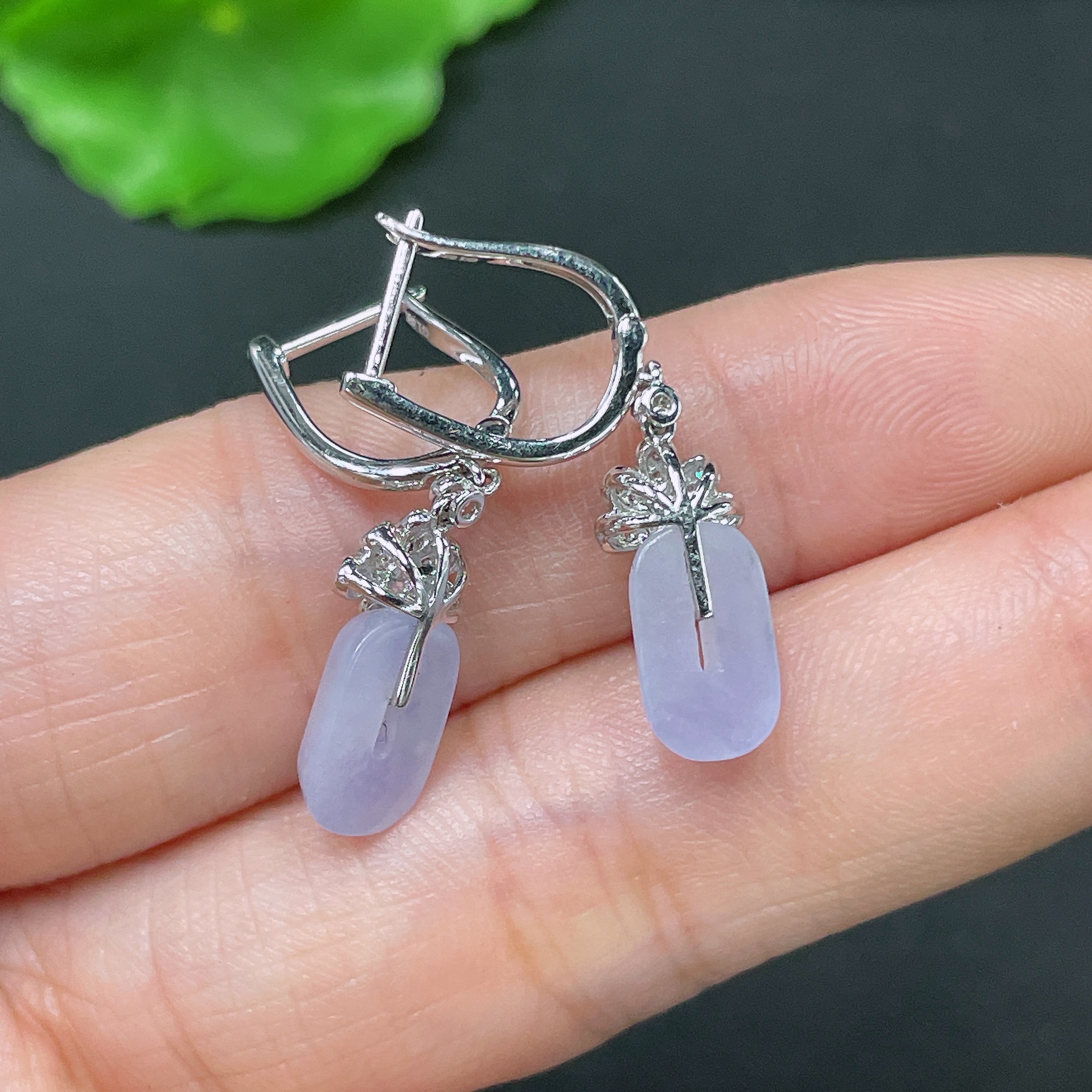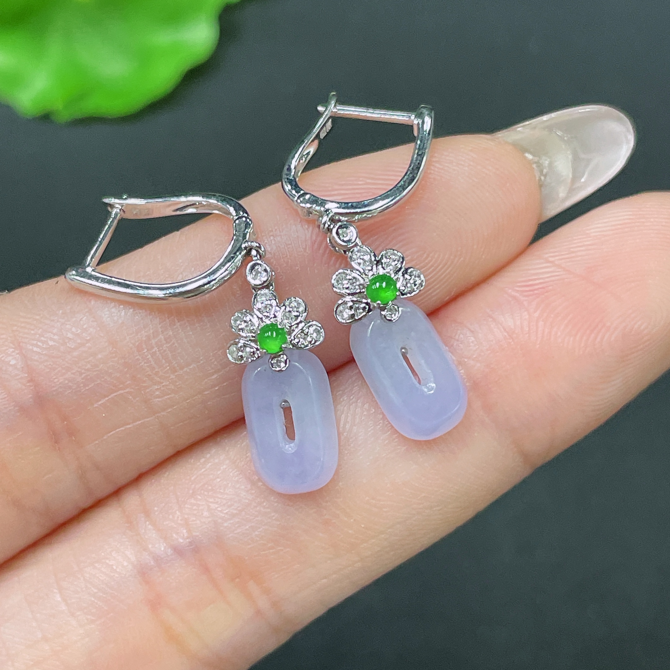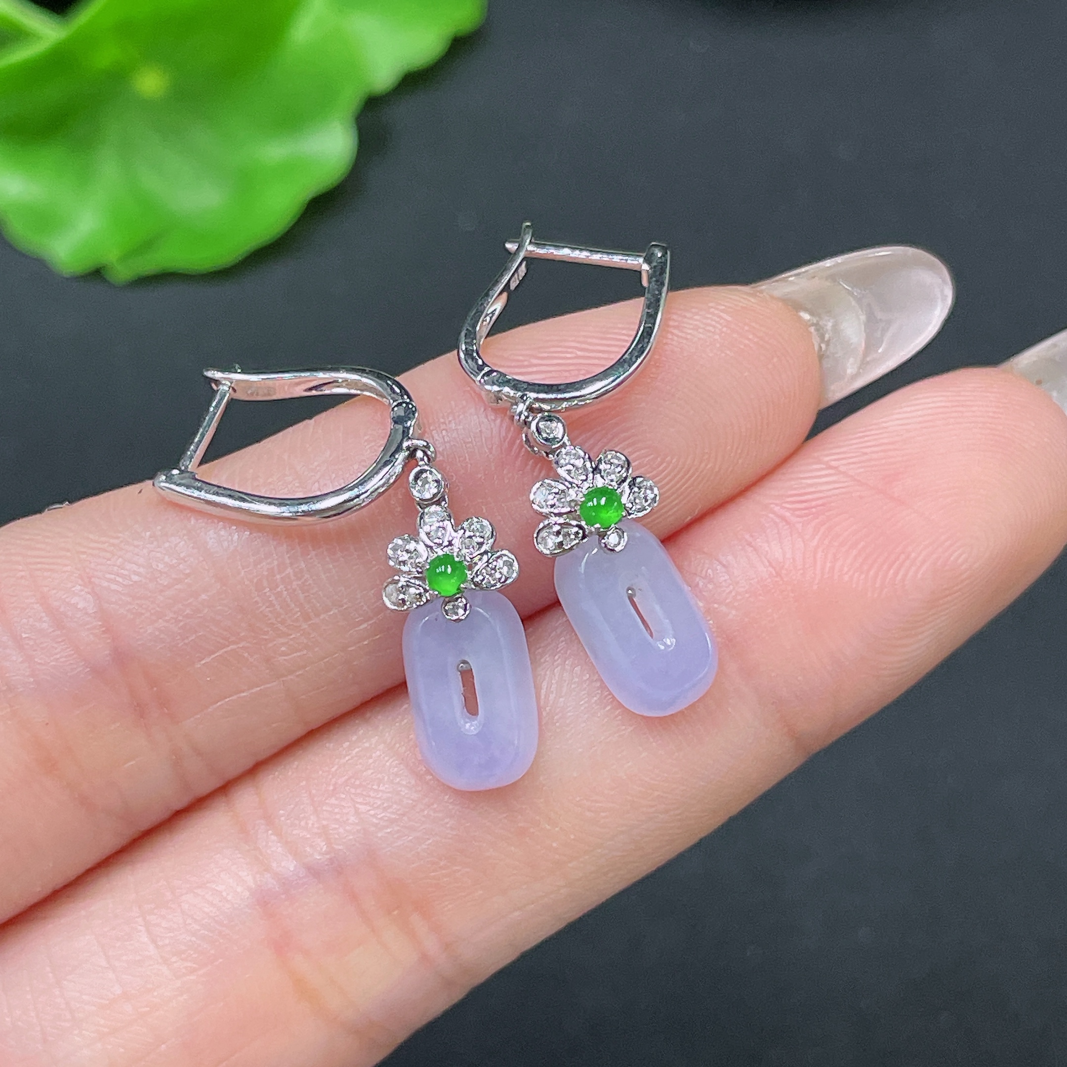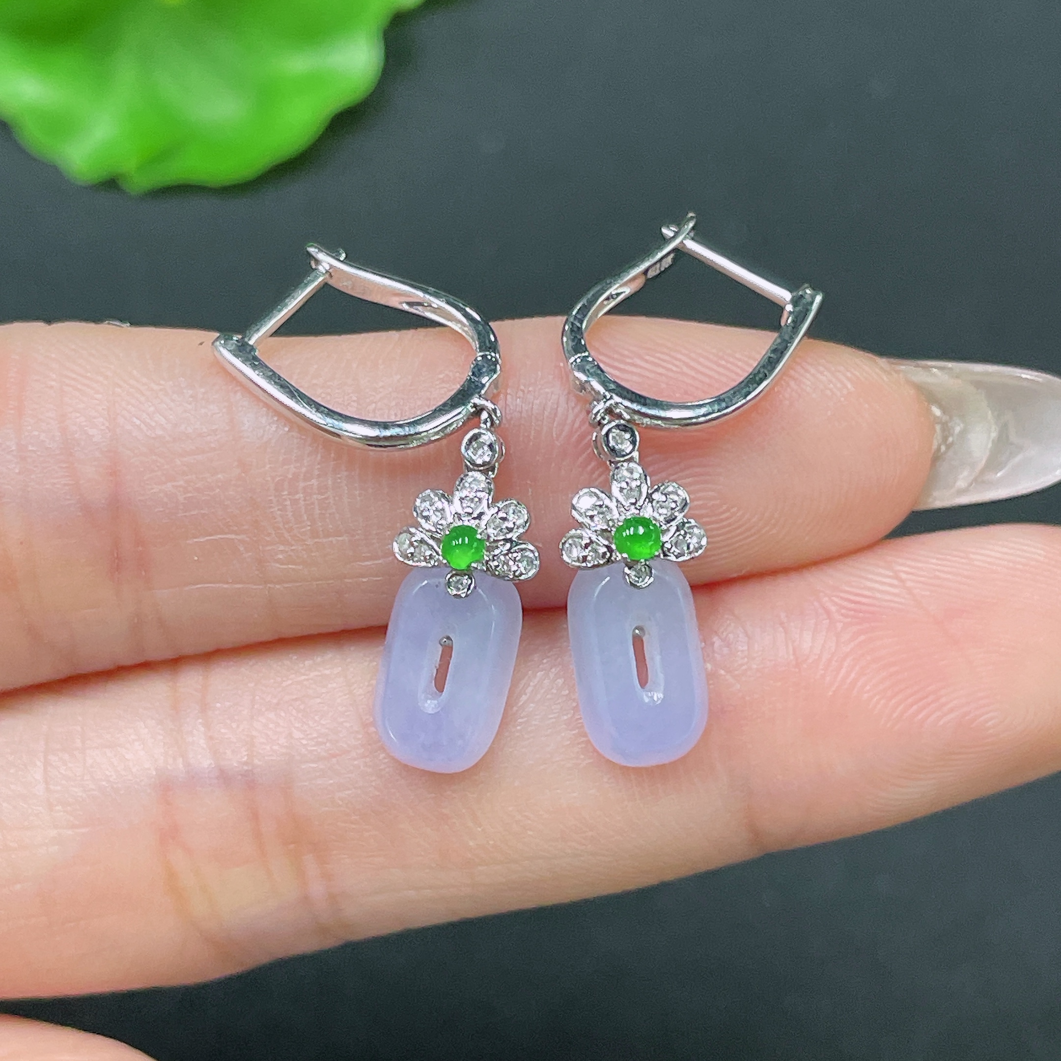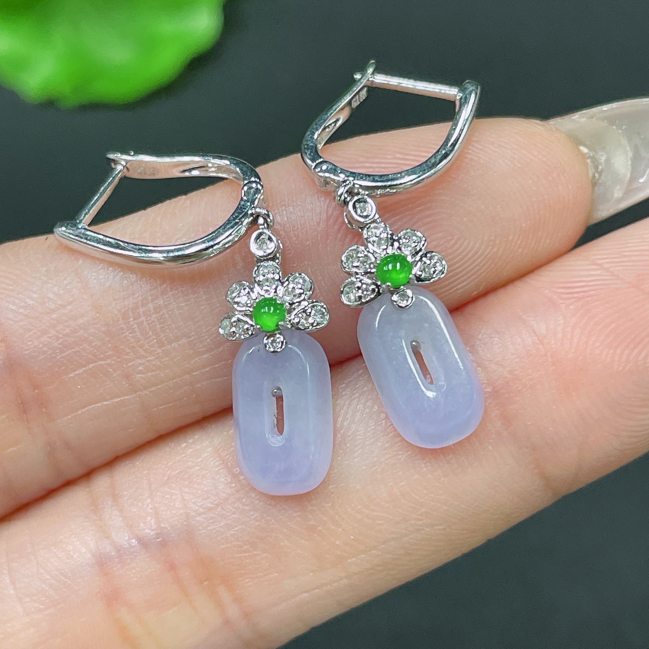 Jadeite Earrings No Hallmark Tested 18K Gold Total Weight Approx. 2.88g With Diamond Accents