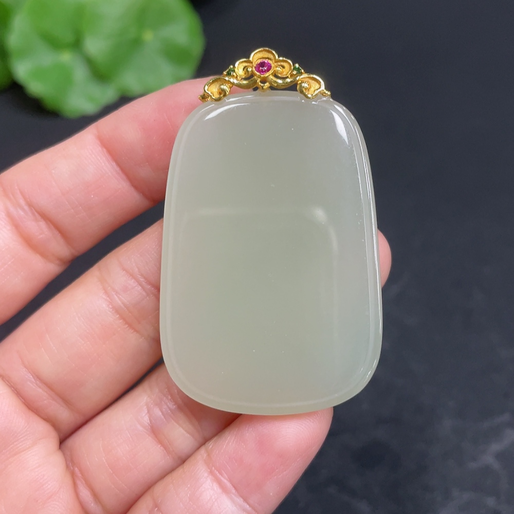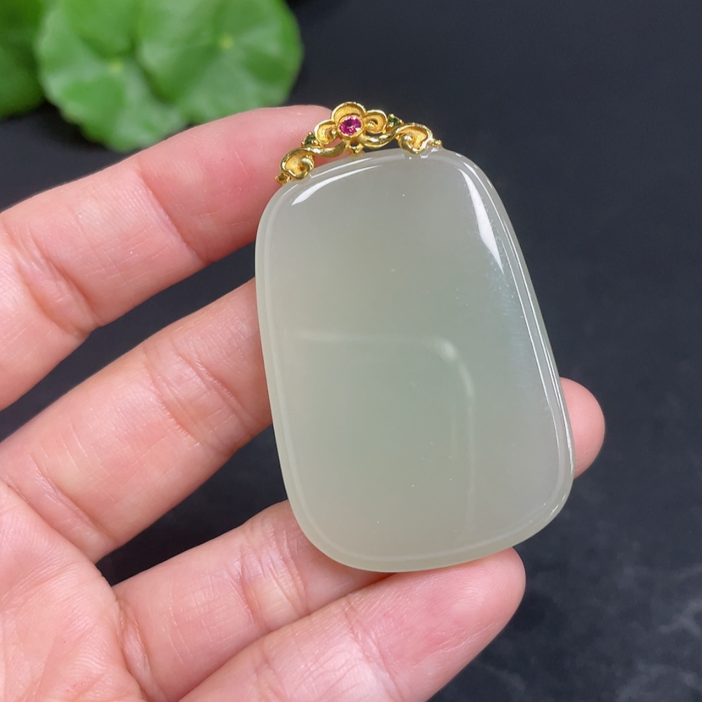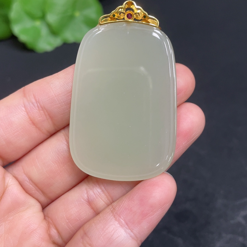 Hetian Jade Pendant, Plain Pendant with 18k Gold Clasp, Total Weight Approx. 16.6g