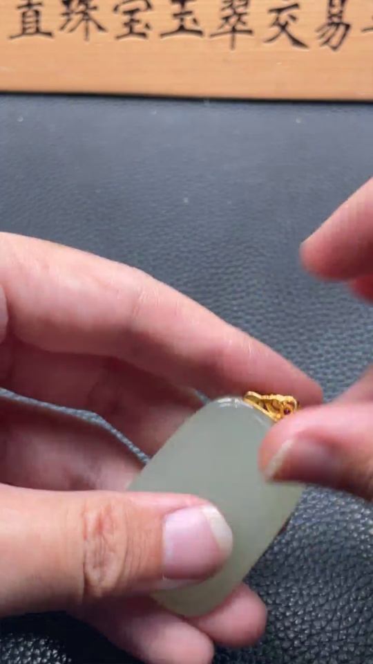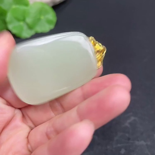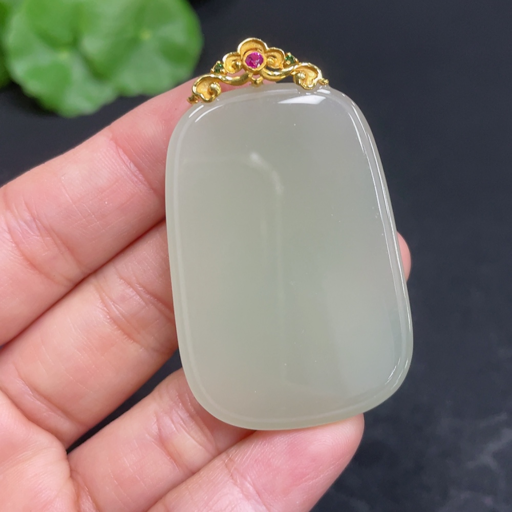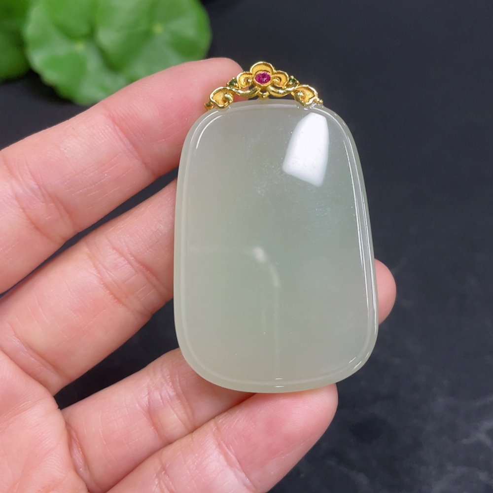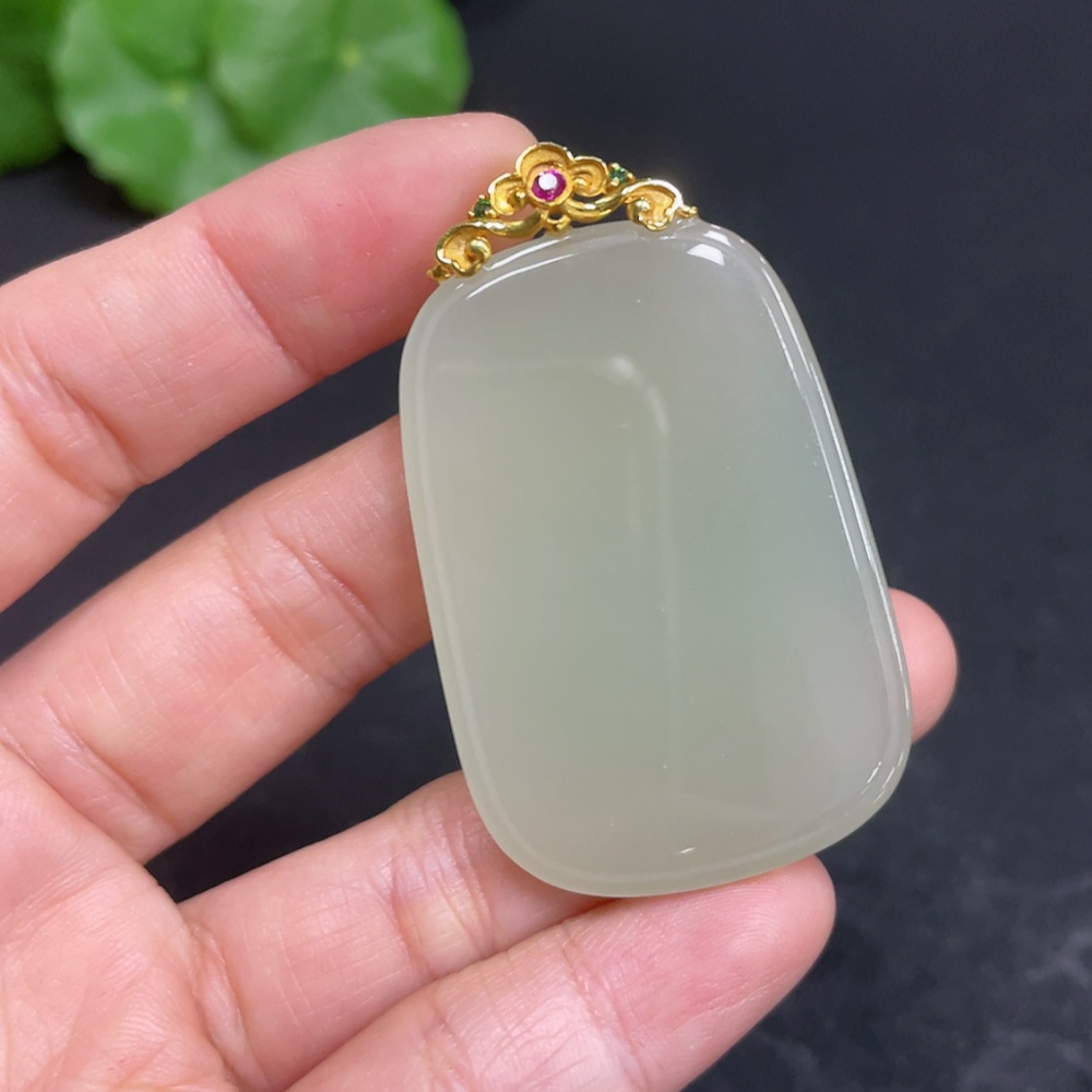 Hetian Jade Pendant, Plain Pendant with 18k Gold Clasp, Total Weight Approx. 16.6g
