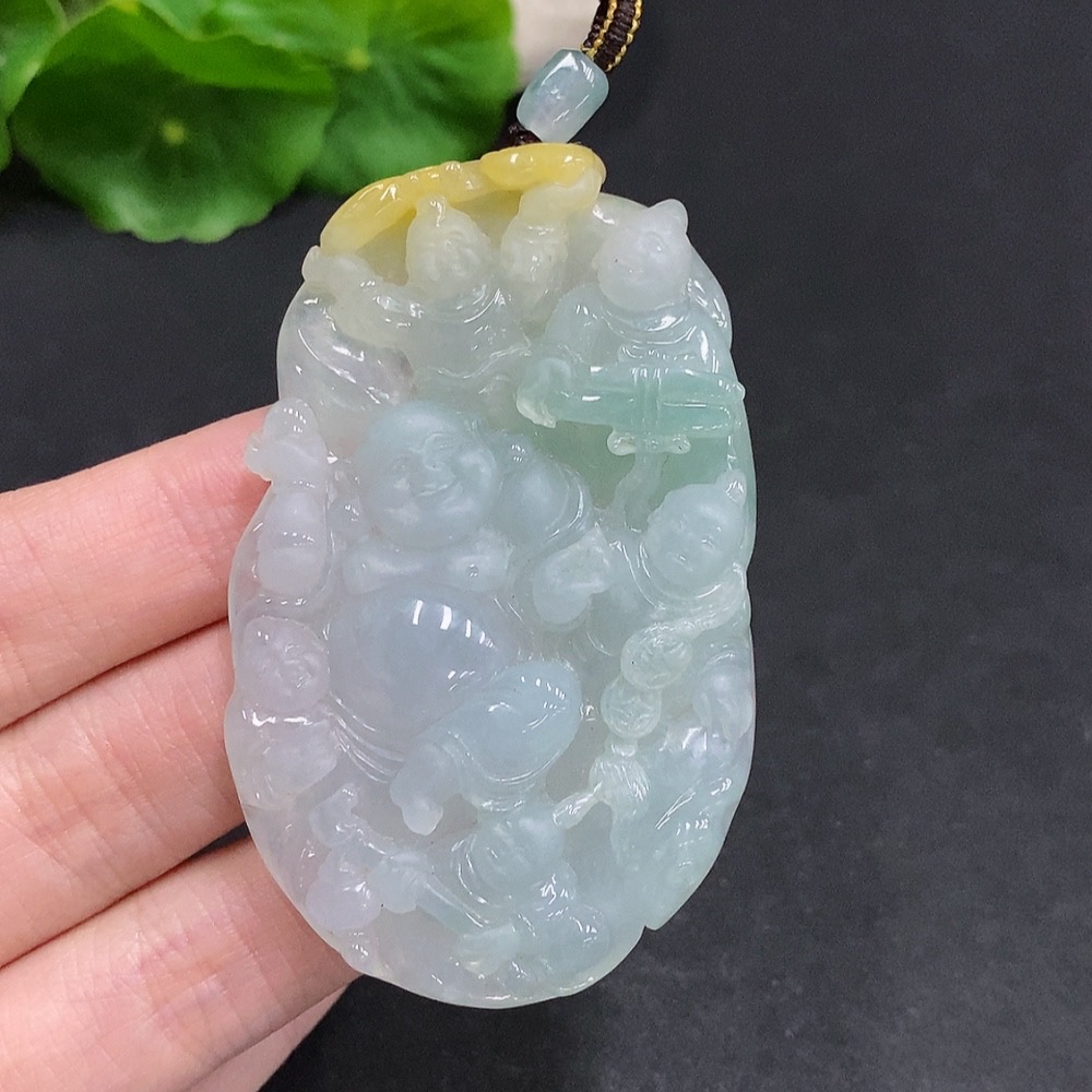 Jadeite Five Sons Achieve Success Pendant