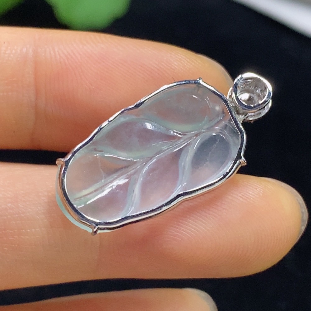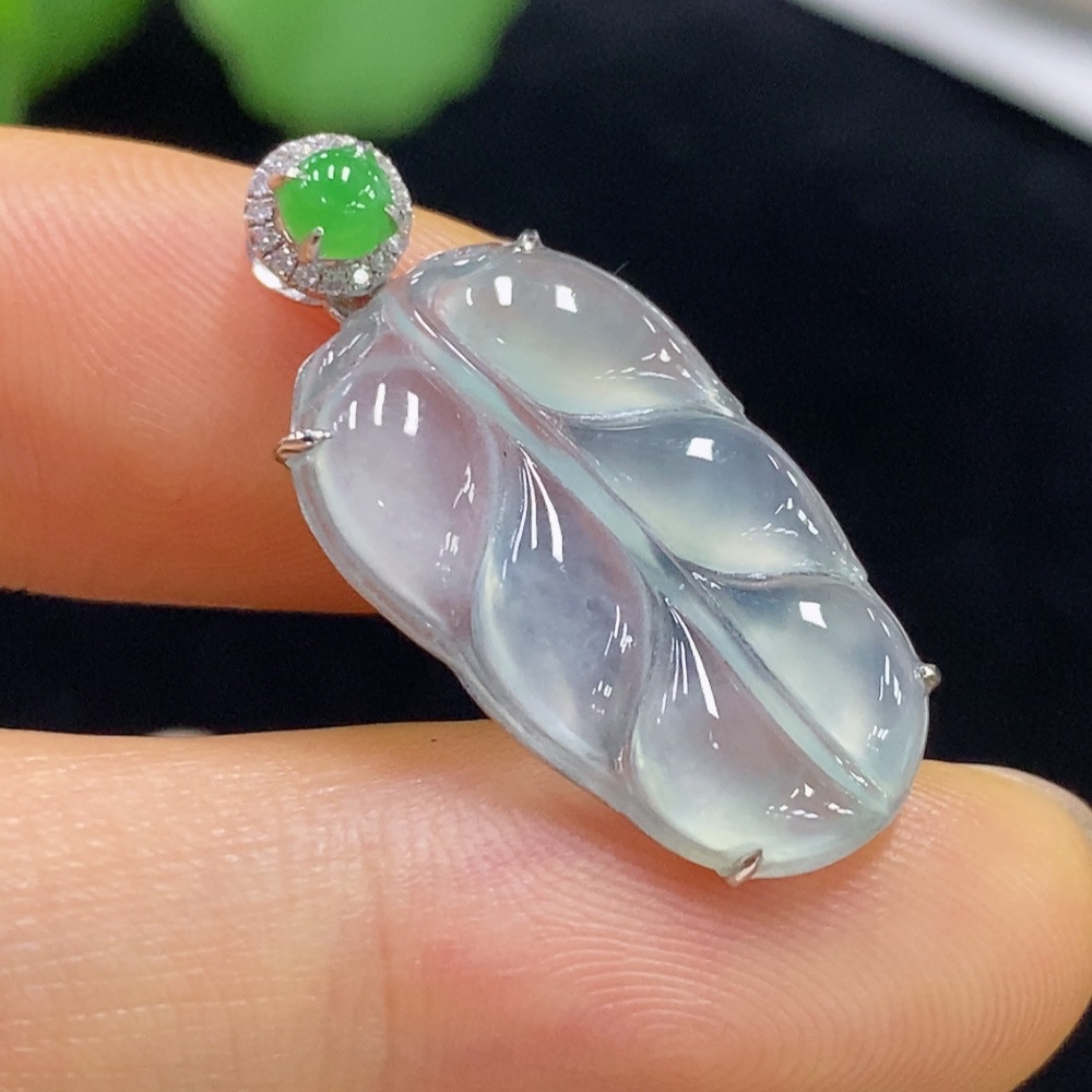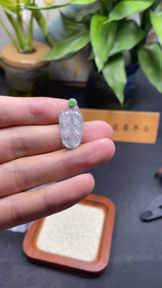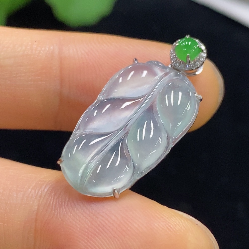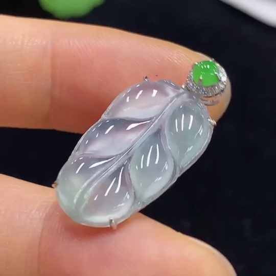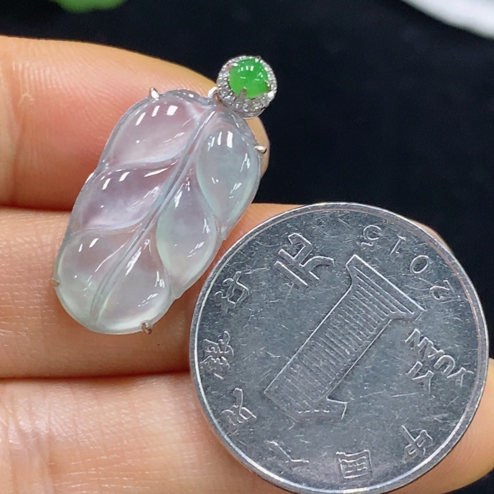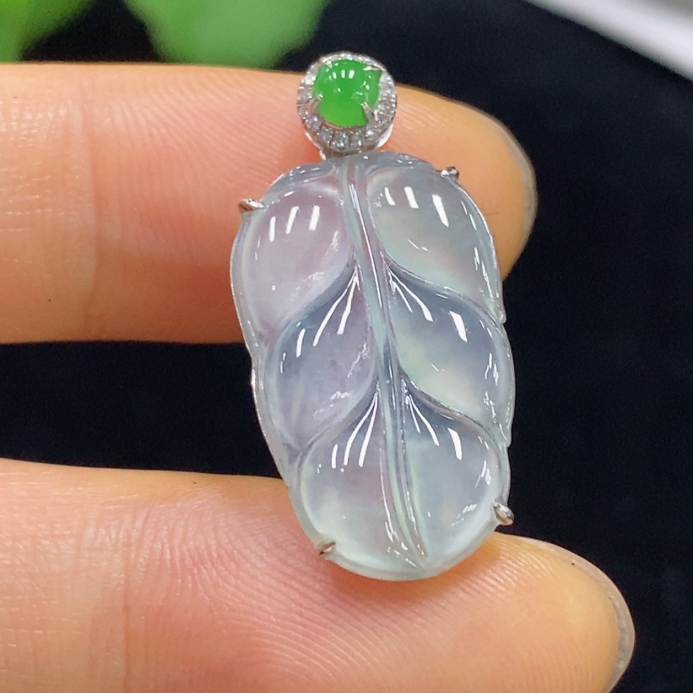 Jadeite Leaf Inlaid Pendant with 18k Gold and Diamond Accents, Total Weight Approximately 2.1g