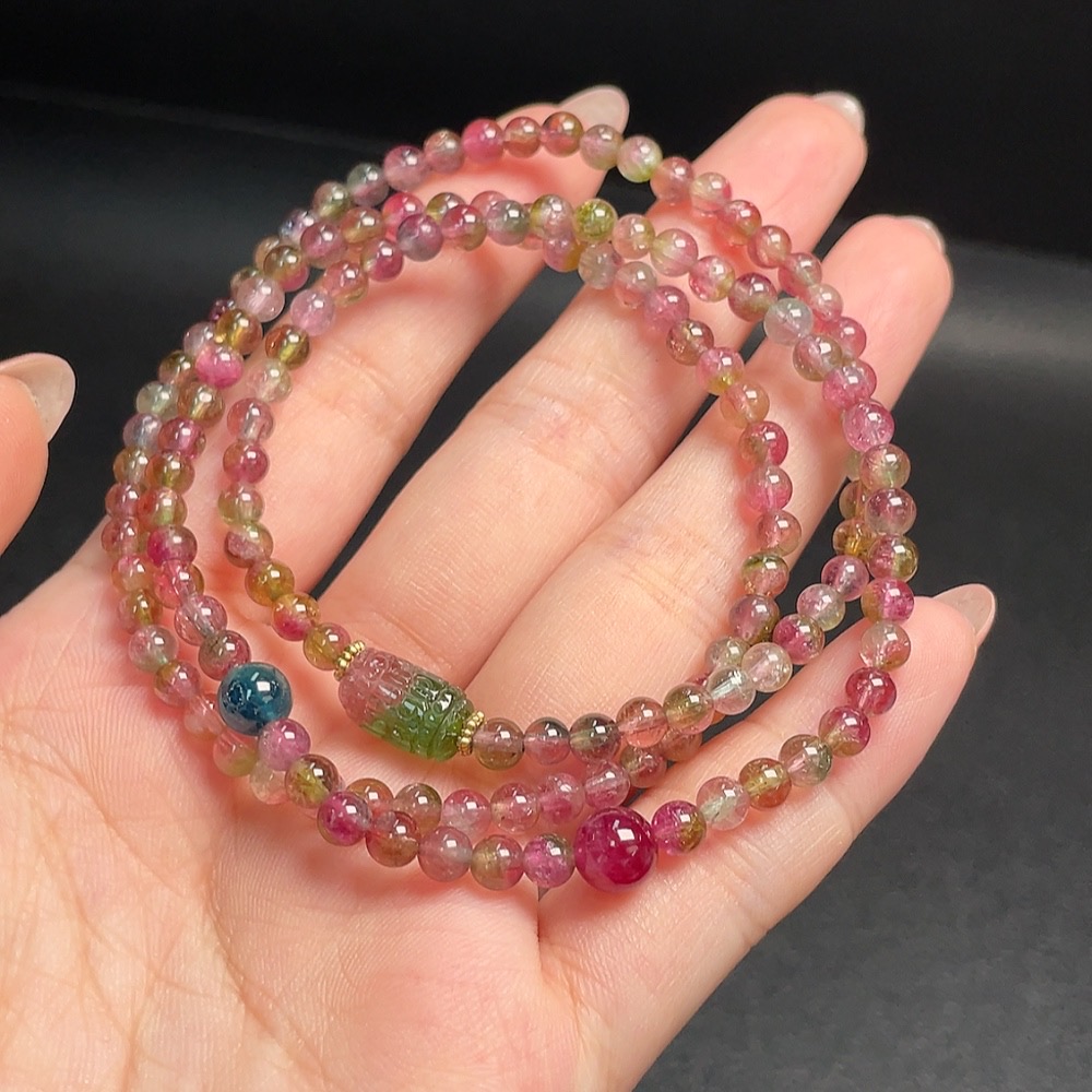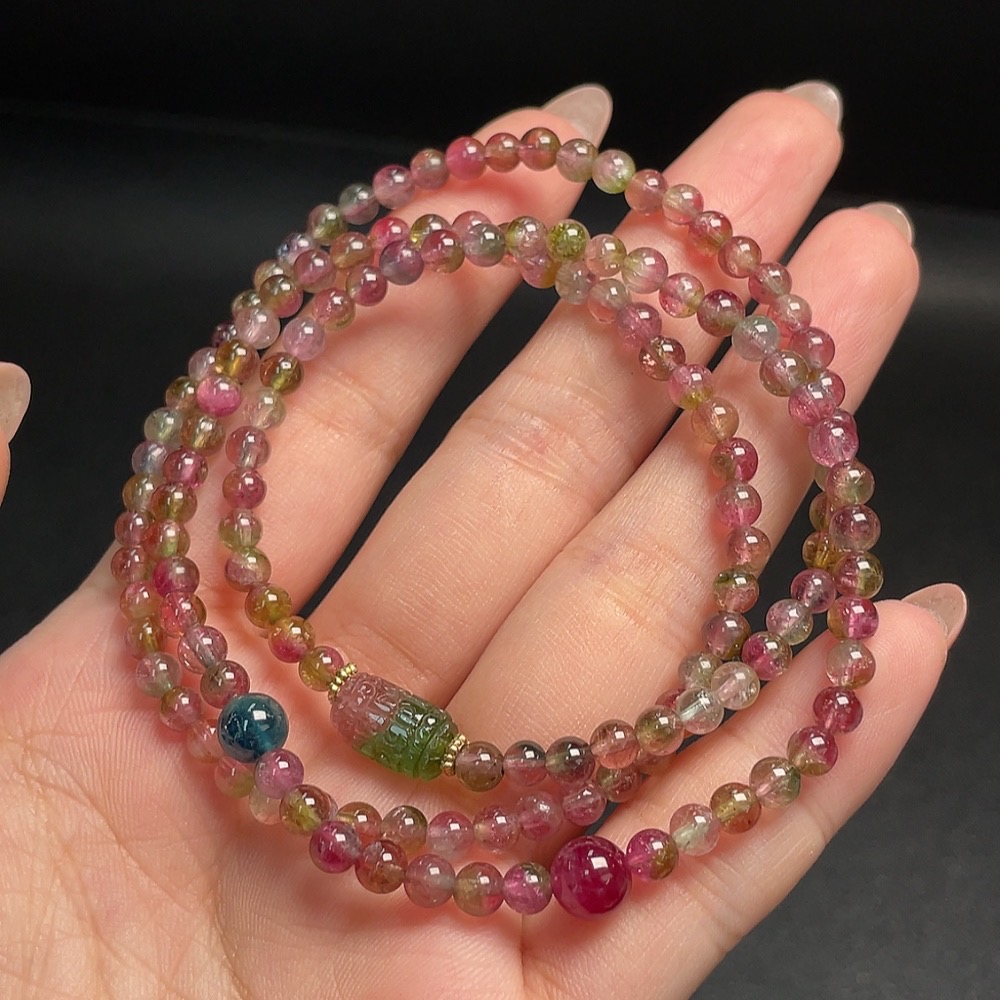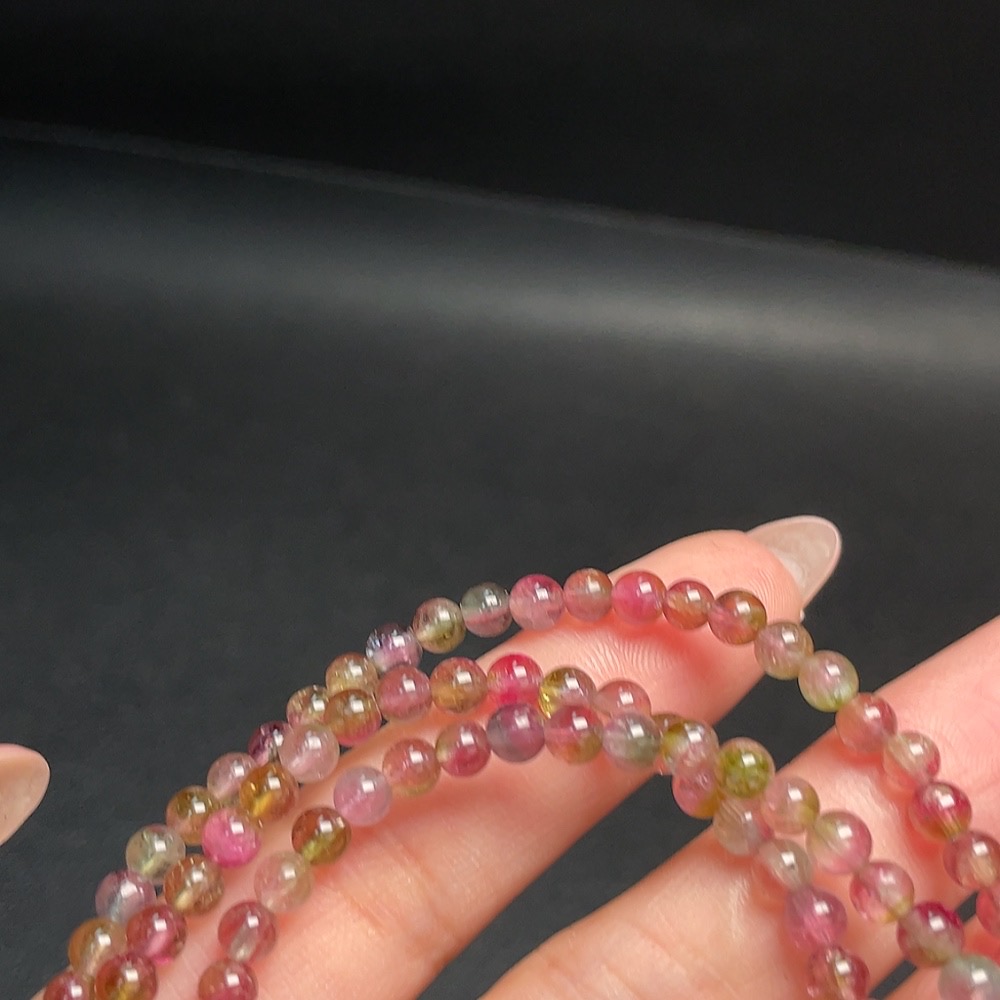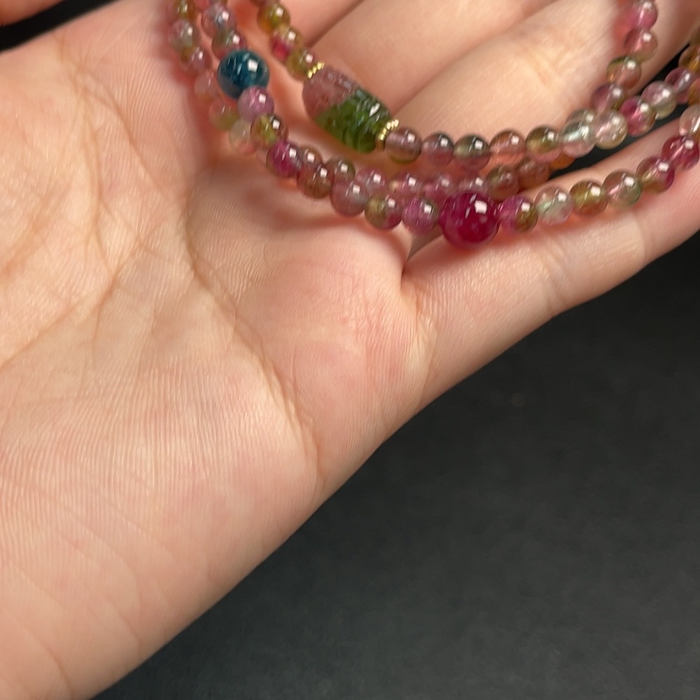Tourmaline bead necklace, non-gold, visible organic matter, total weight approx. 17.3g, size approx. 4mm
