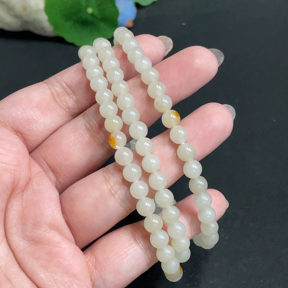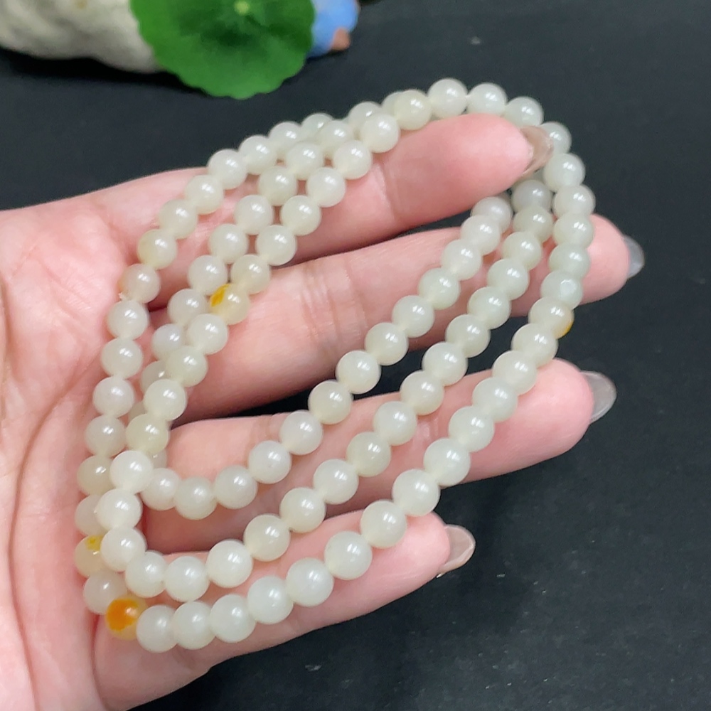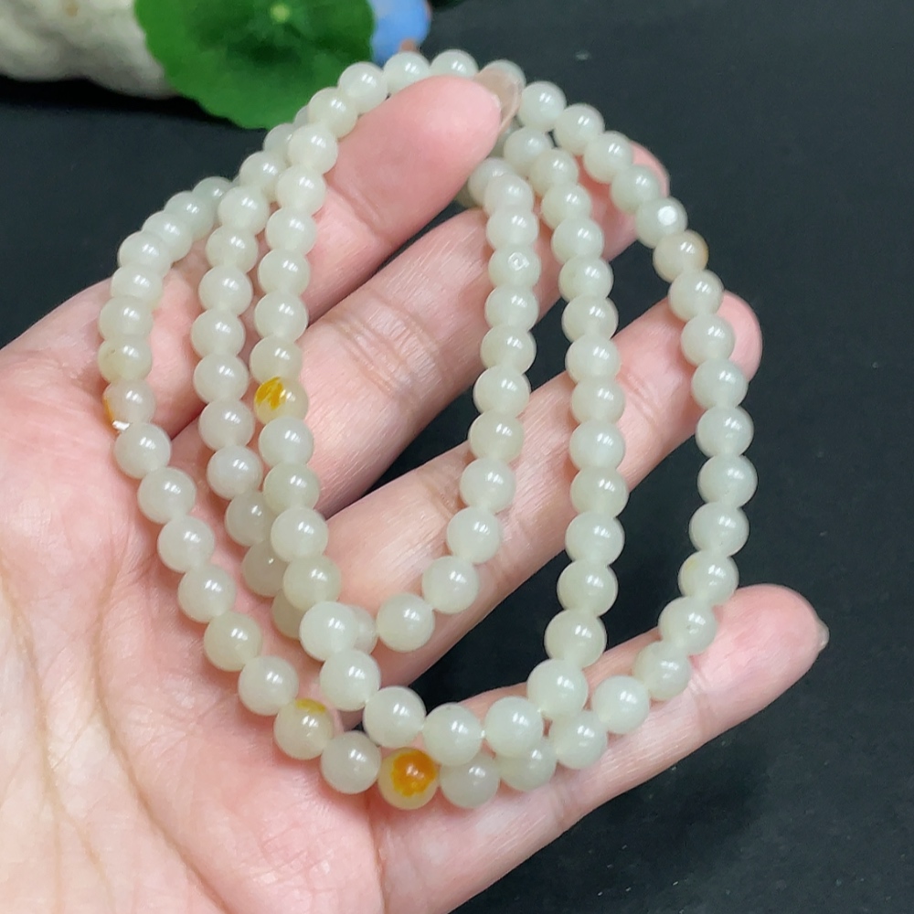 Hetian Jade Bead Necklace, approx. 6mm, total weight about 37.1g, undetermined skin color origin