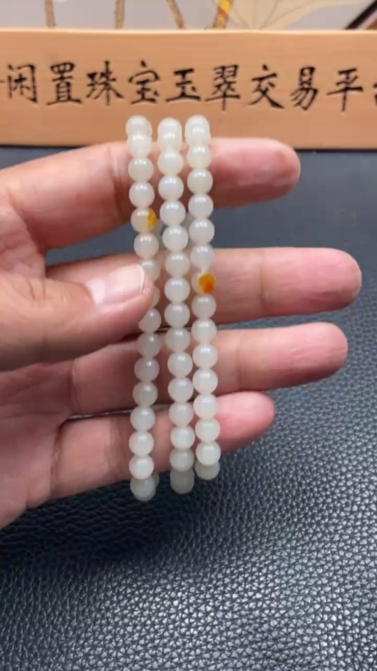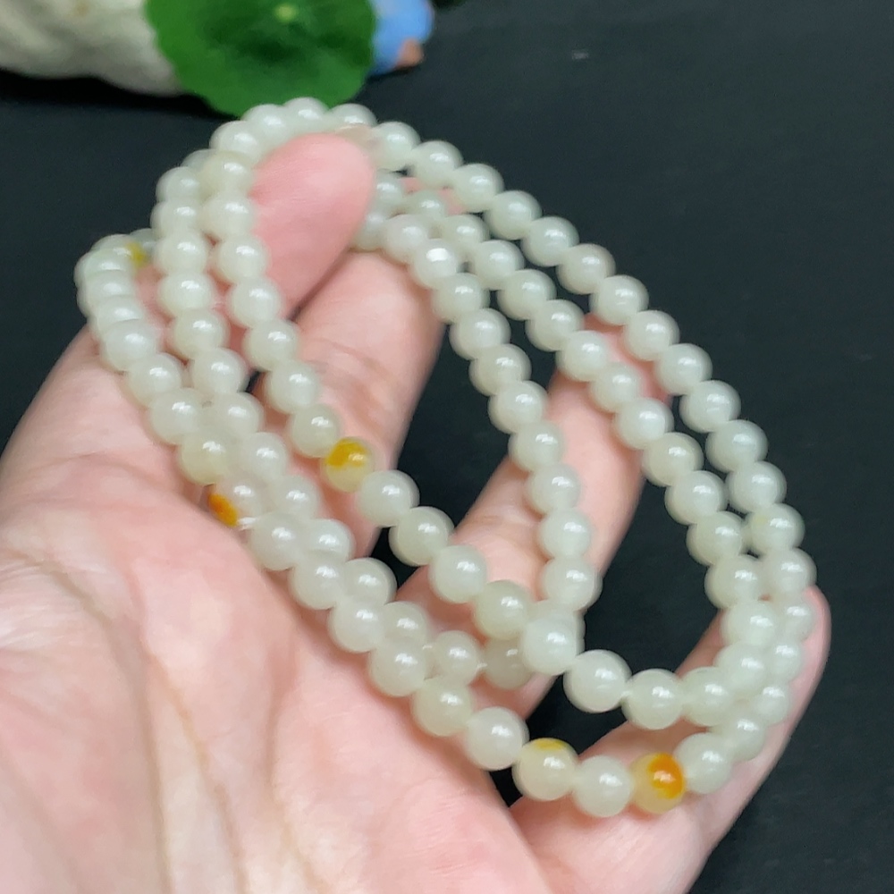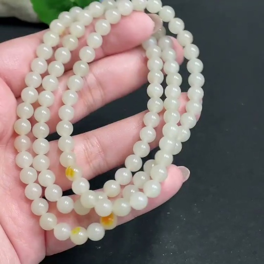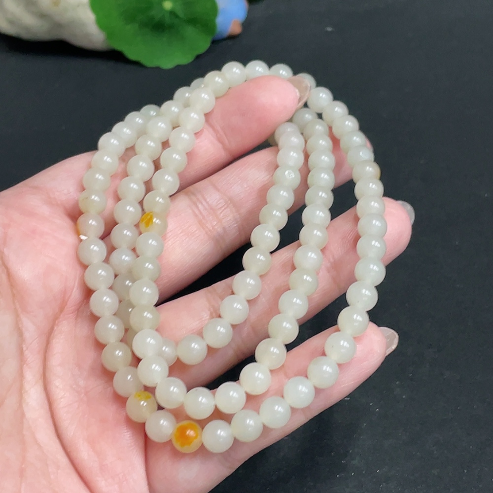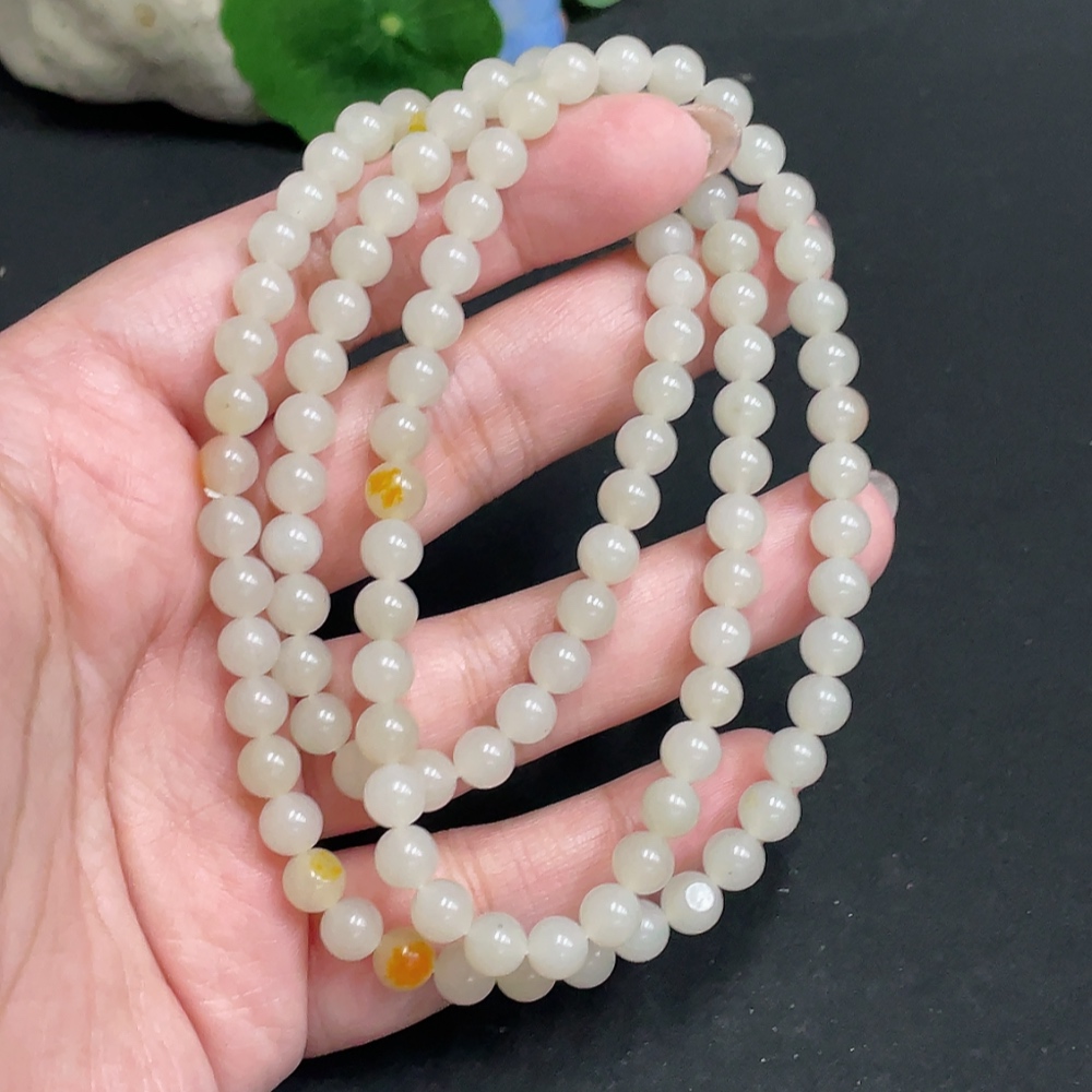Hetian Jade Bead Necklace, approx. 6mm, total weight about 37.1g, undetermined skin color origin