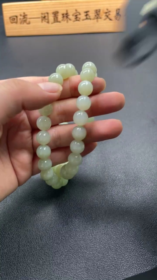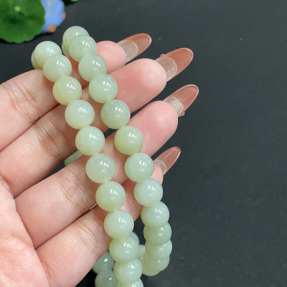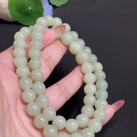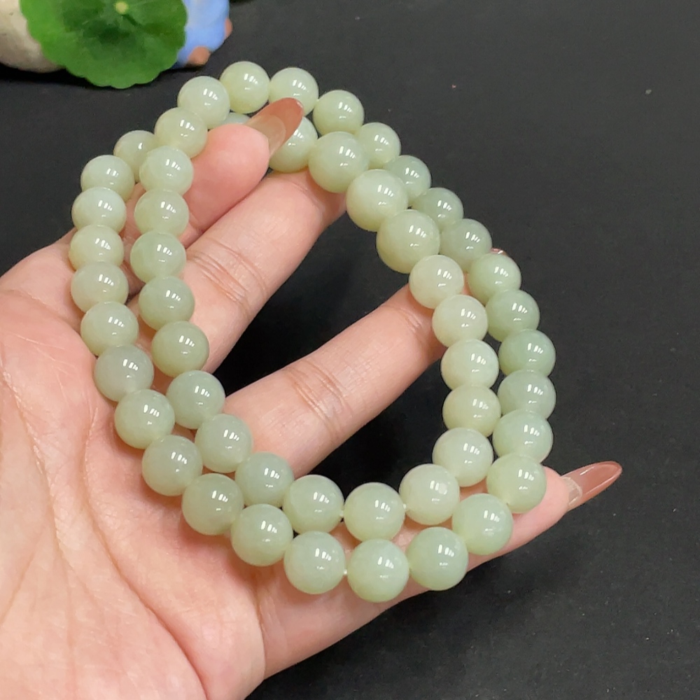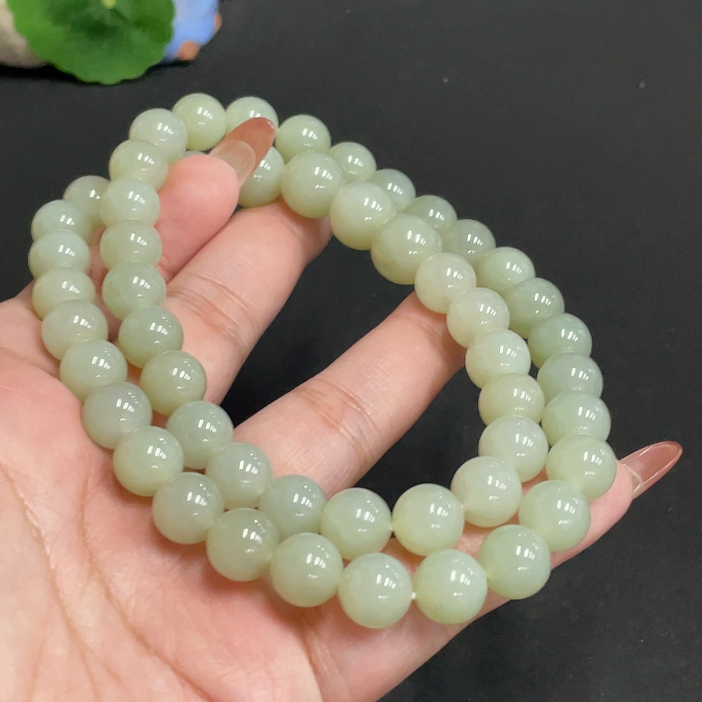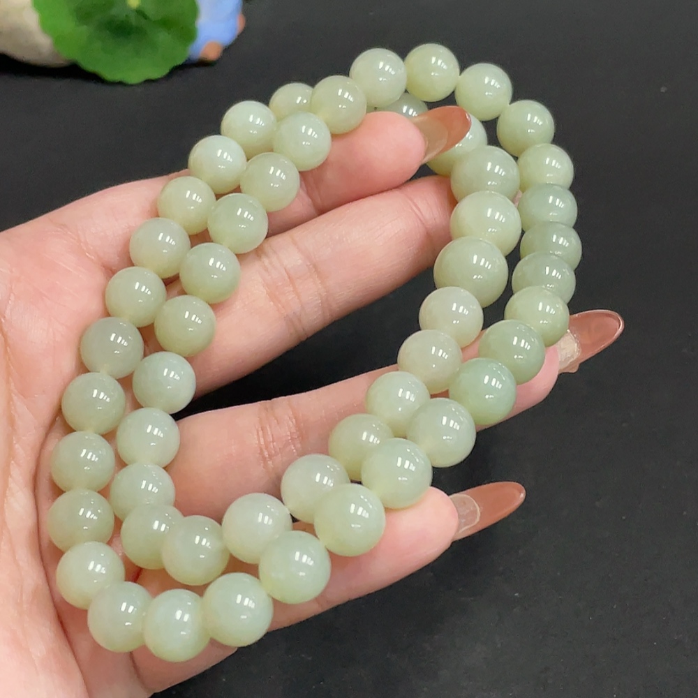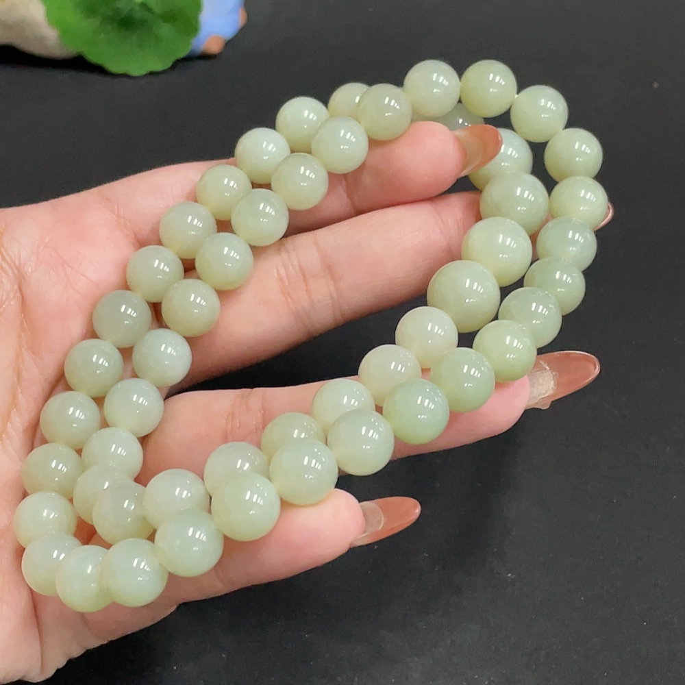 Hetian Jade Bead Necklace, Approx. 9.9 mm, Total Weight Approx. 86.8g
