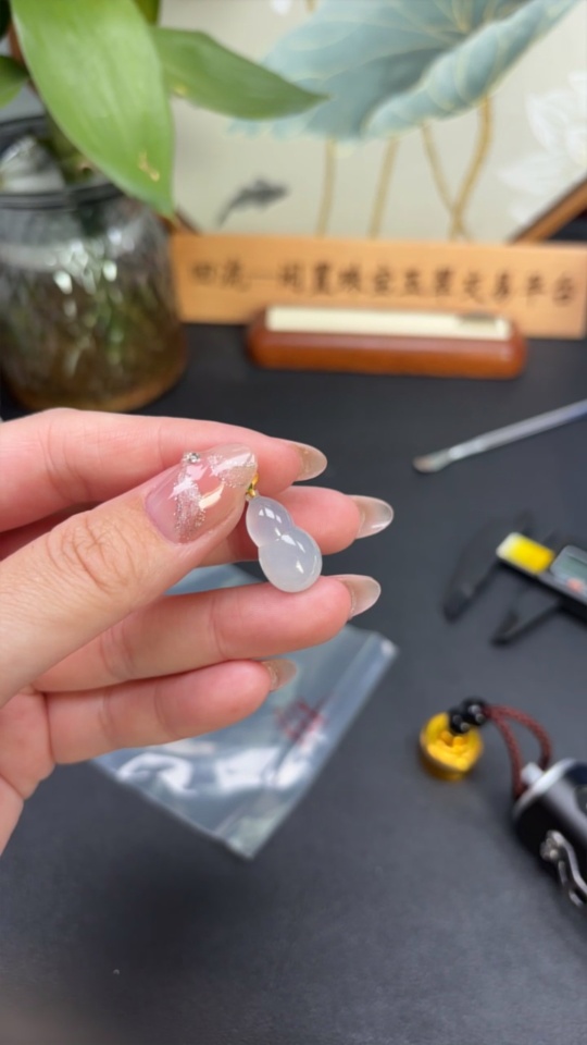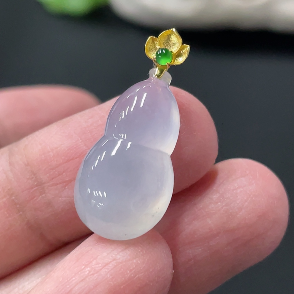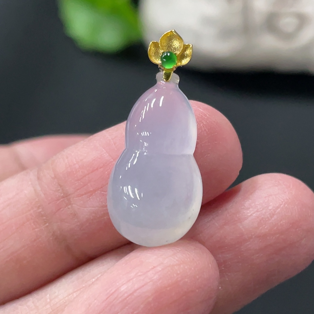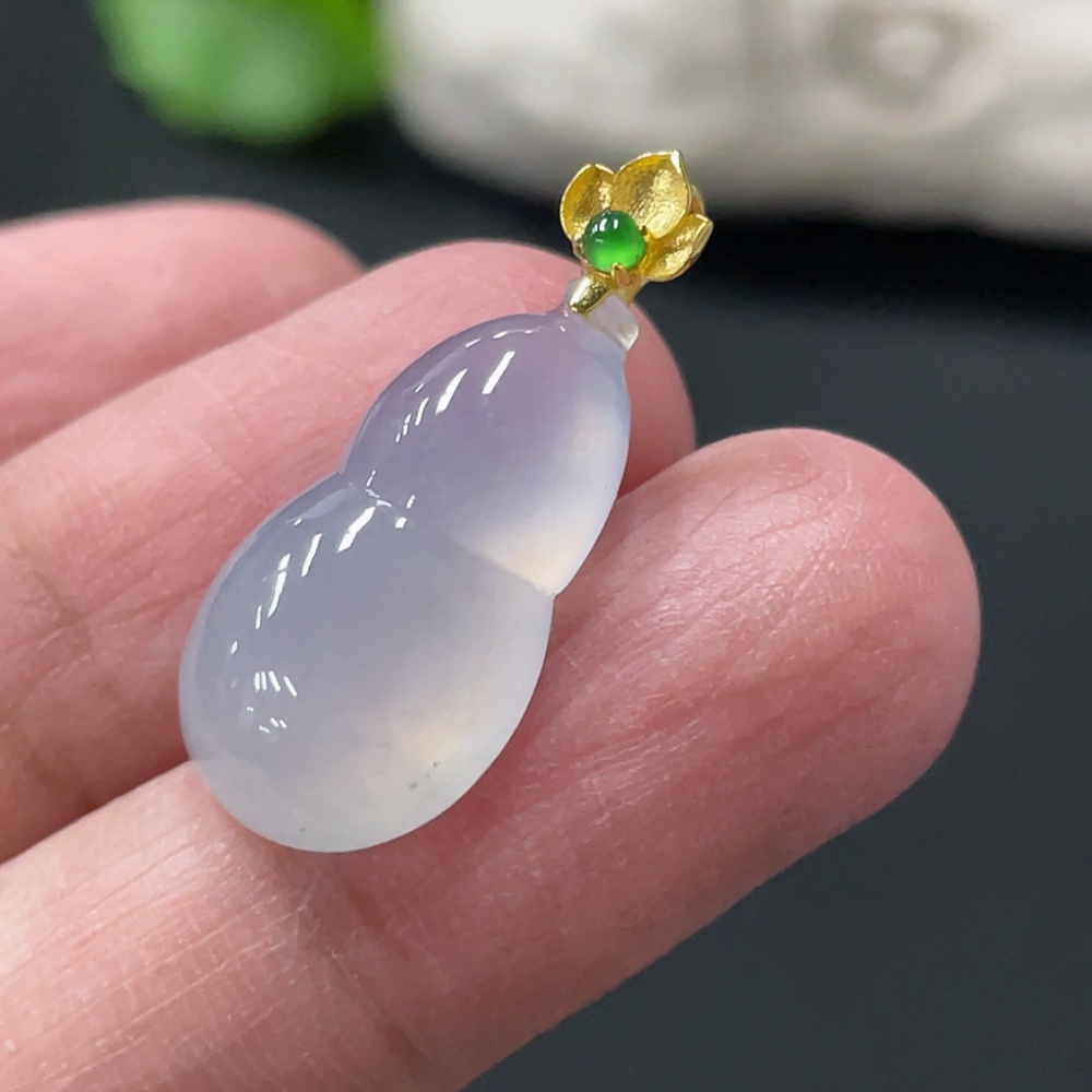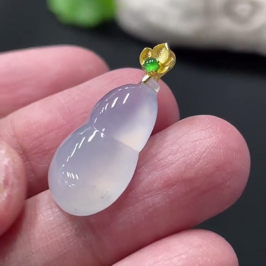 Jadeite Gourd Pendant Total Weight Approx. 2.6g 18K Gold Clasp