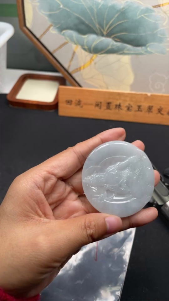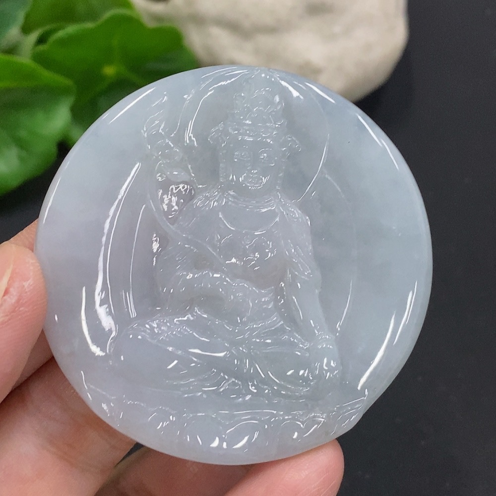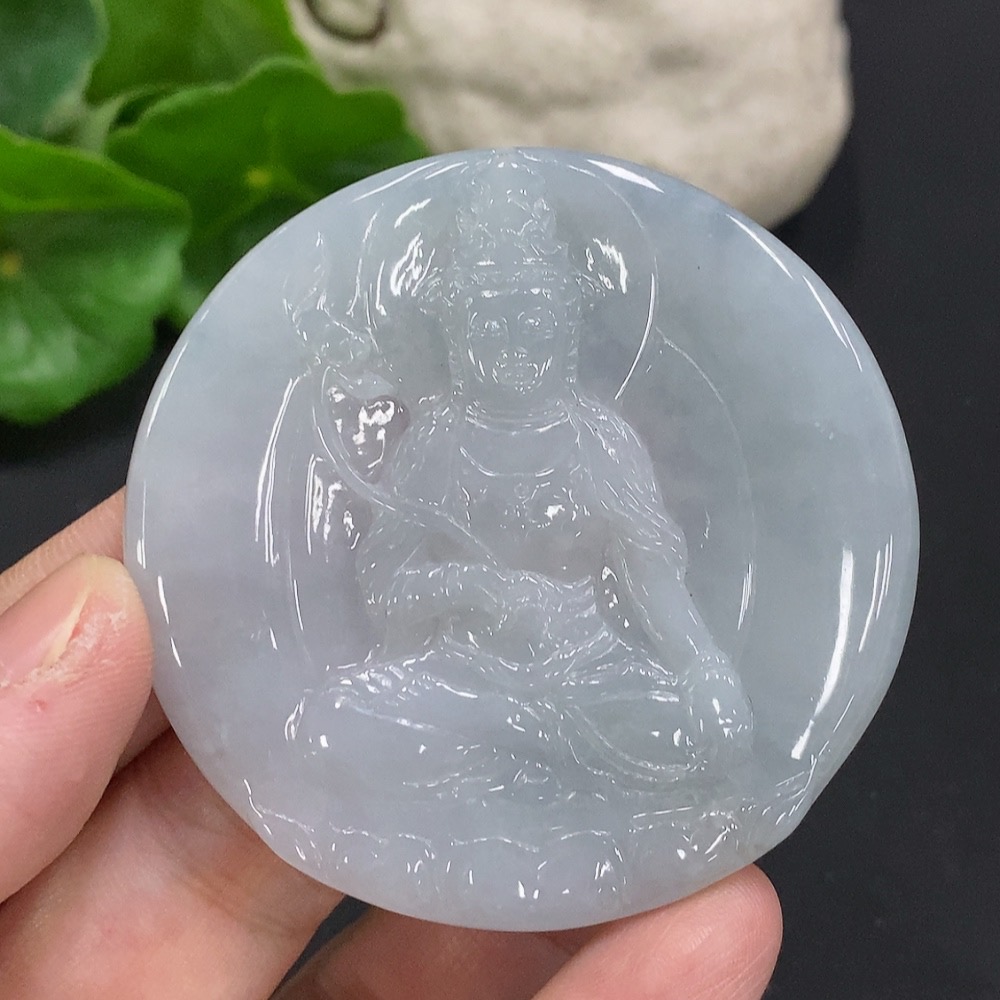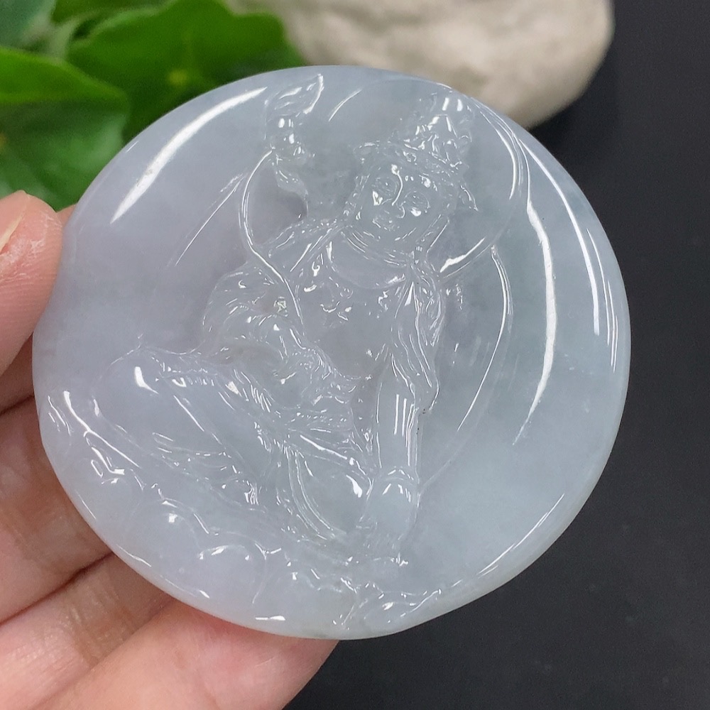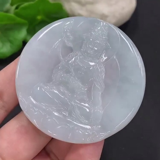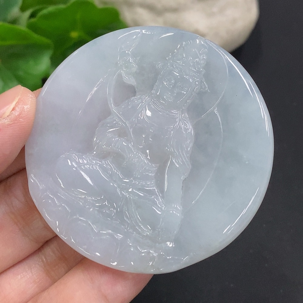 Jadeite Guanyin Pendant, Total Weight Approximately 27g