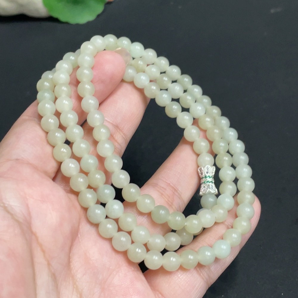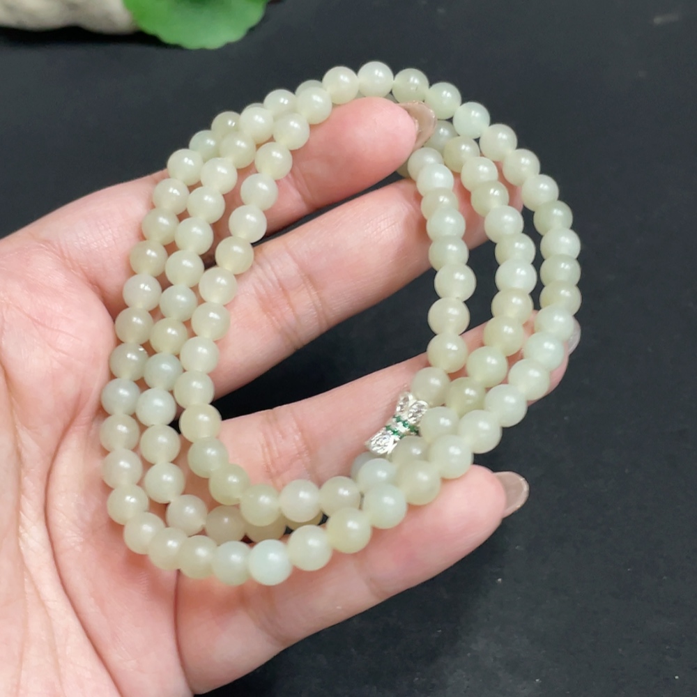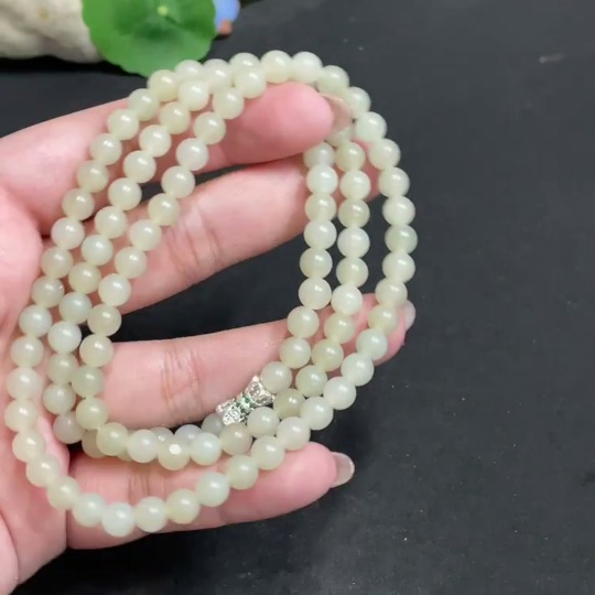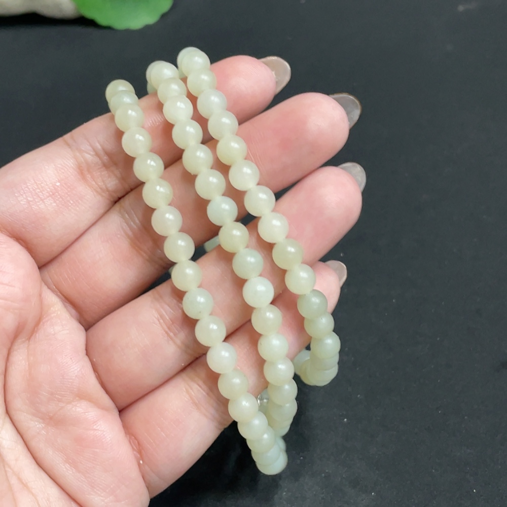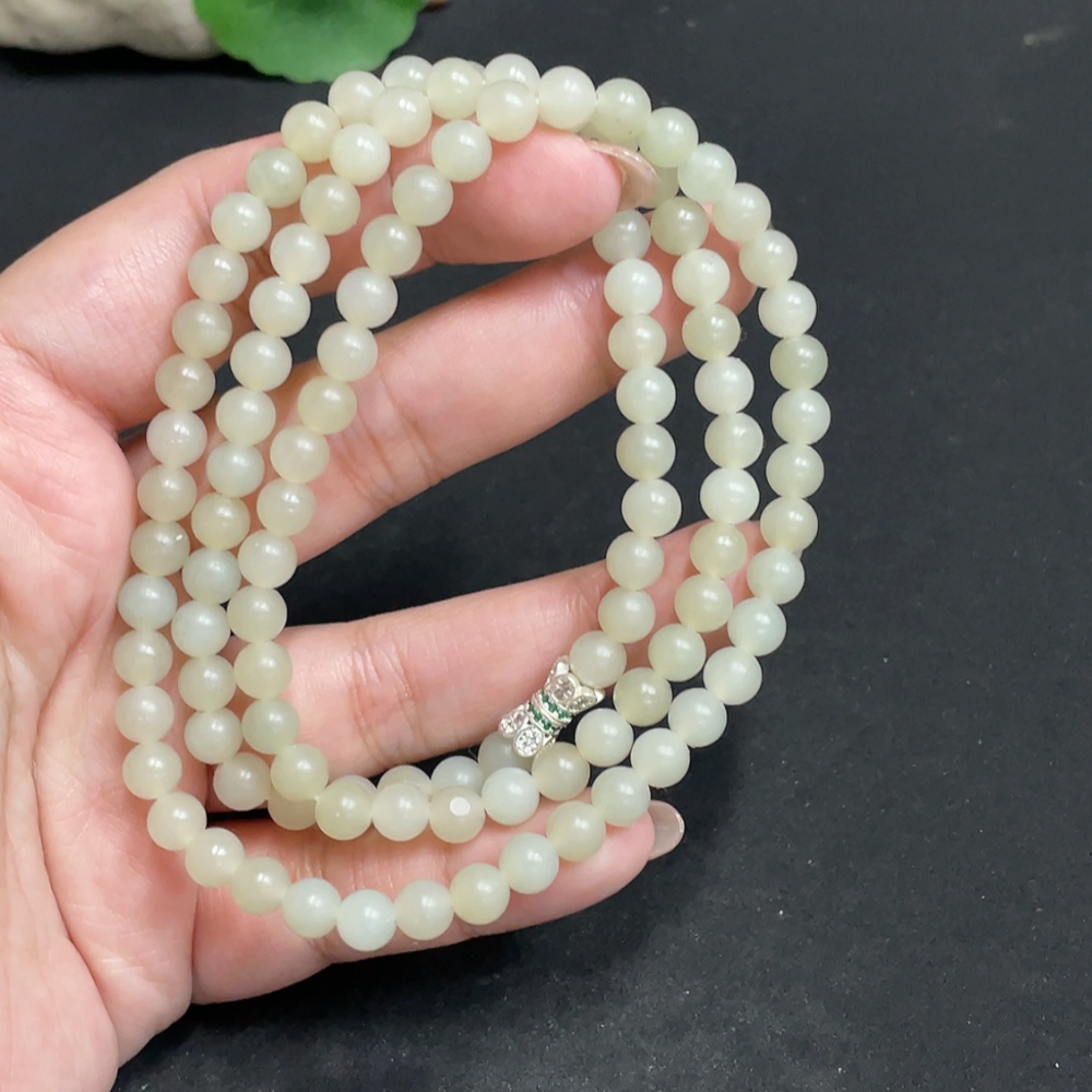 Hetian Jade Bead Necklace, approx. 6mm, total weight about 38.2g, non-gold
