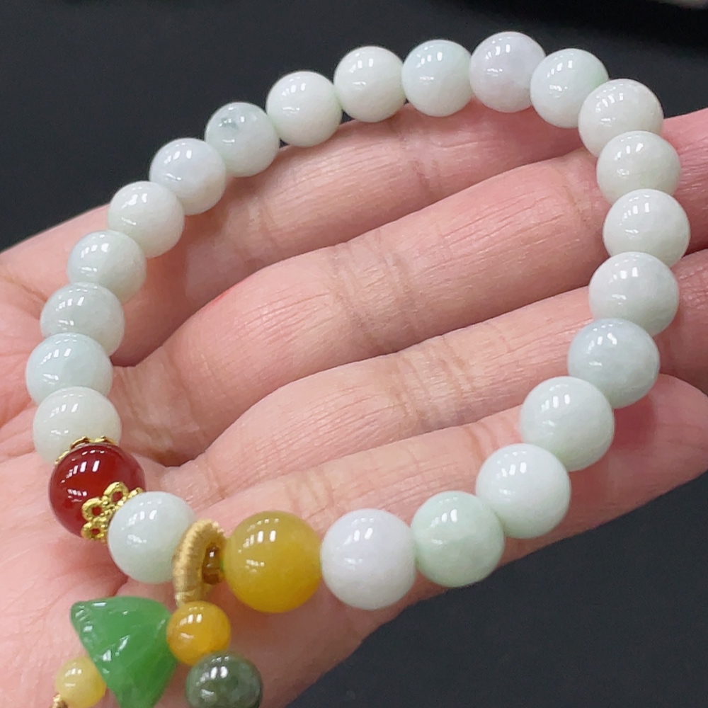 Jadeite Bracelet Approx. 7.5mm Beads Yellow Non-Grade A Total Weight Approx. 19.28g