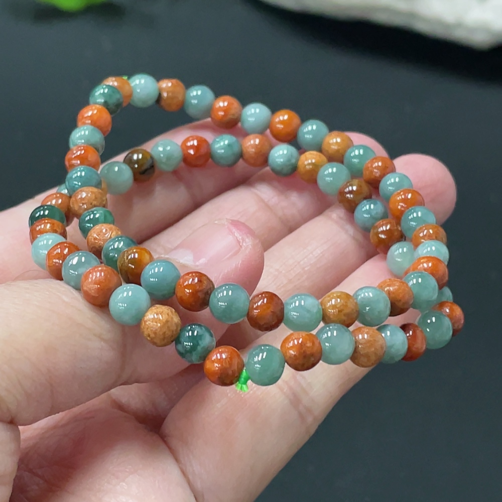 Jadeite Bracelet Approx. 5.2mm Beads Total Weight Approx. 17.7g Yellow Beads Non-A