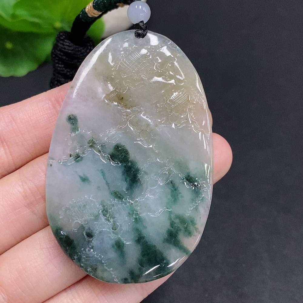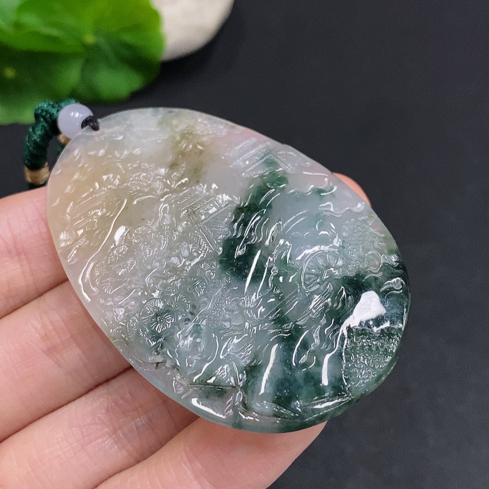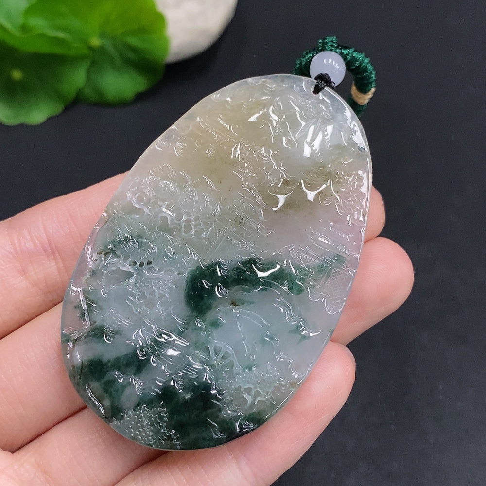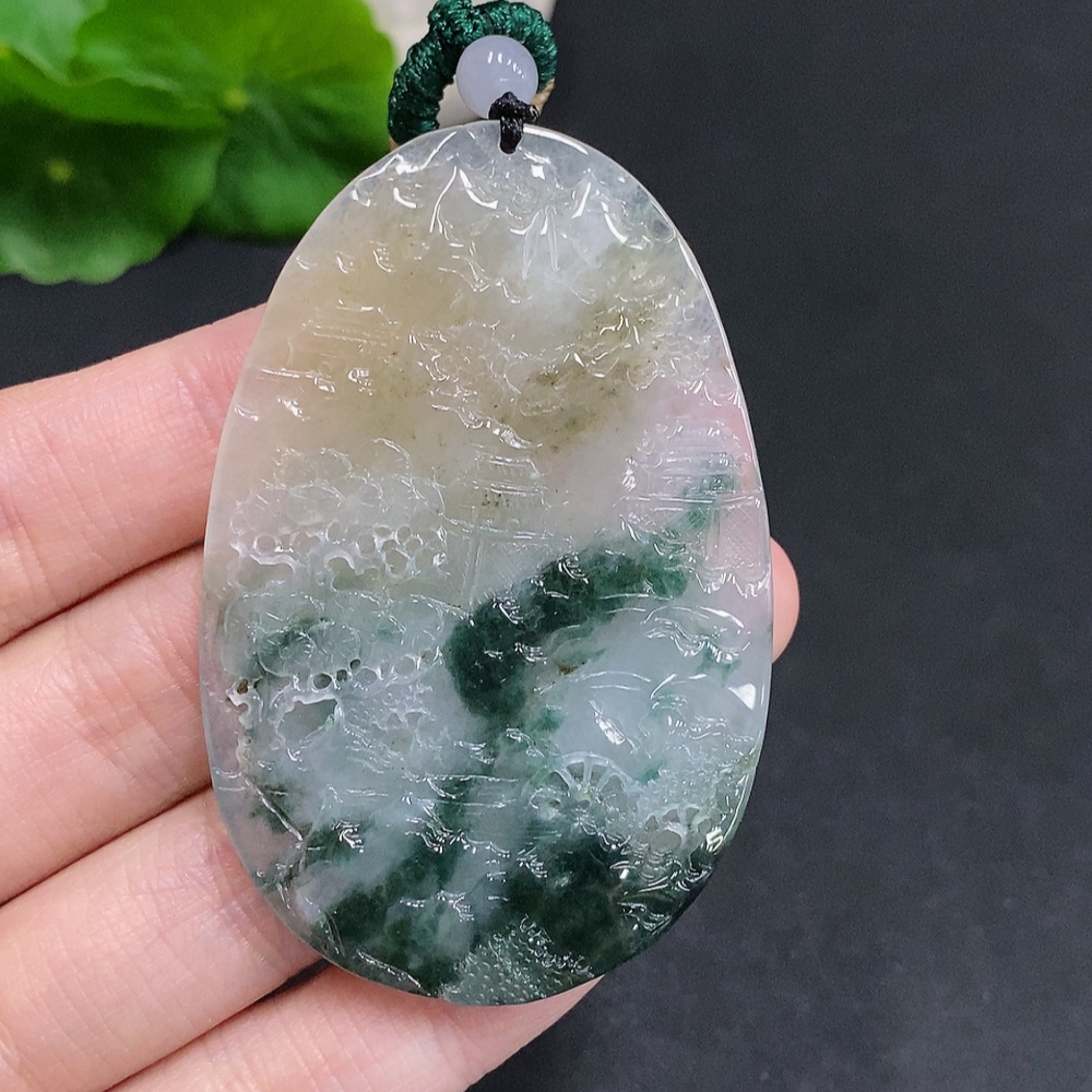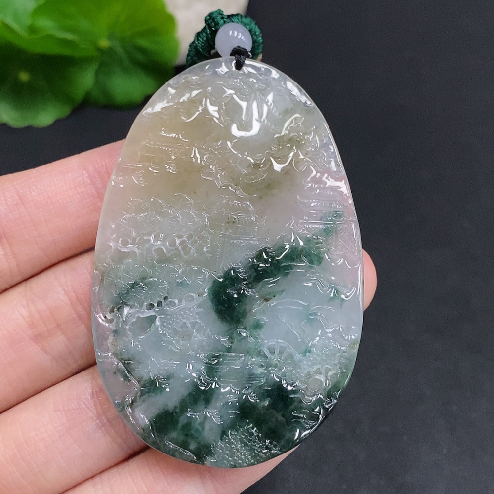Jadeite Landscape Pendant with Cord, Total Weight Approx. 35.2g