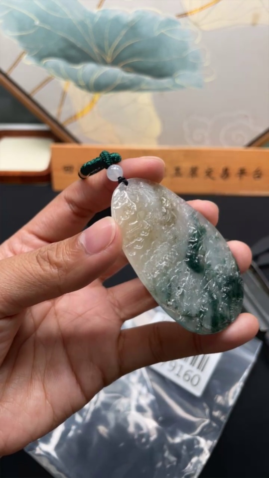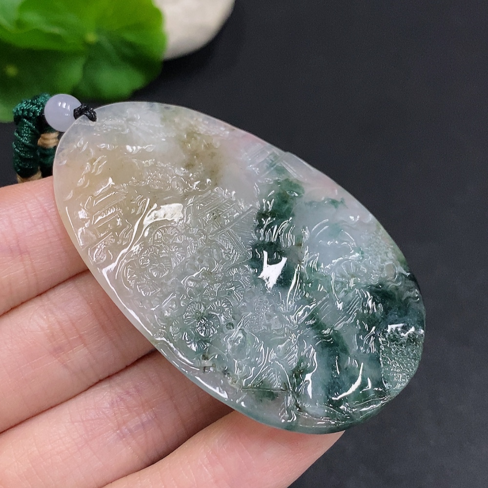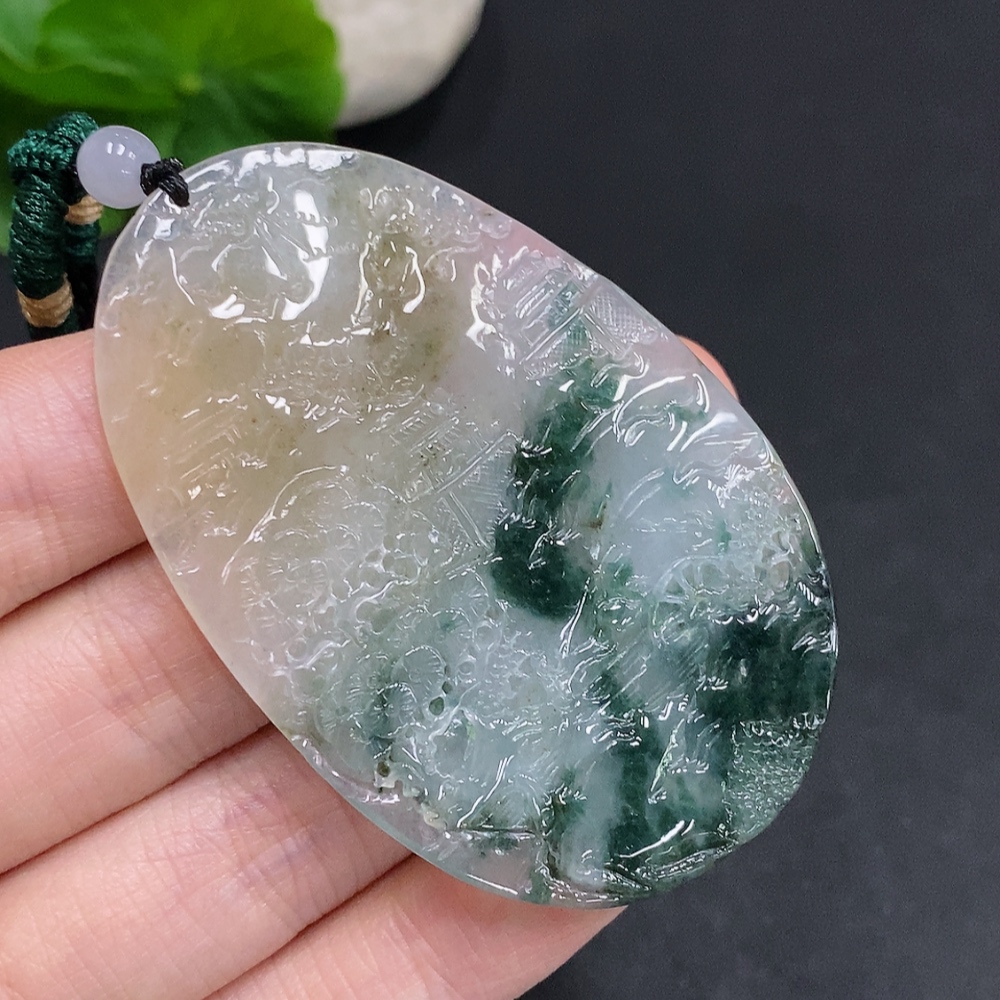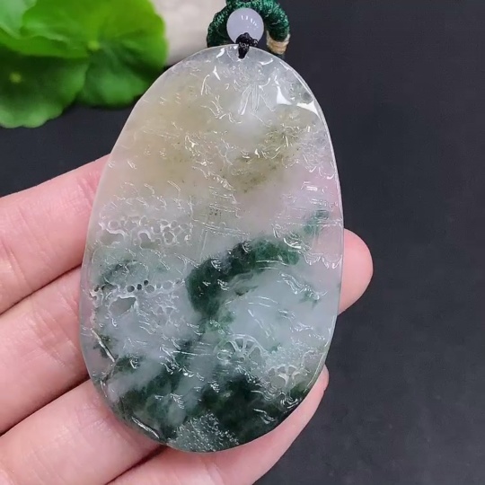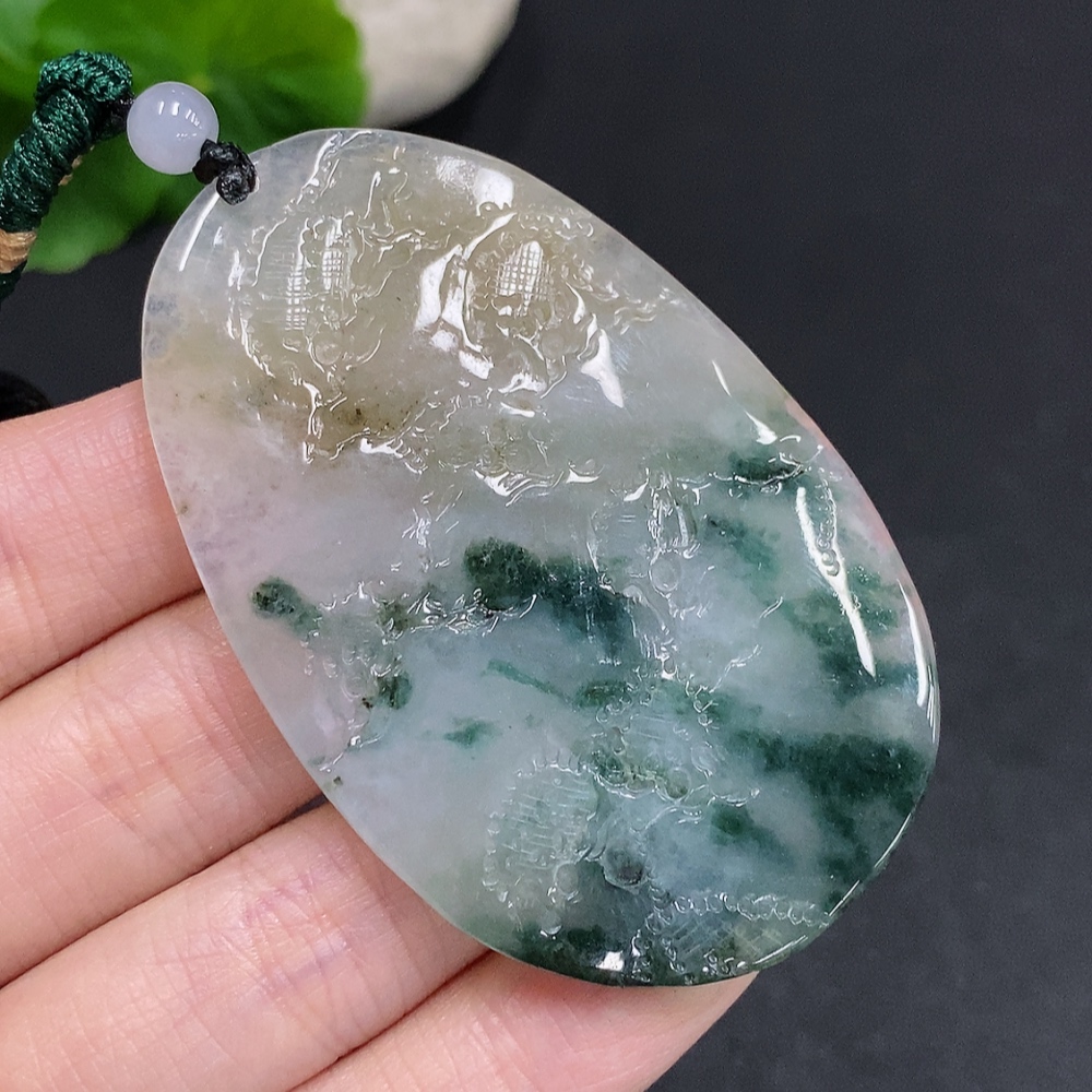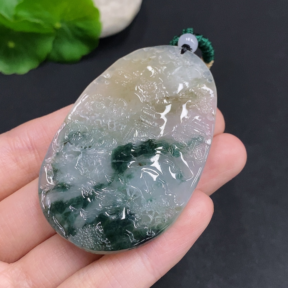 Jadeite Landscape Pendant with Cord, Total Weight Approx. 35.2g