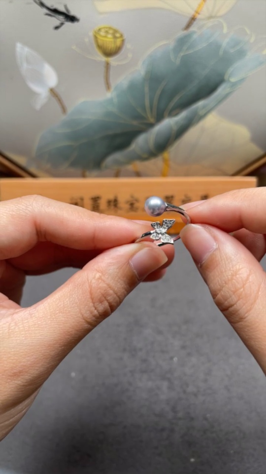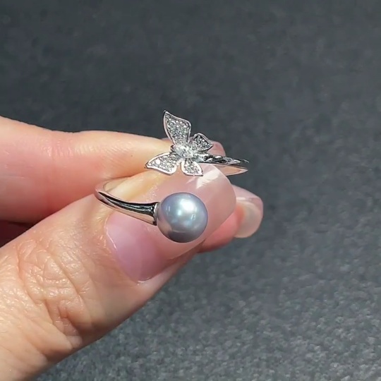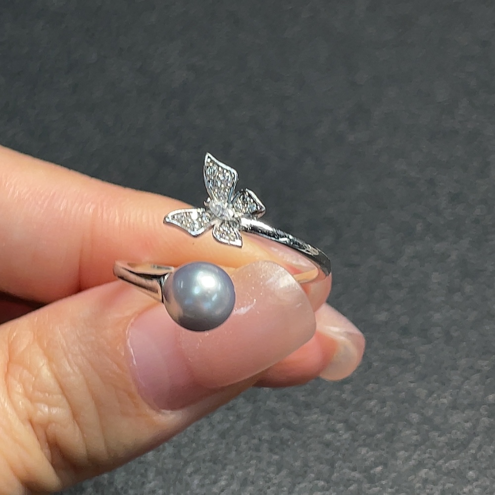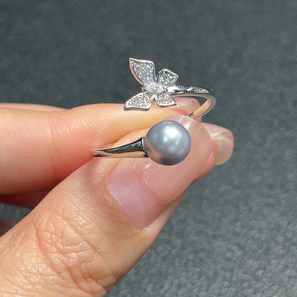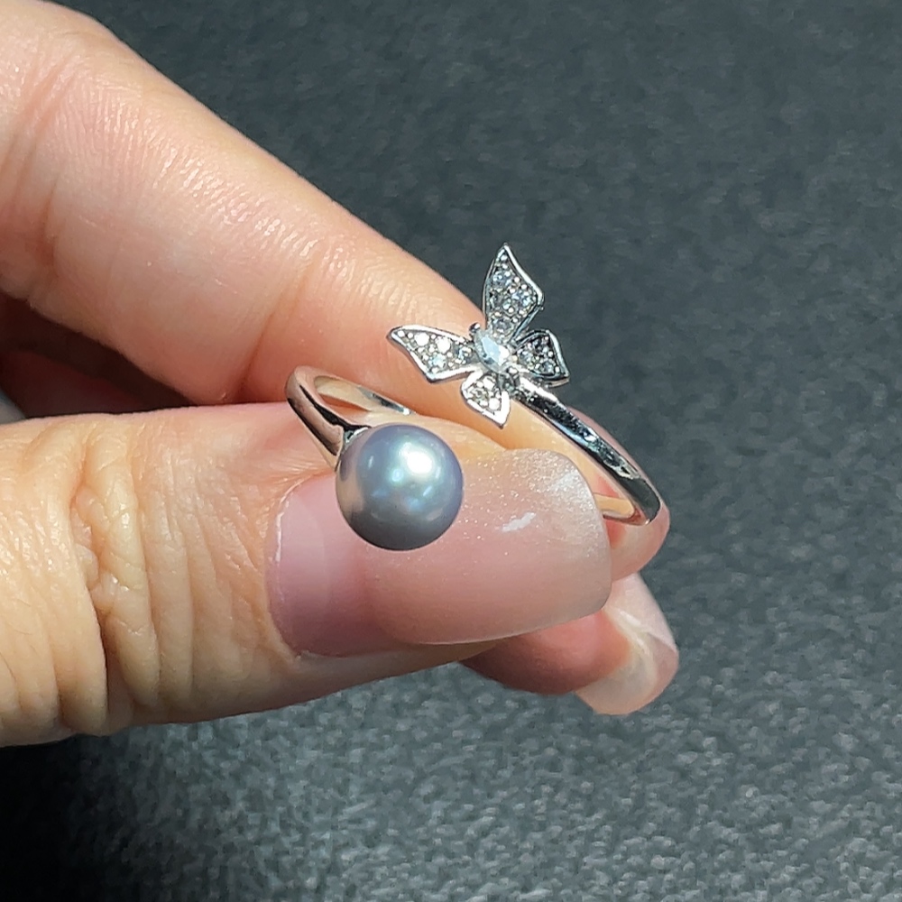 Seawater pearl ring, color origin undetermined, adjustable, non-gold, total weight approximately 2.05g, size about 6.6mm