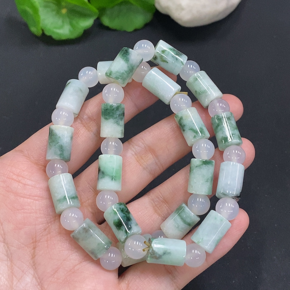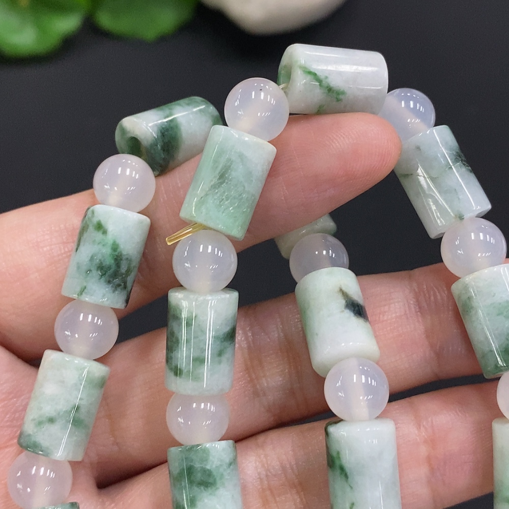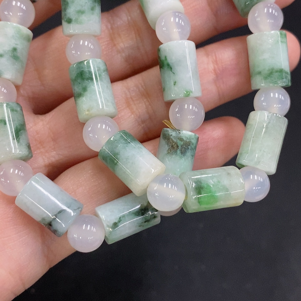 Jadeite Beads Sell as a Lot Total Weight Approx. 57.4g (with Other Mineral Components) (Matching Beads Non-A)