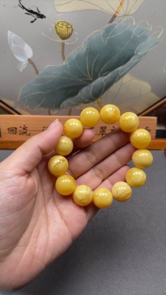 Amber Beeswax Bracelet, Total Weight Approx. 29.53g, Size About 15.8mm