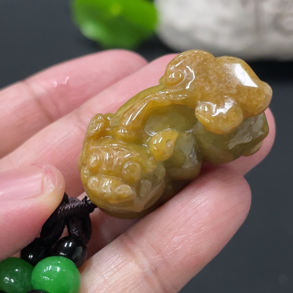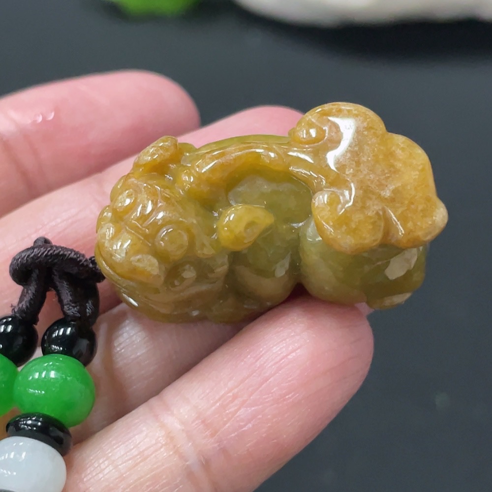 Jadeite Pixiu Pendant Total Weight Approx. 25.5g (Including Rope Weight) Beads Not Jadeite