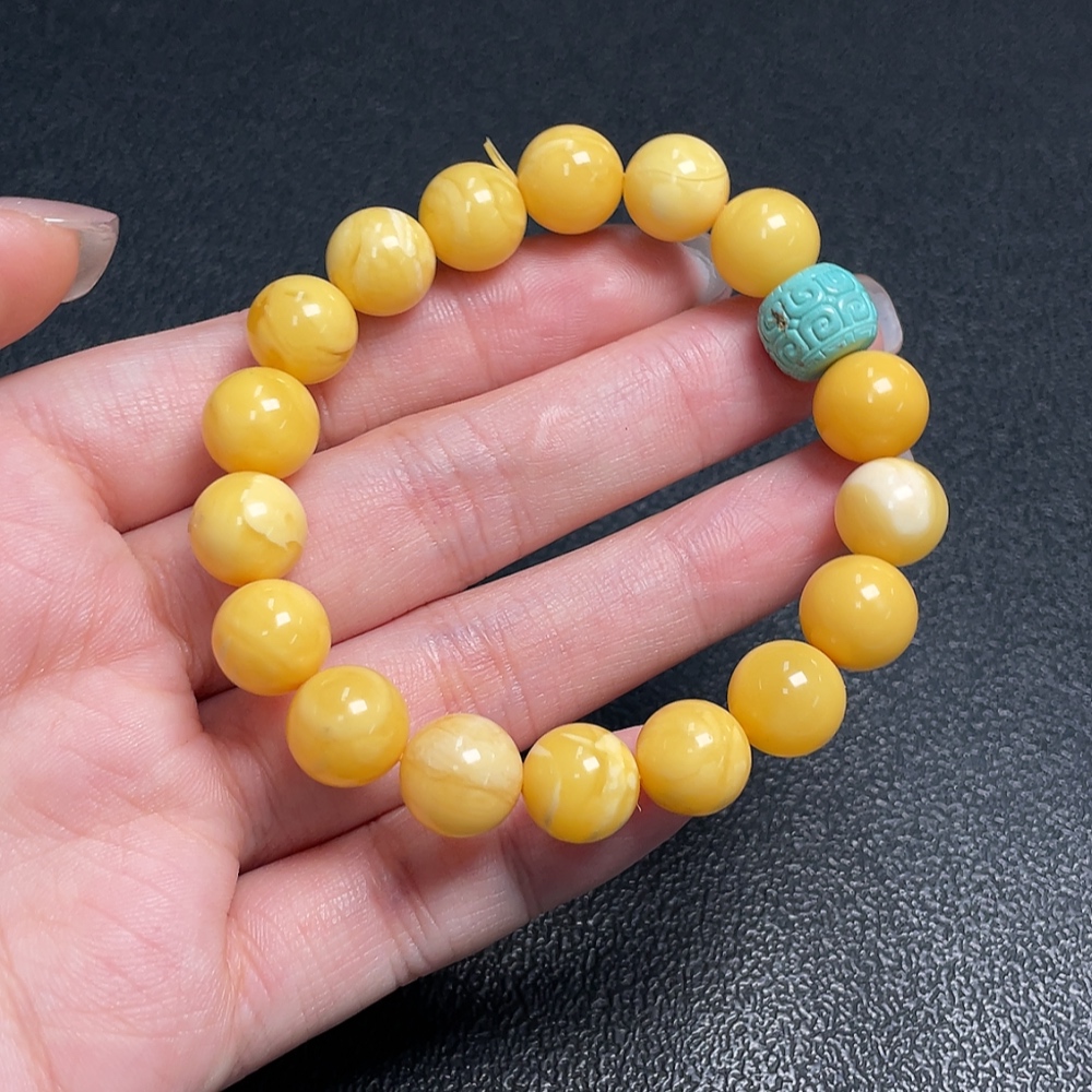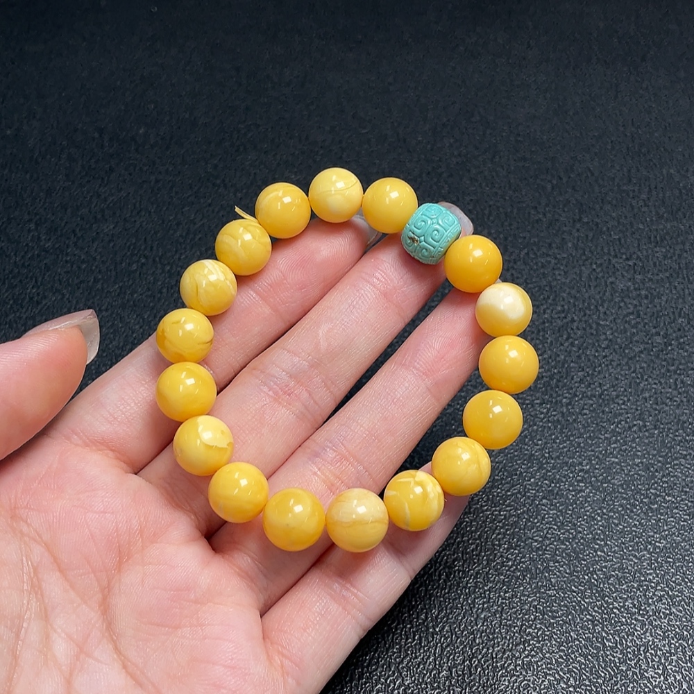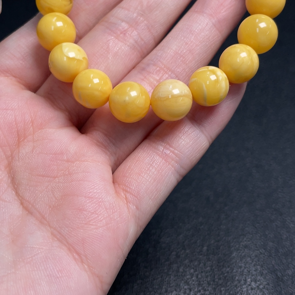 Amber Beeswax Bracelet, Total Weight Approx. 11.23g, Size 10.3mm, Non-Natural Matching Stones Considered