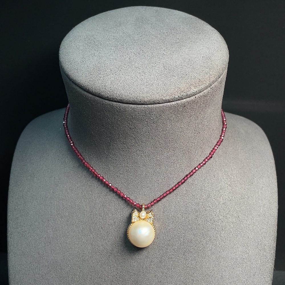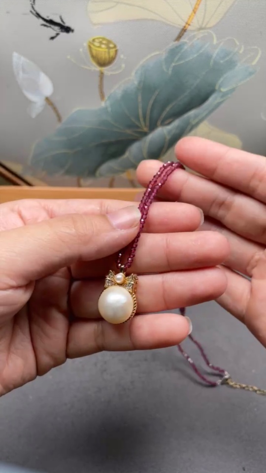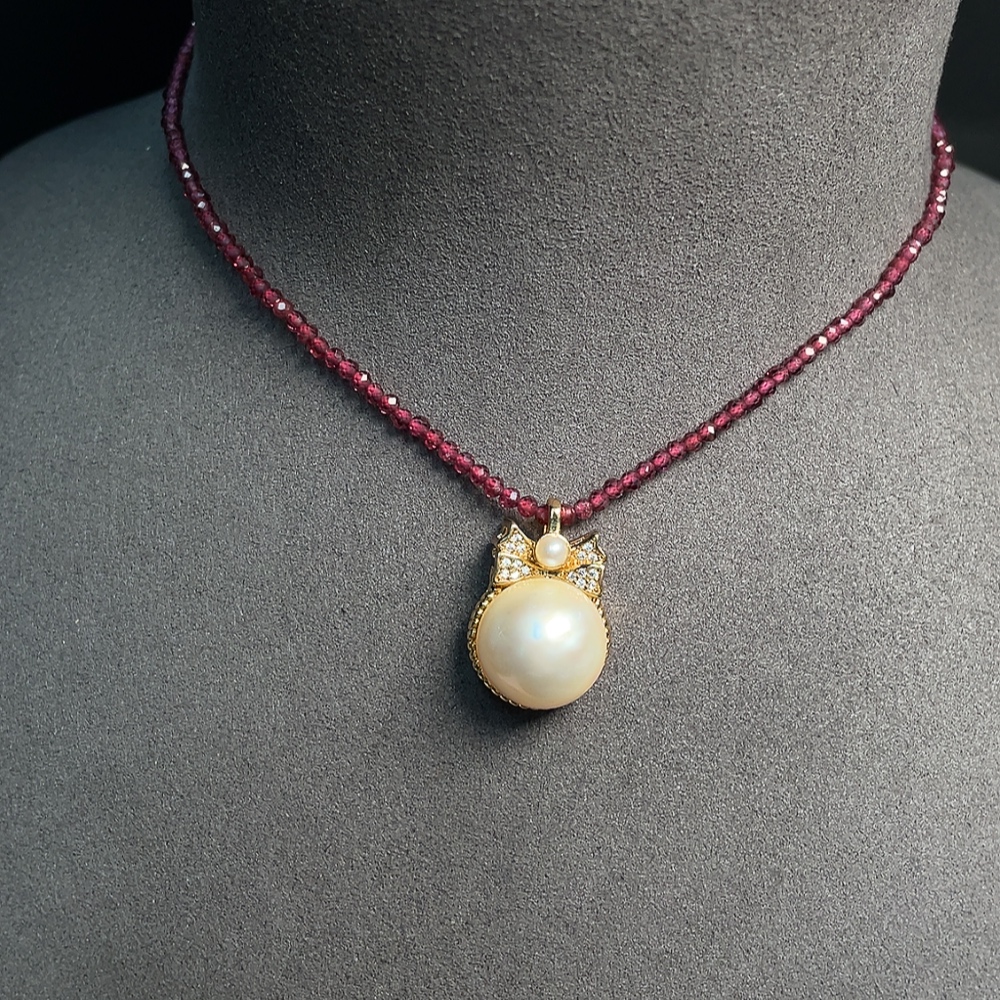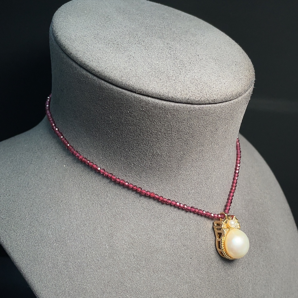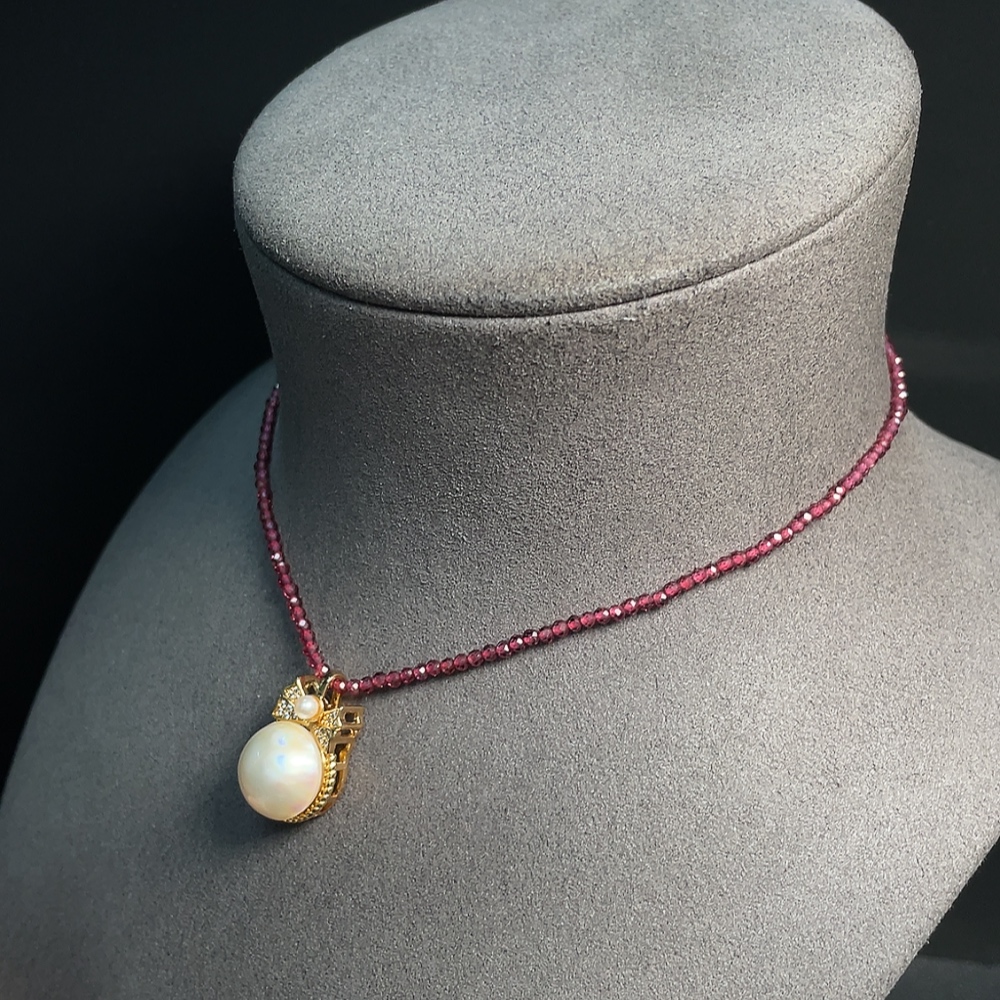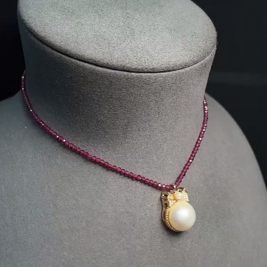Composite Seawater Pearl Pendant with Garnet and Pearl, Non-Gold, Total Weight Approx. 10.29g, Size About 13.5mm