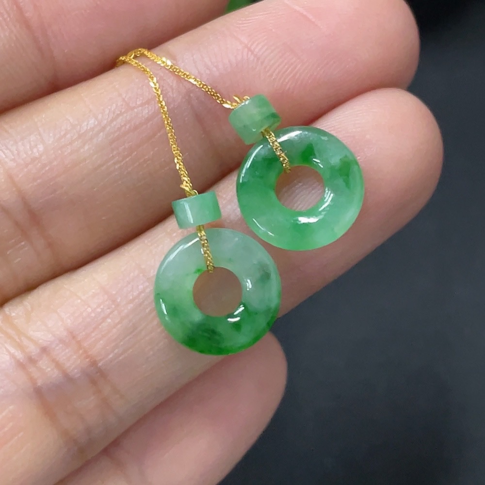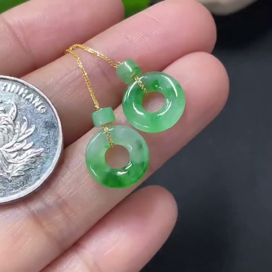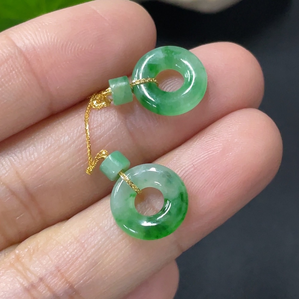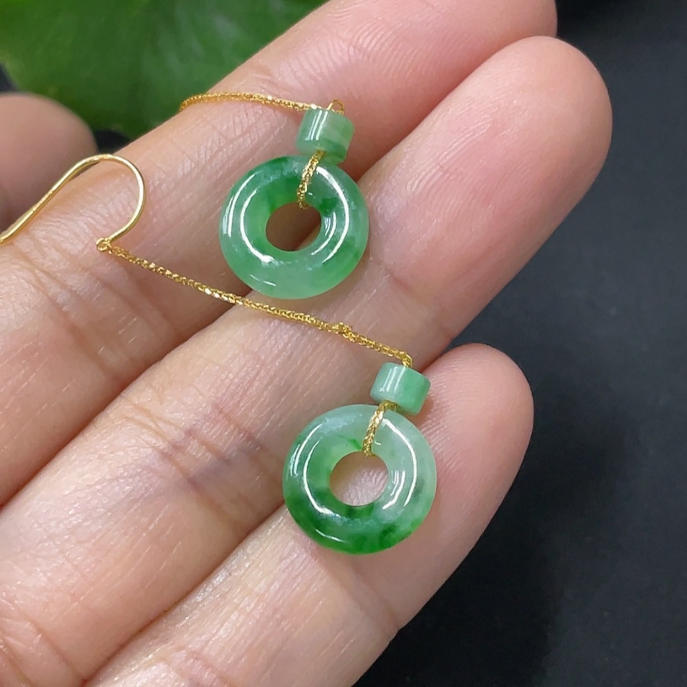 Jadeite Inlaid Earrings 18k Total Weight Approx. 1.3g