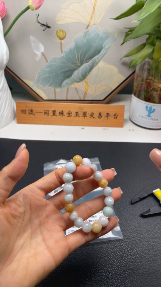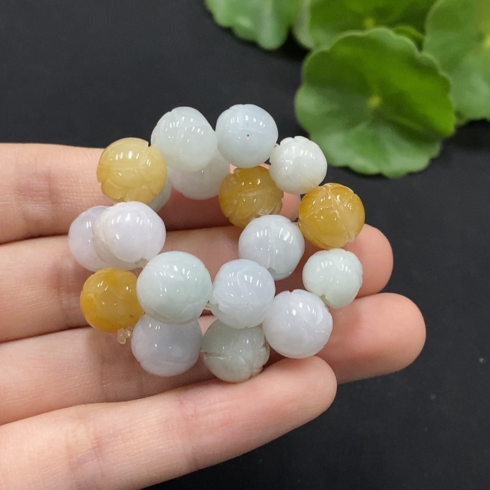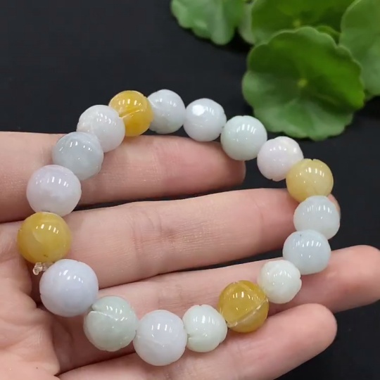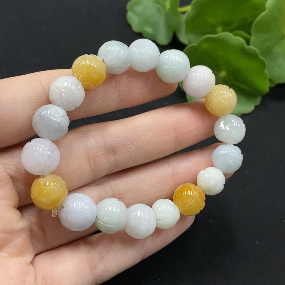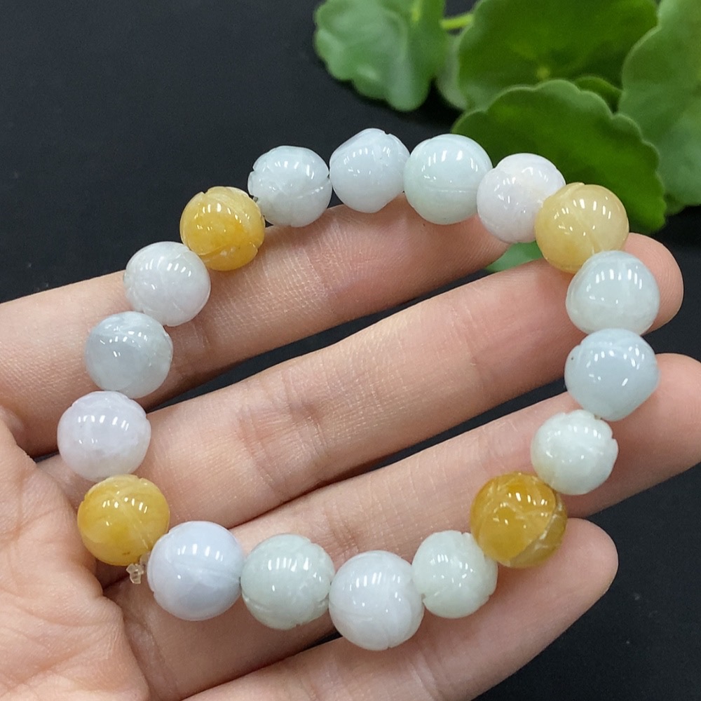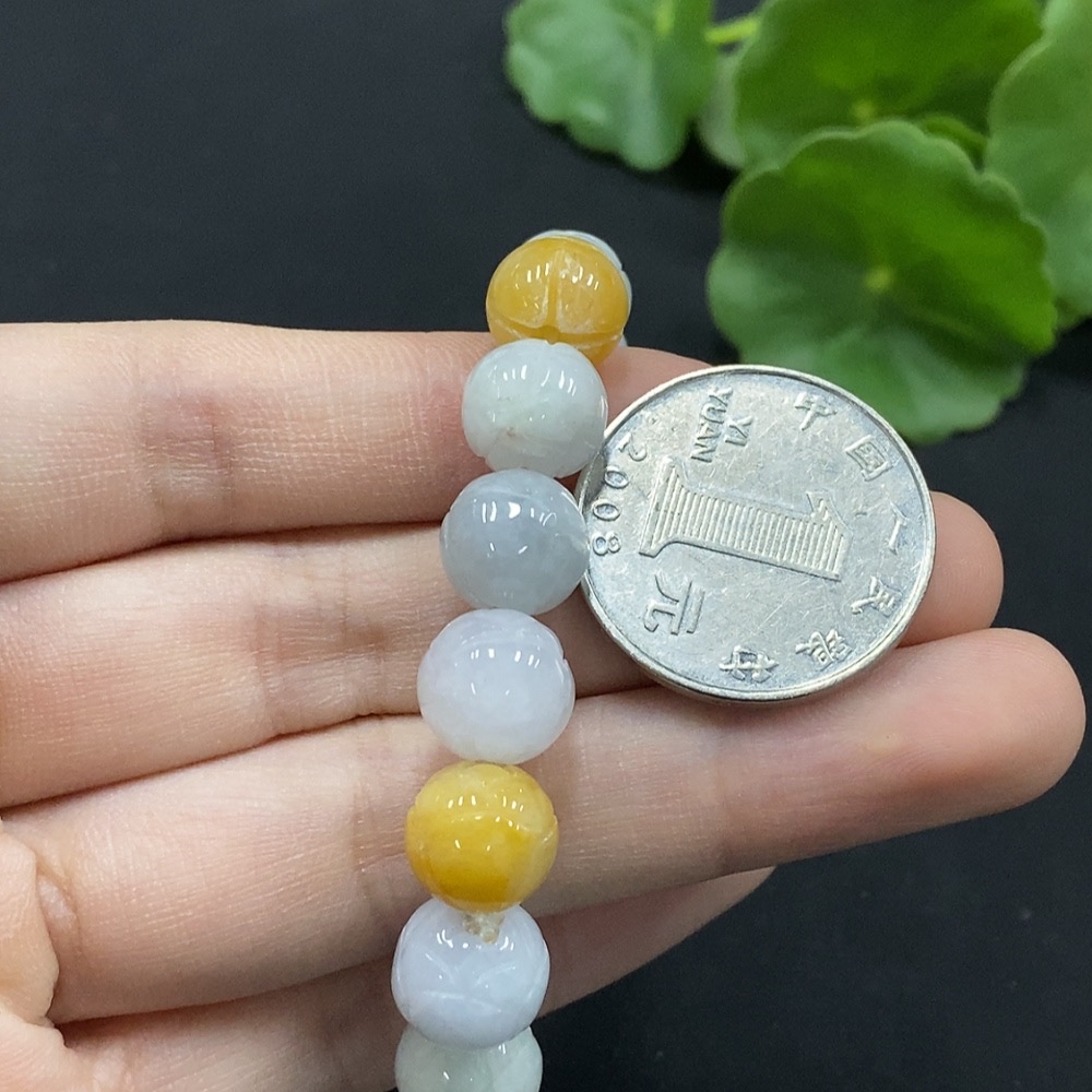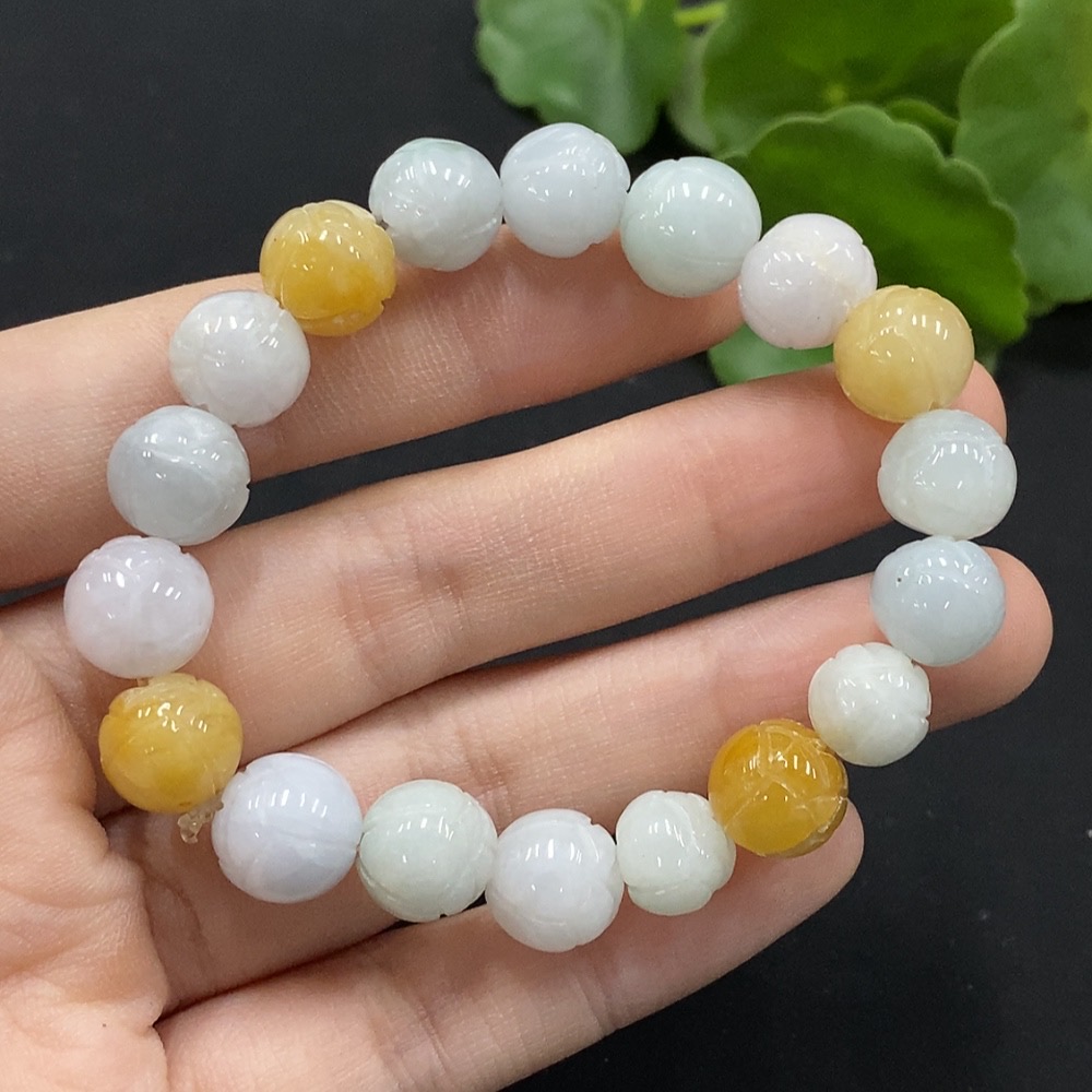 Jadeite Beads Bracelet Approx.10.3/8.4mm Yellow Beads Non-Grade A Total Weight Approx.27.53g