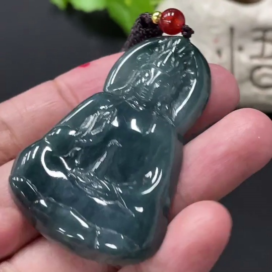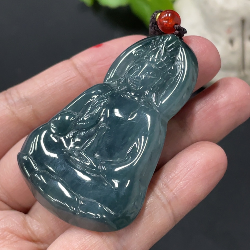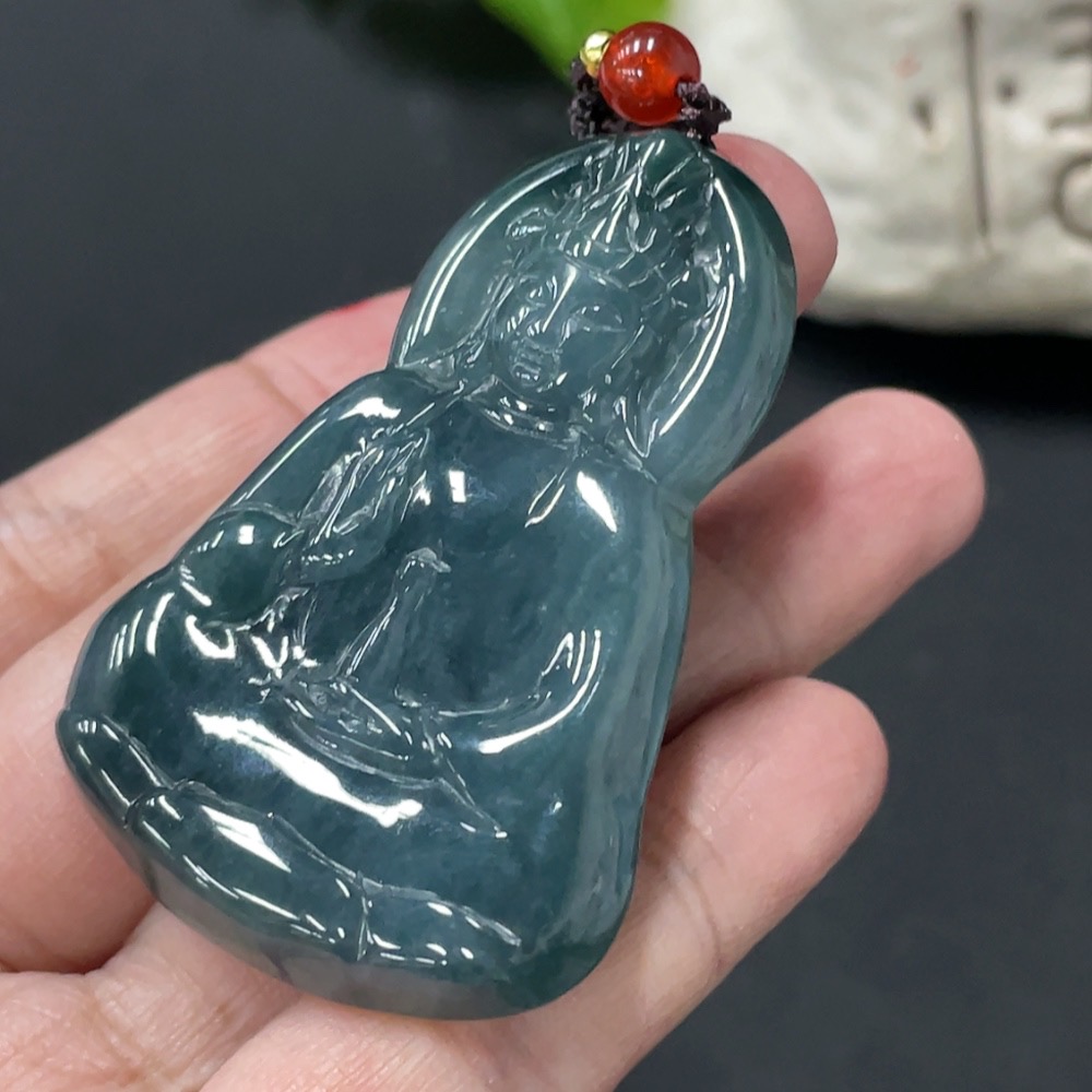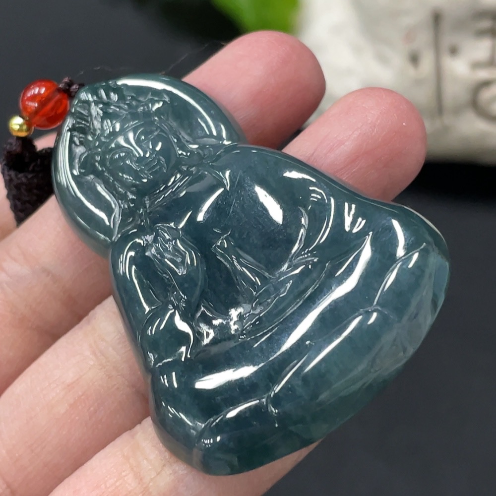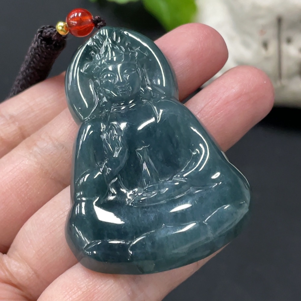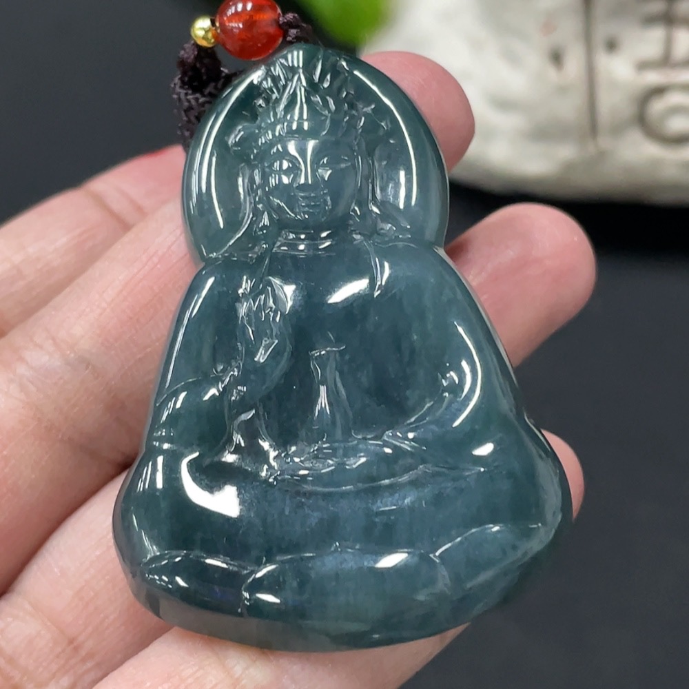 Jadeite Pendant Guanyin Total Weight Approx. 23.82g Including Rope Non-A Grade Beads