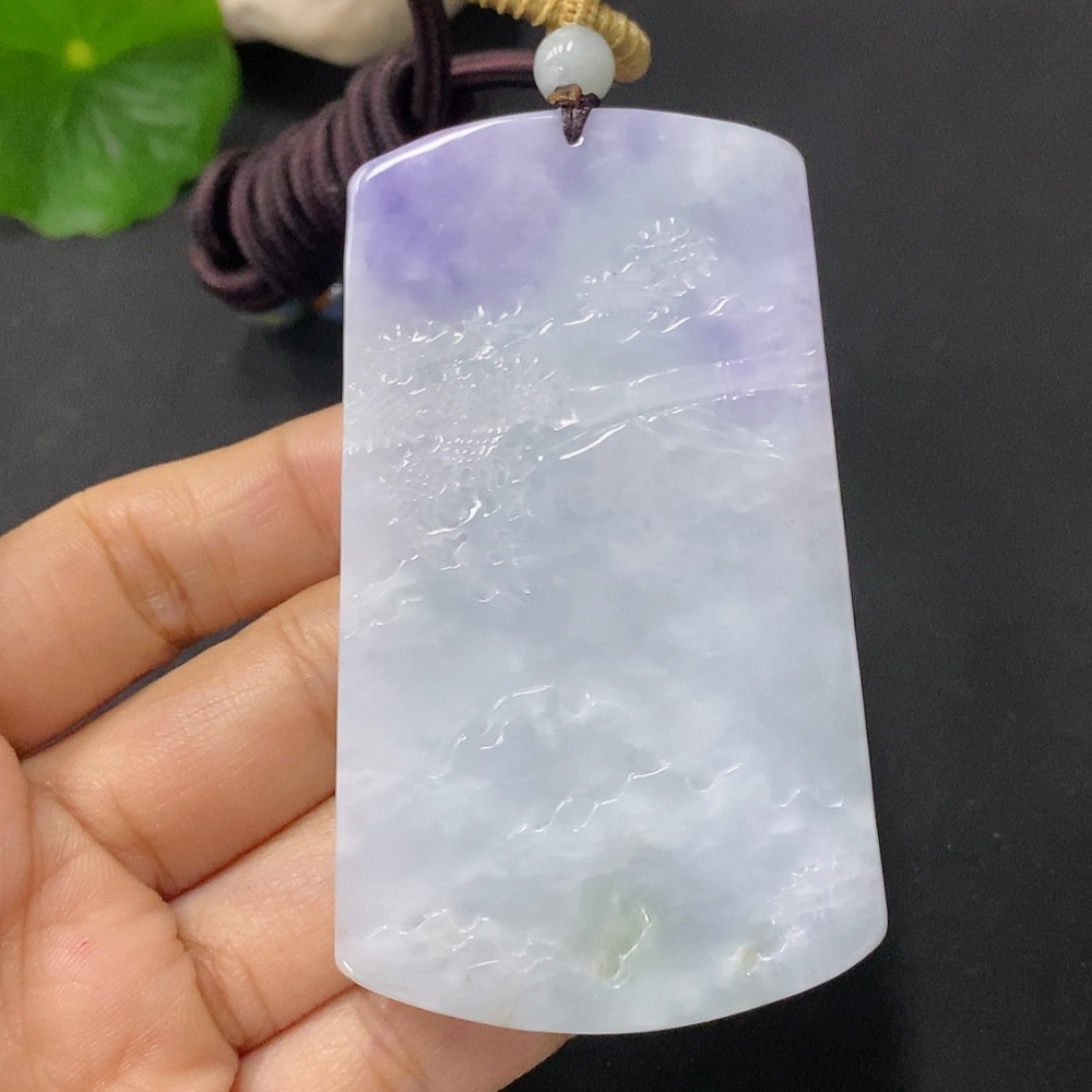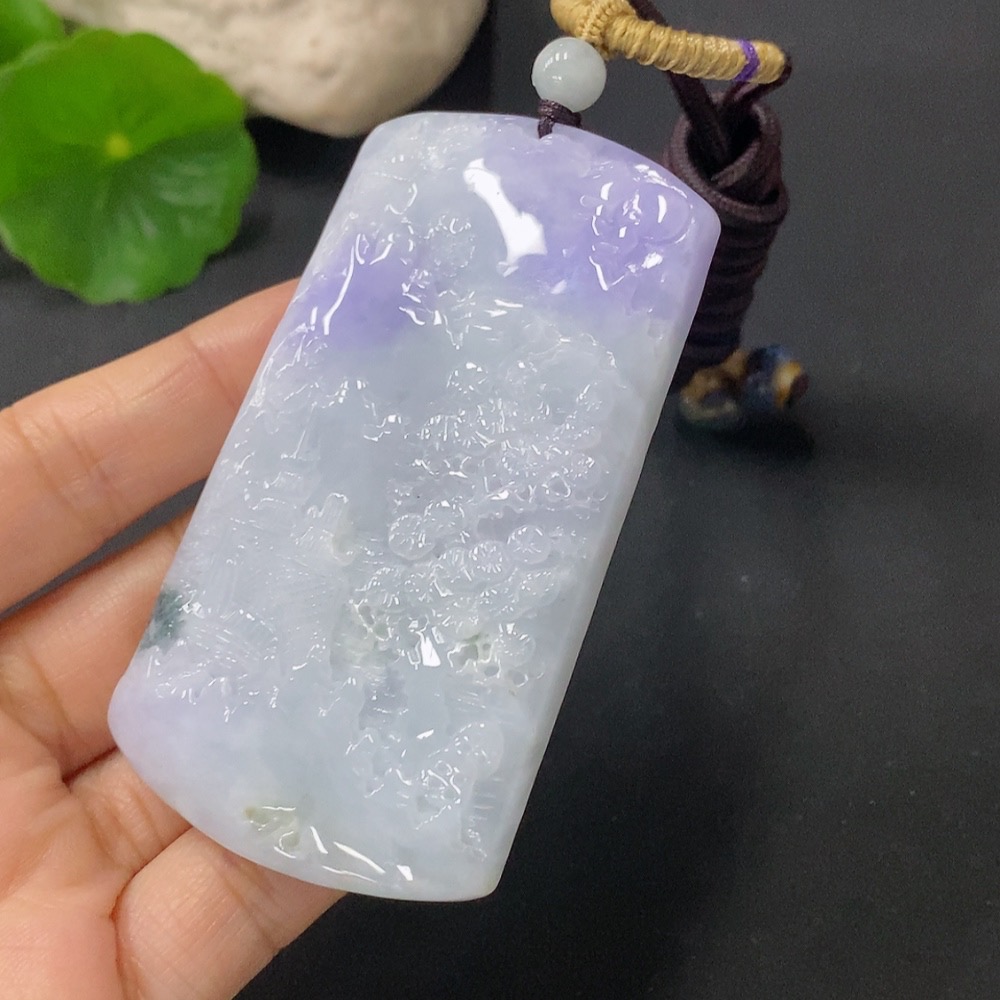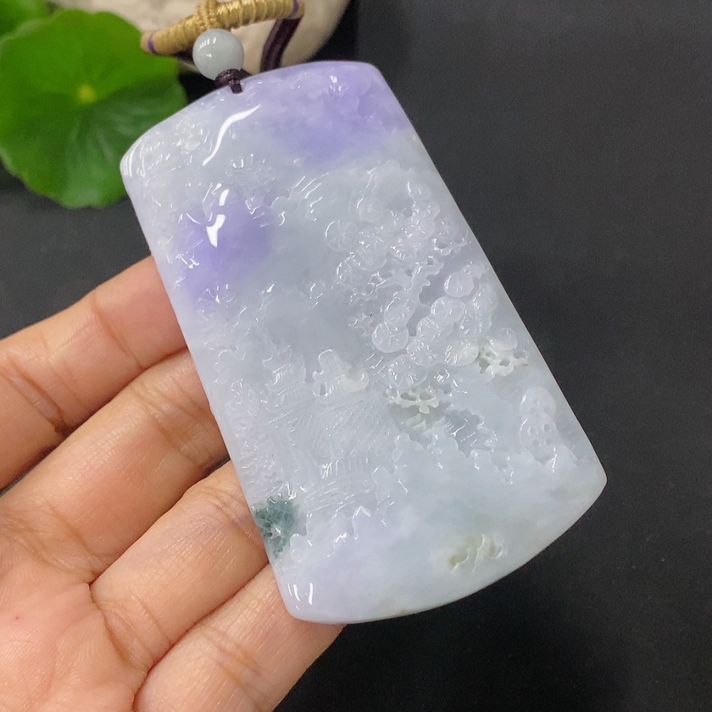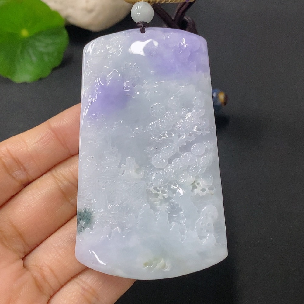 Jadeite Pendant Landscape Plaque Total Weight Including Rope 65.3g