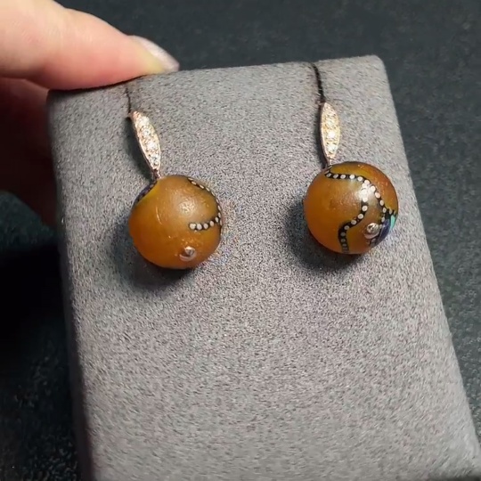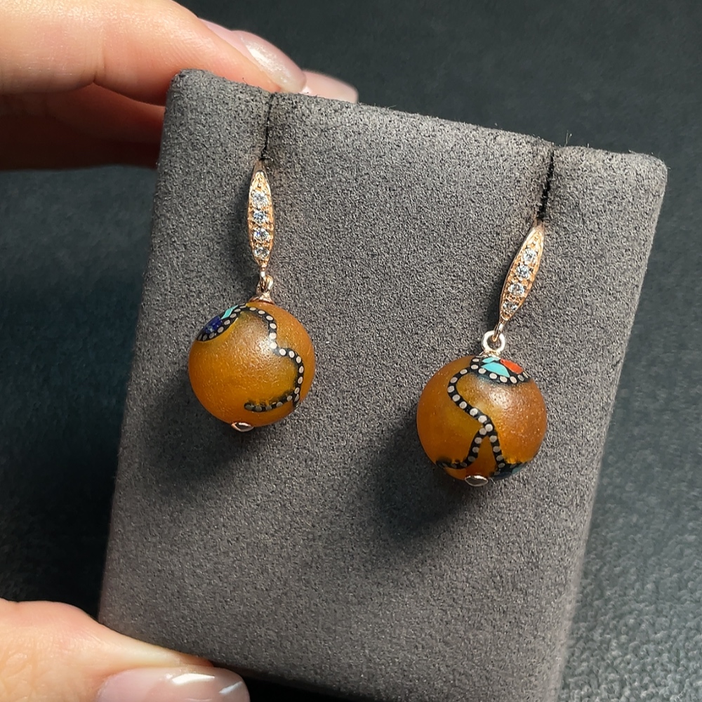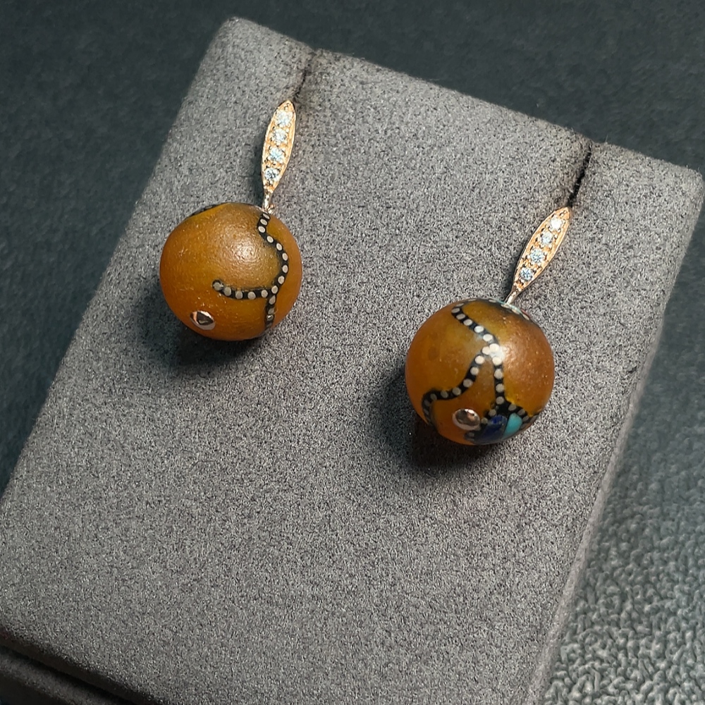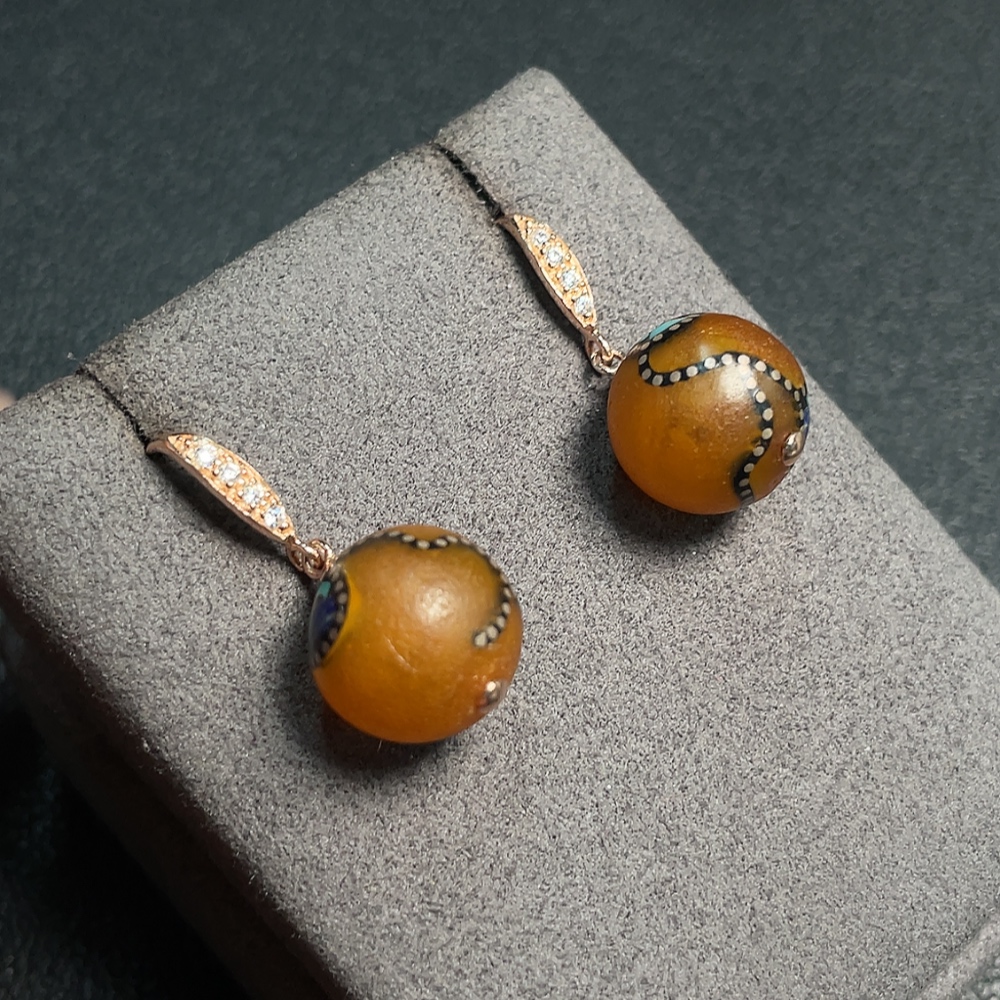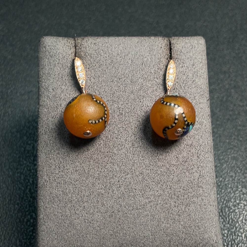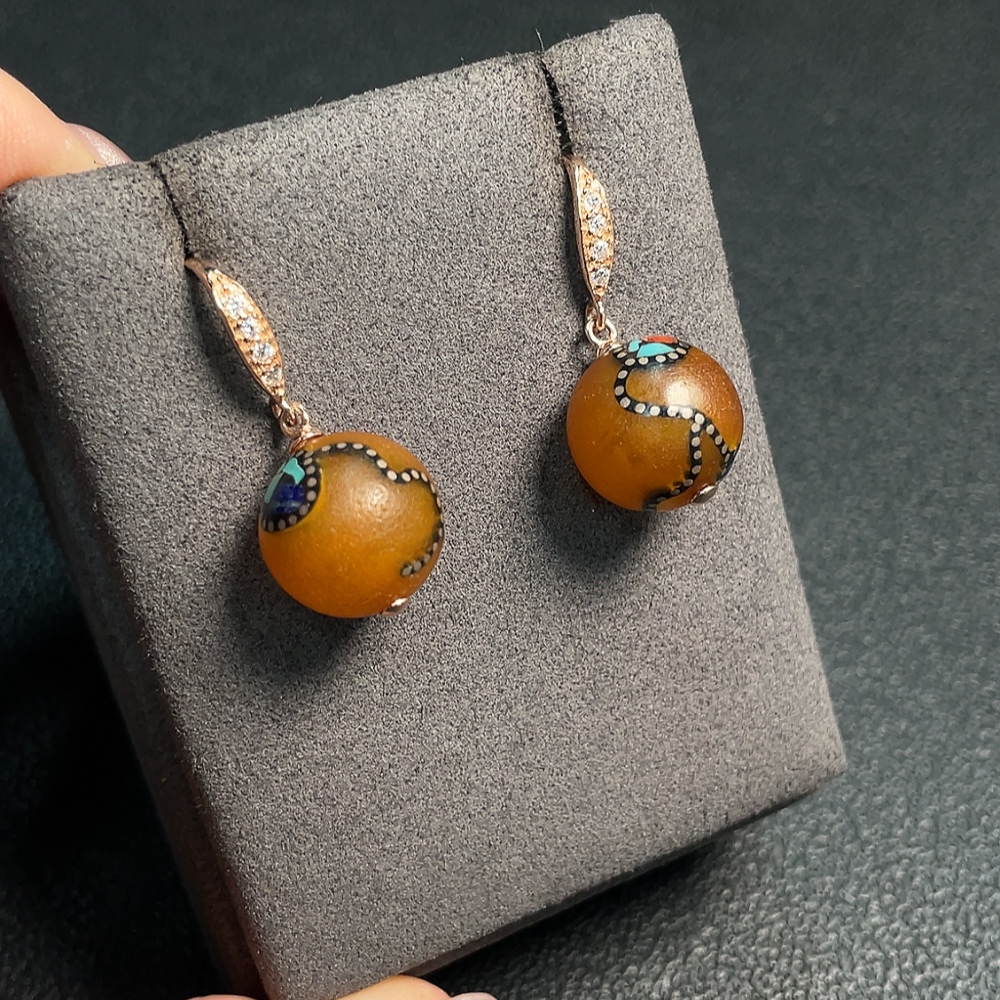 Amber Beeswax Earrings Non-Gold Visible Adhesive Craftsmanship Total Weight Approx. 4.78g Size About 13.8mm