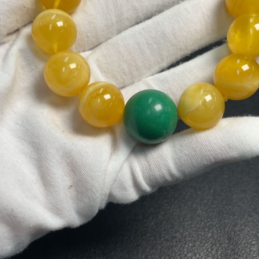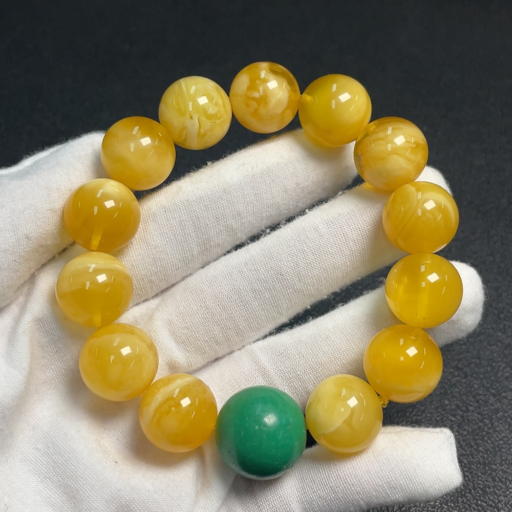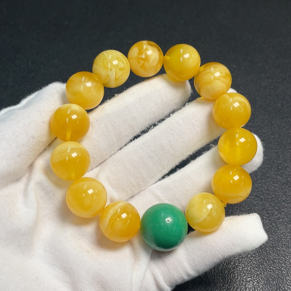 Amber Beeswax Bracelet with Non-Natural Gemstones, Total Weight Approx. 36.63g, Size About 15.7mm