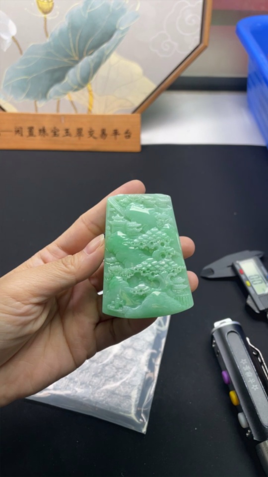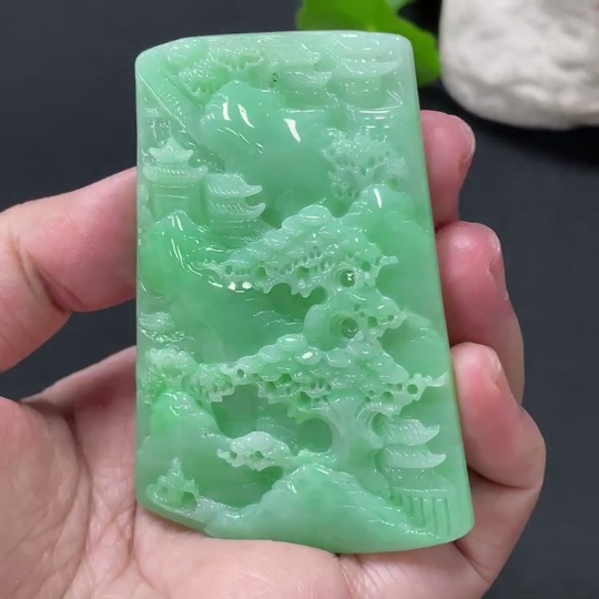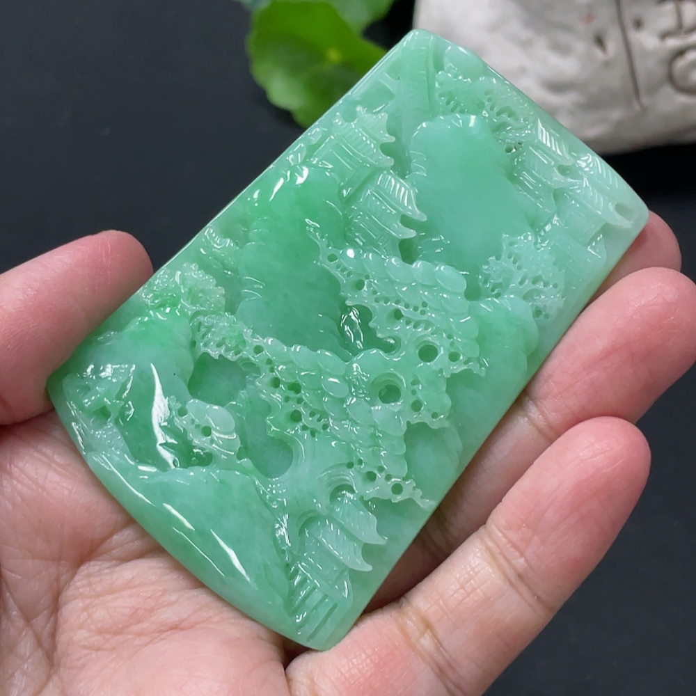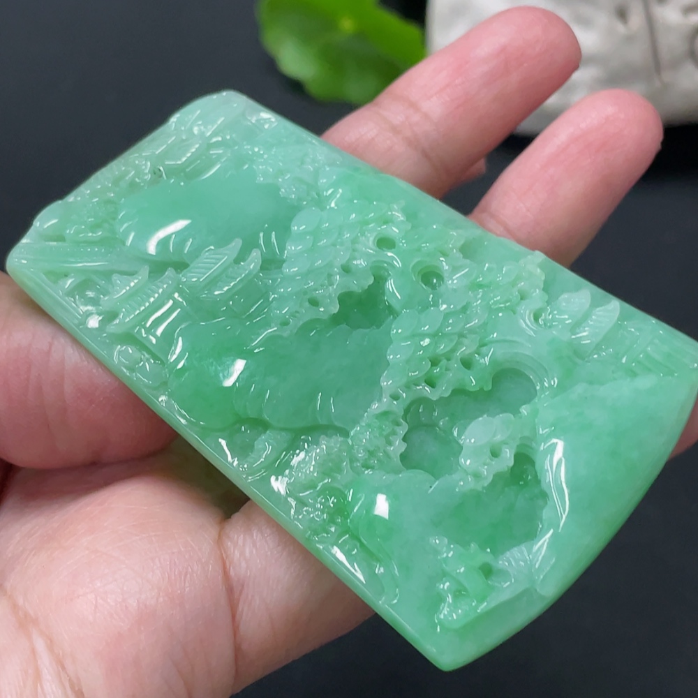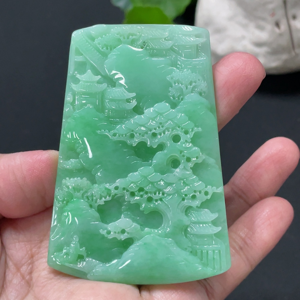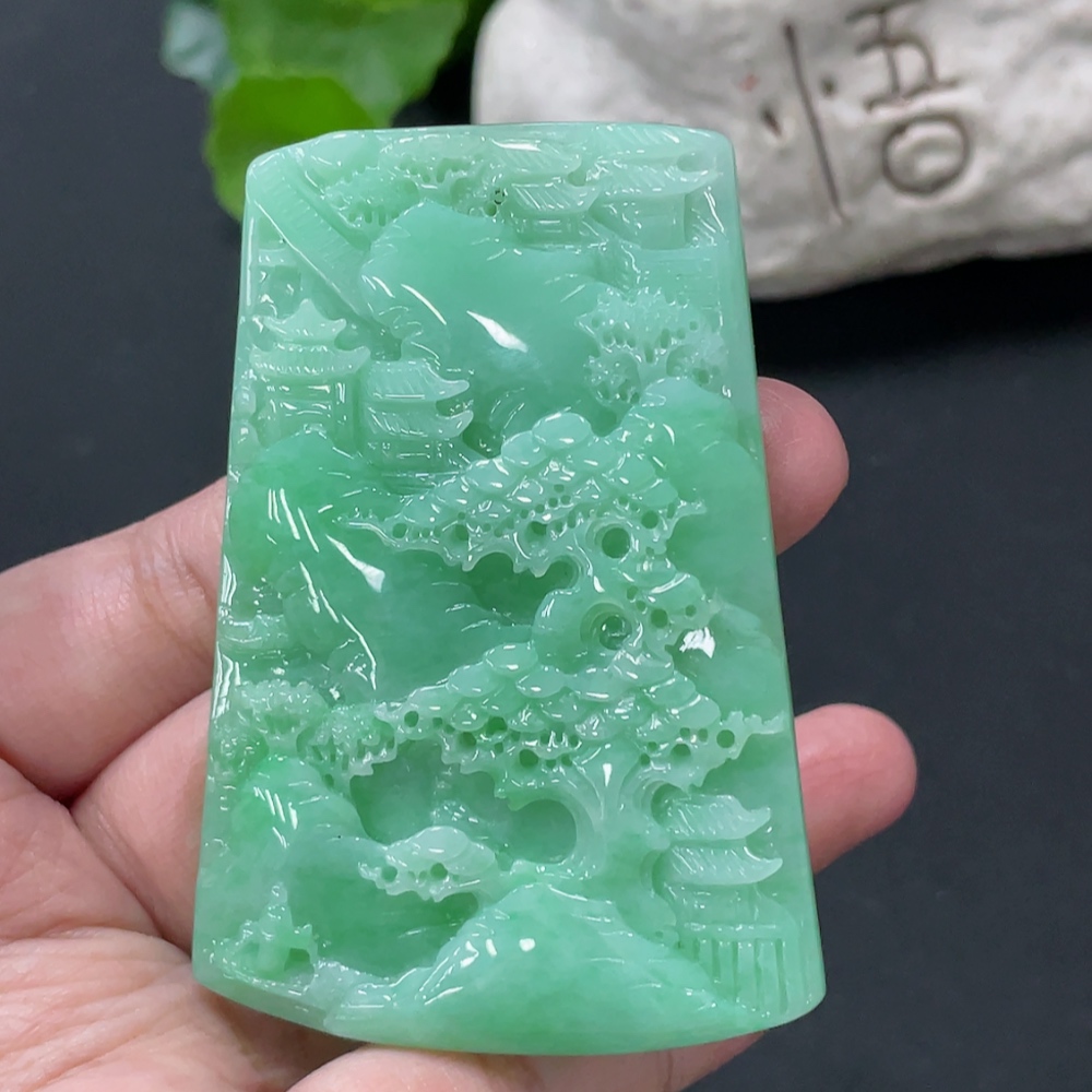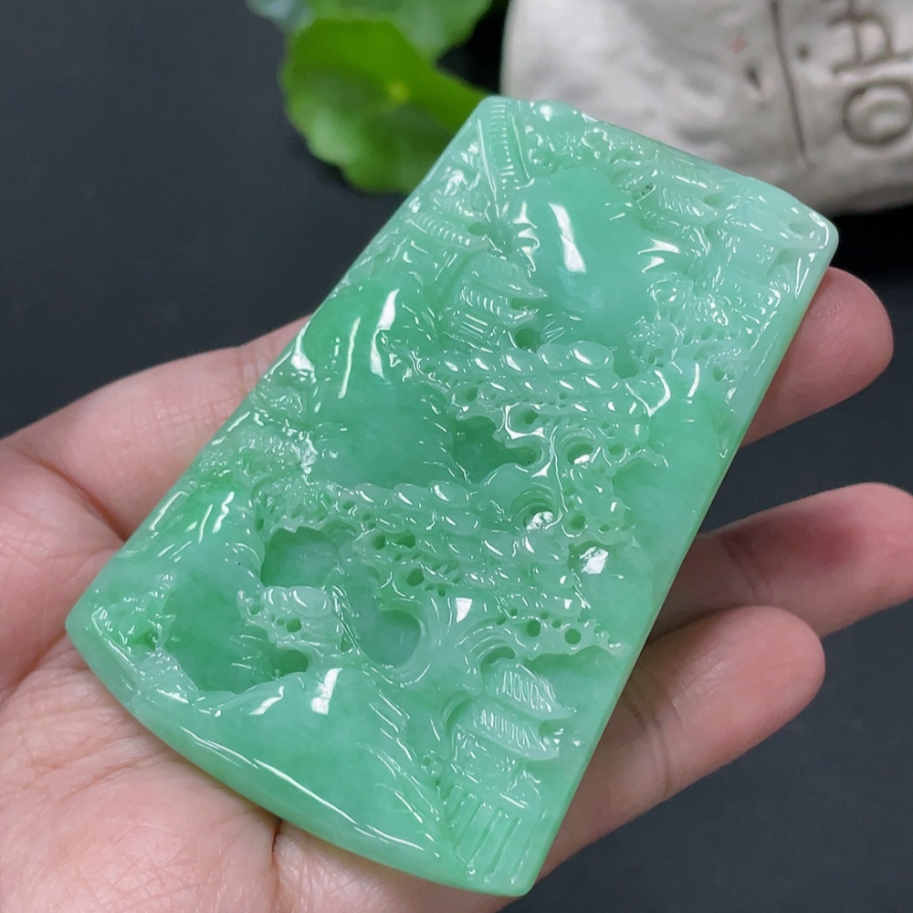 Trezaar - Jadeite landscape pendant, total weight approximately 42.7g