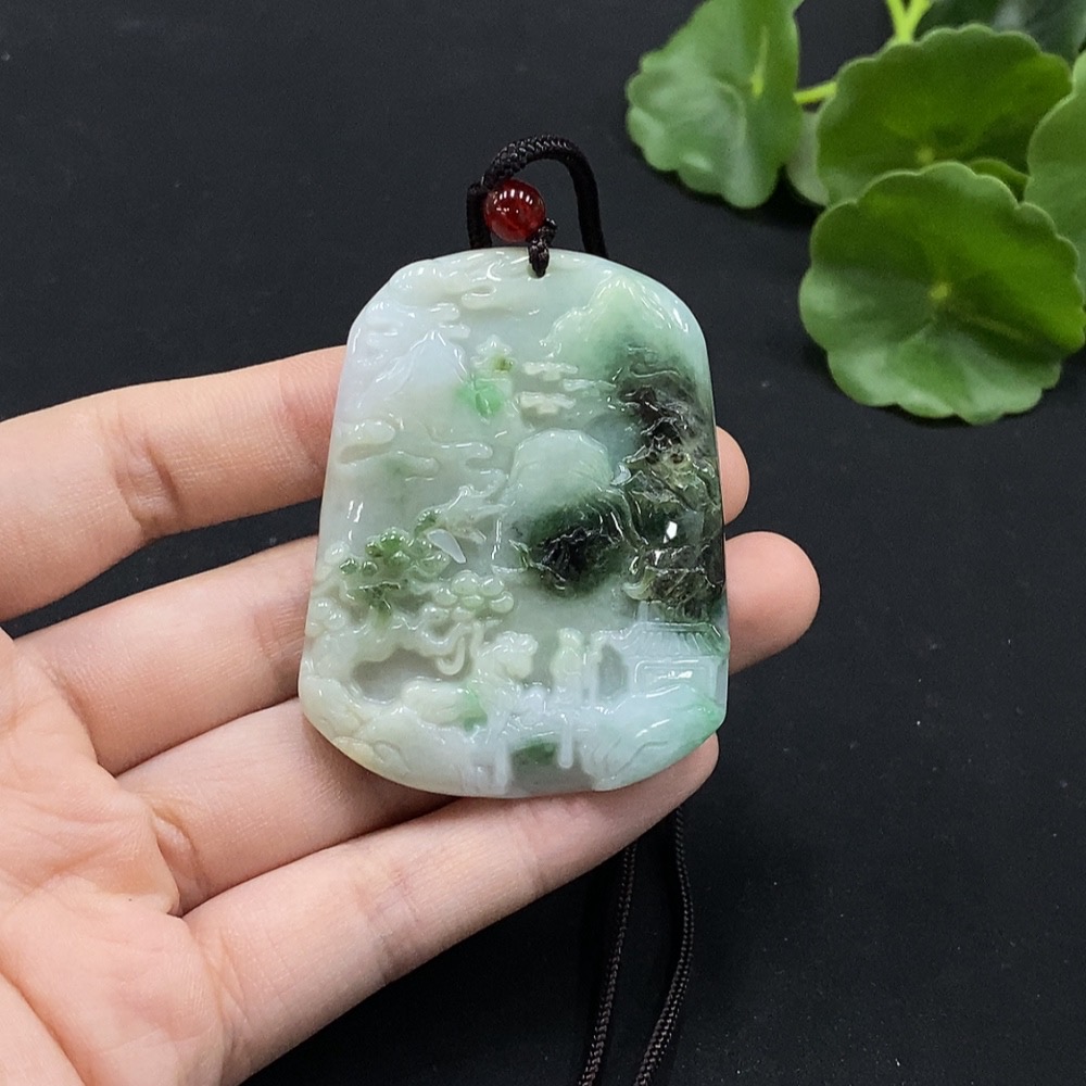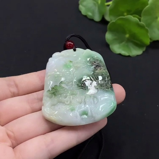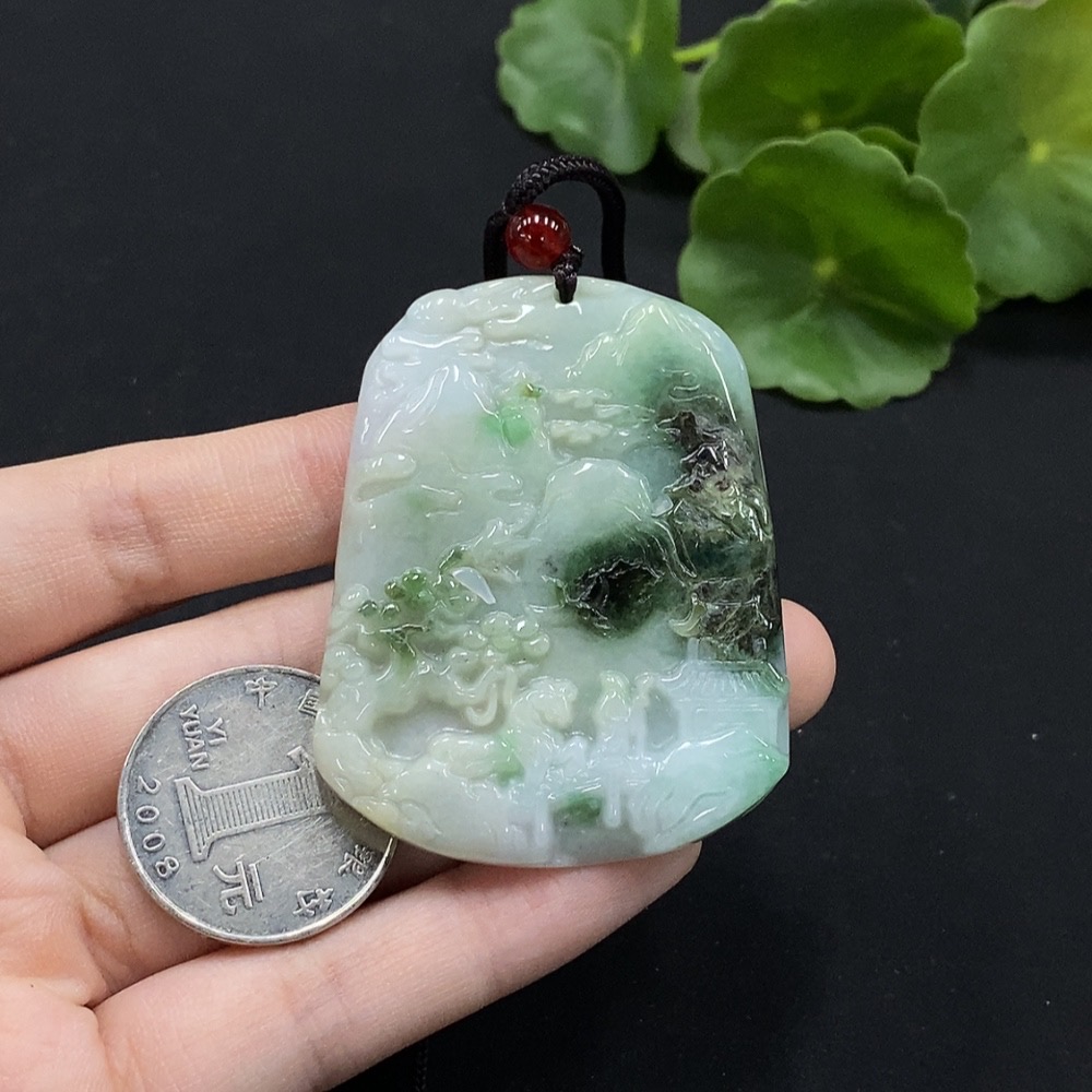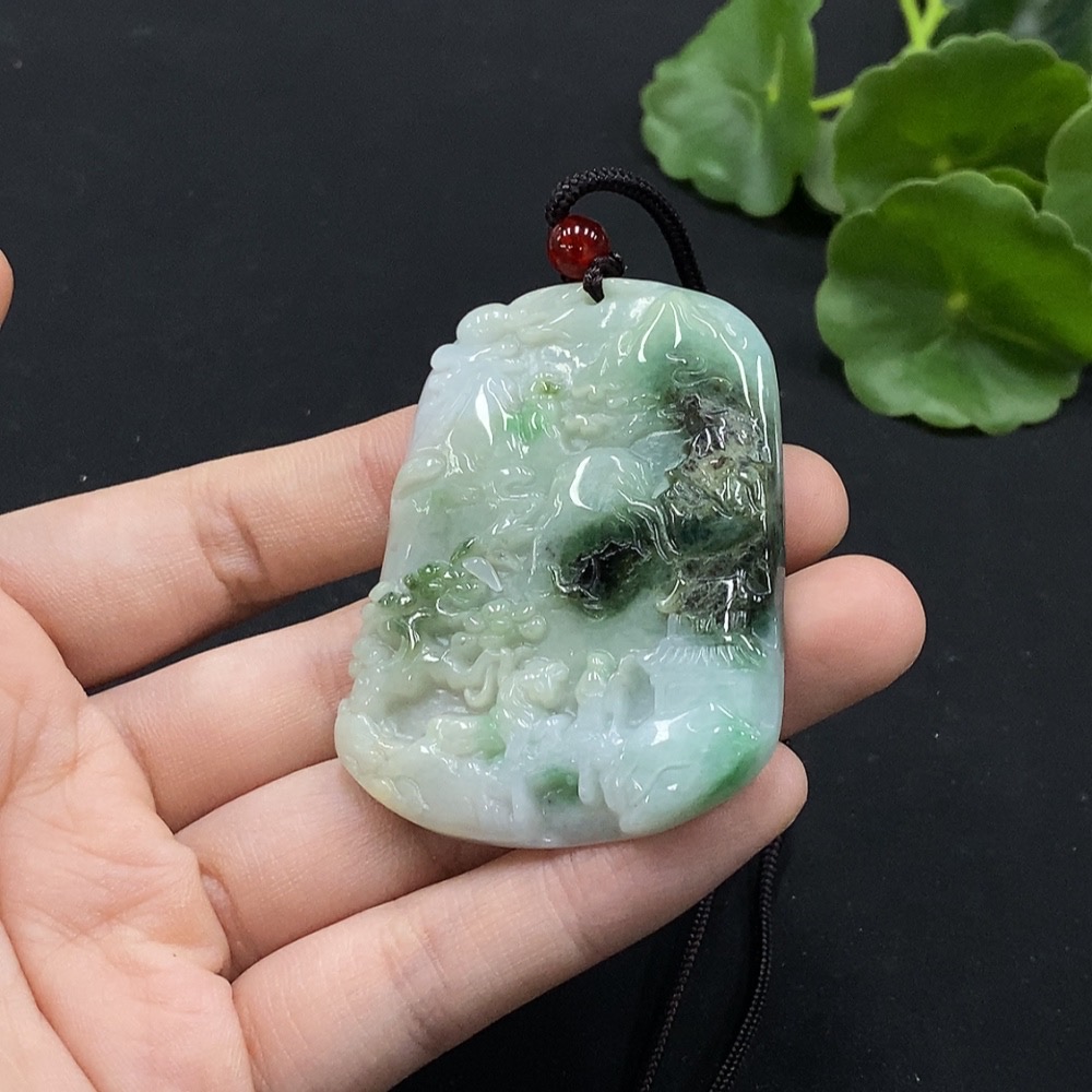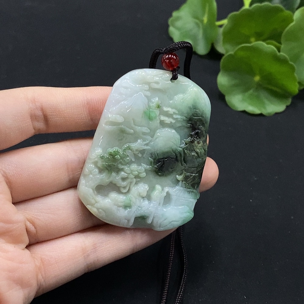 Jadeite Landscape Pendant Total Weight Approx. 34.05g Containing Other Mineral Components With Non-Type A Beads