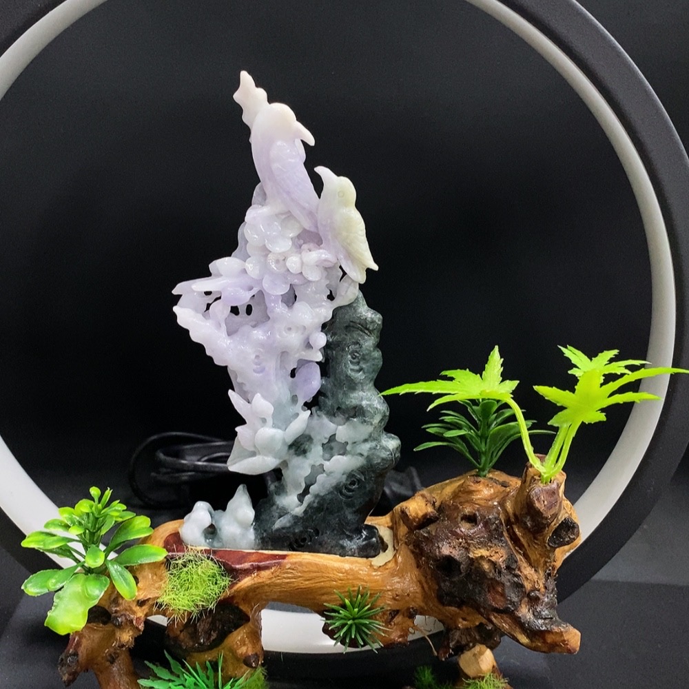 Trezaar - Jadeite Magpie on the Plum Branch Ornament