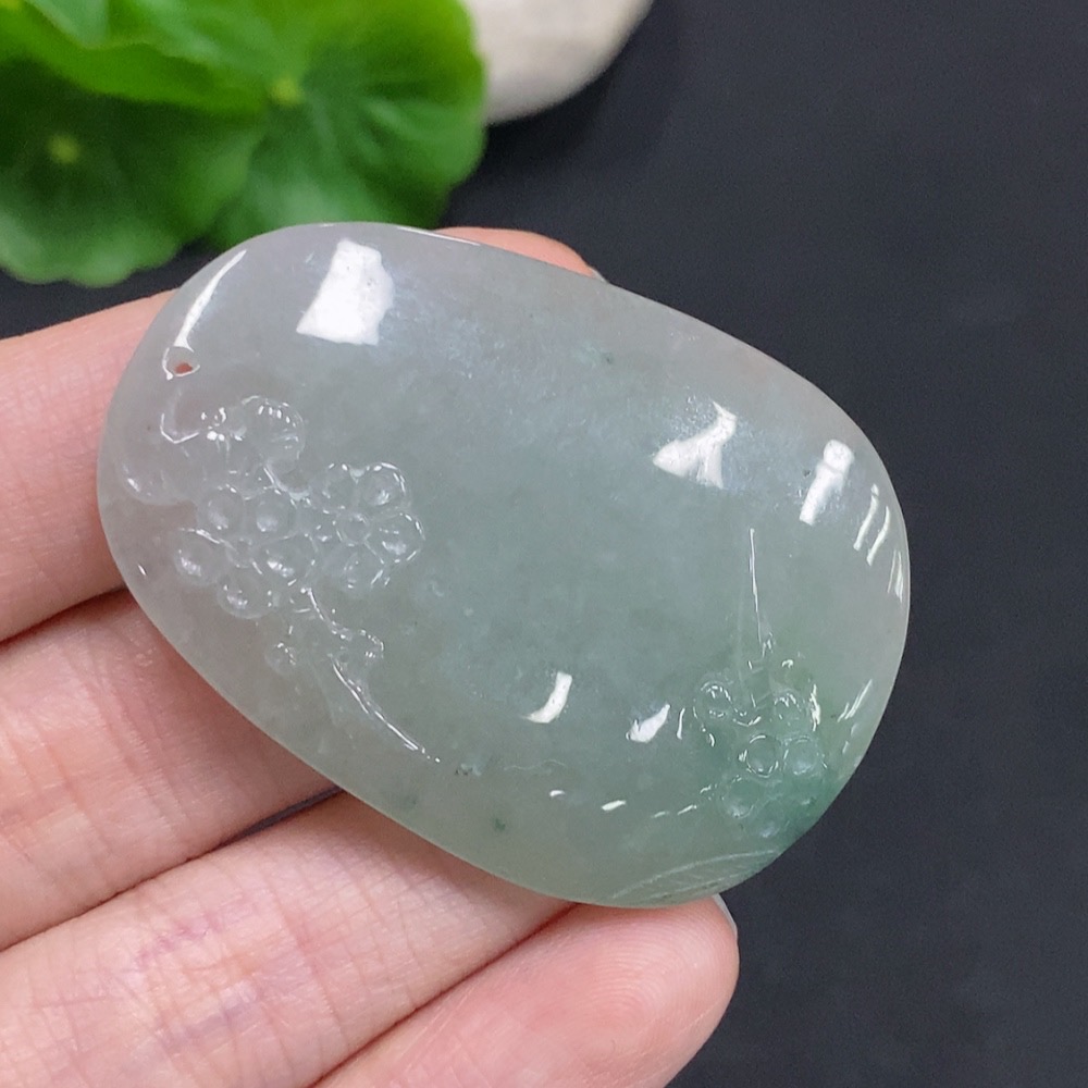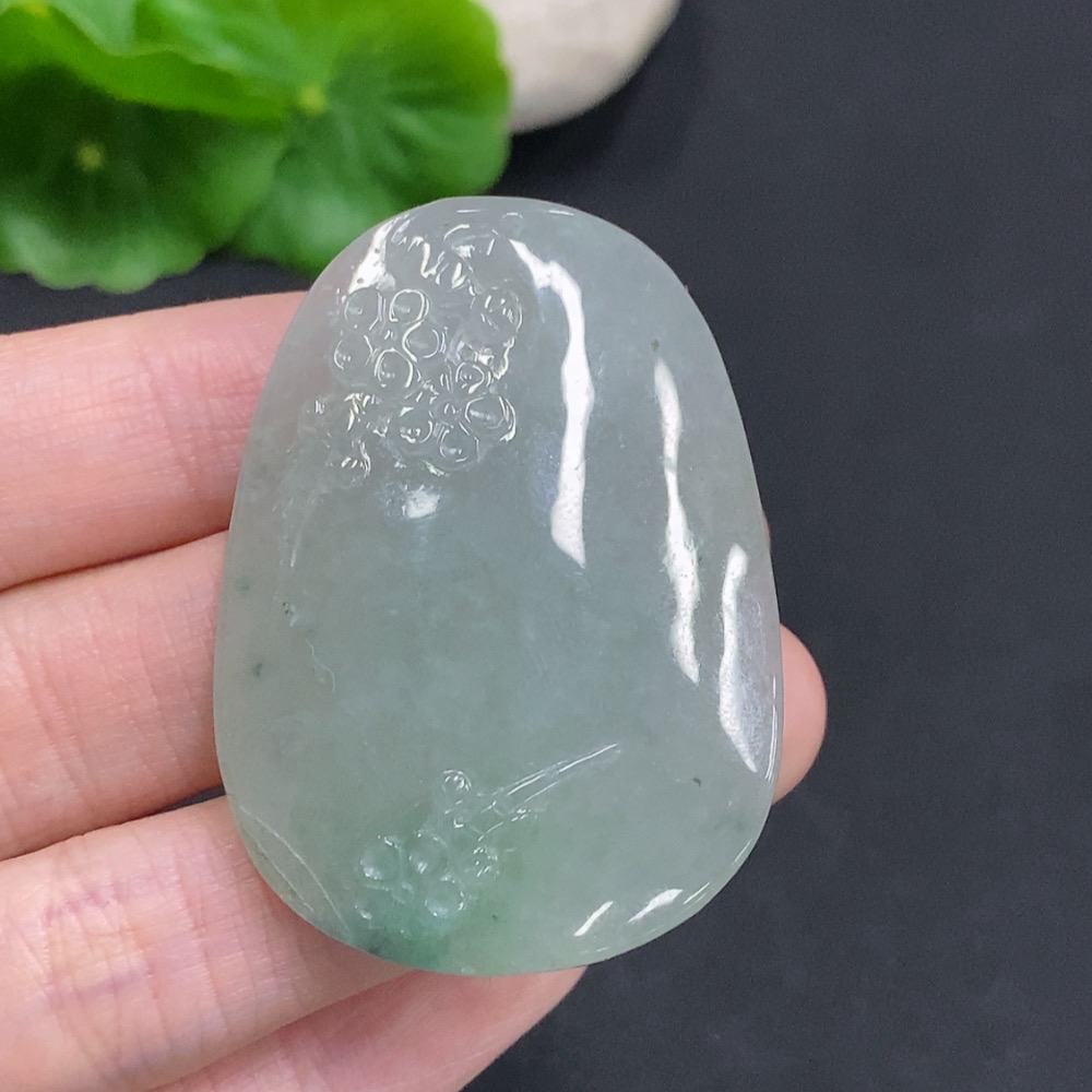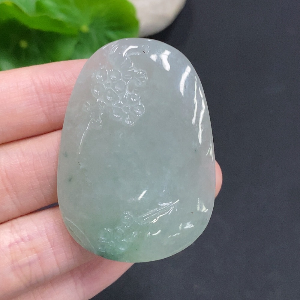 Jadeite Magpie on the Branch Pendant Total Weight Approx. 25.8g