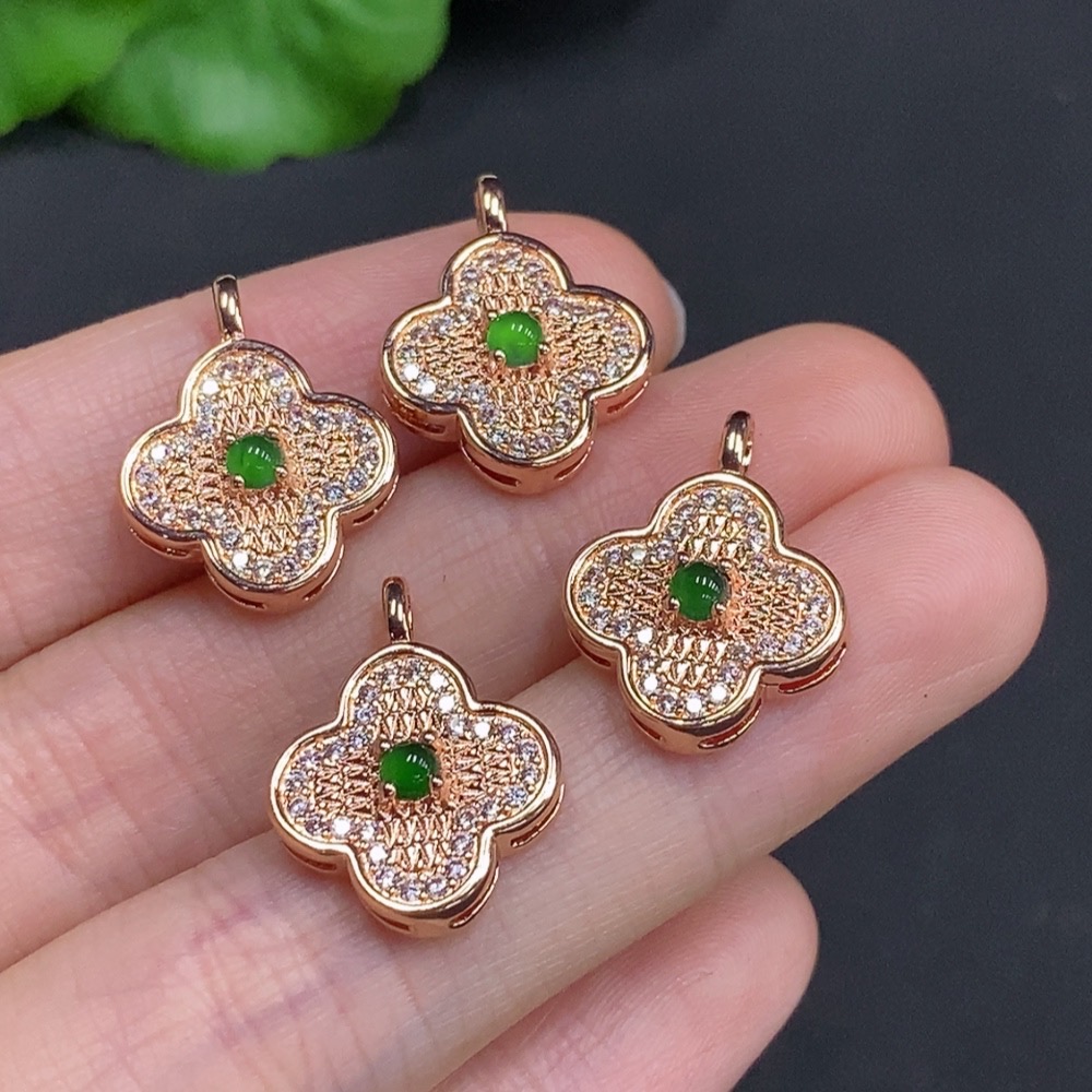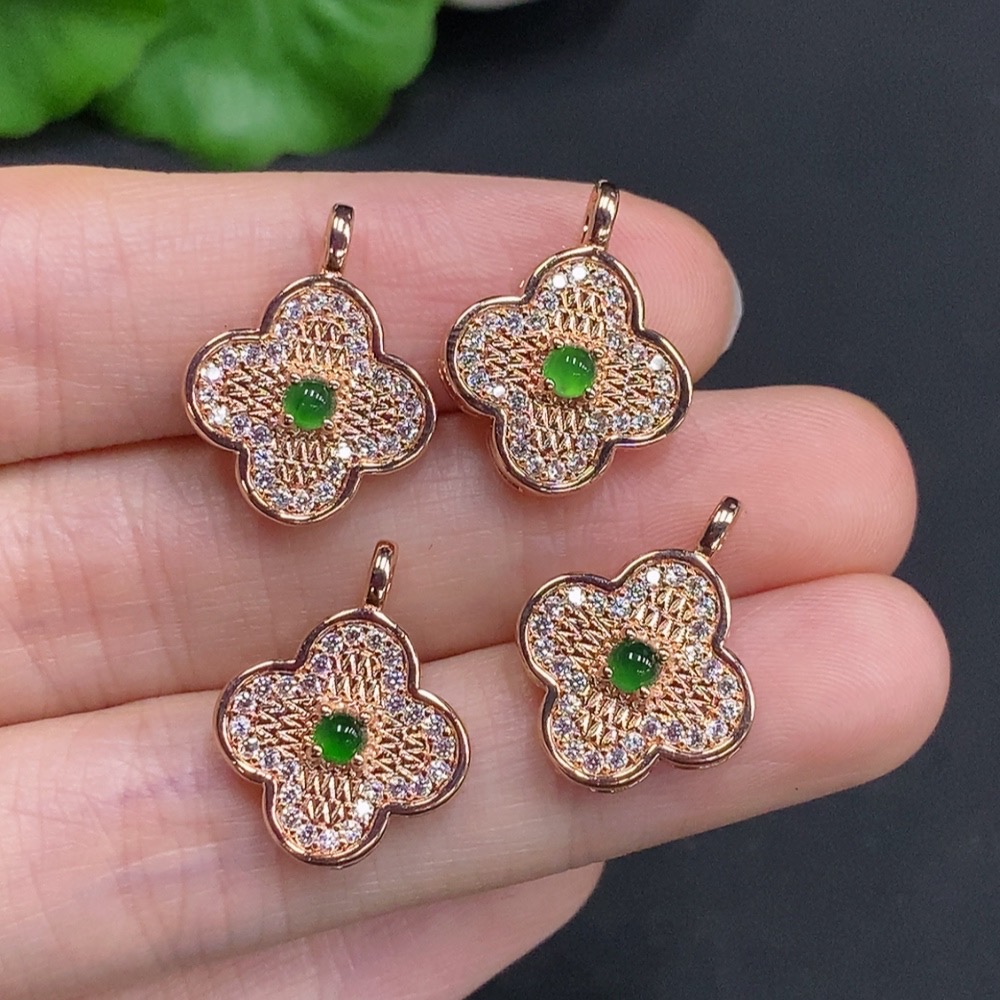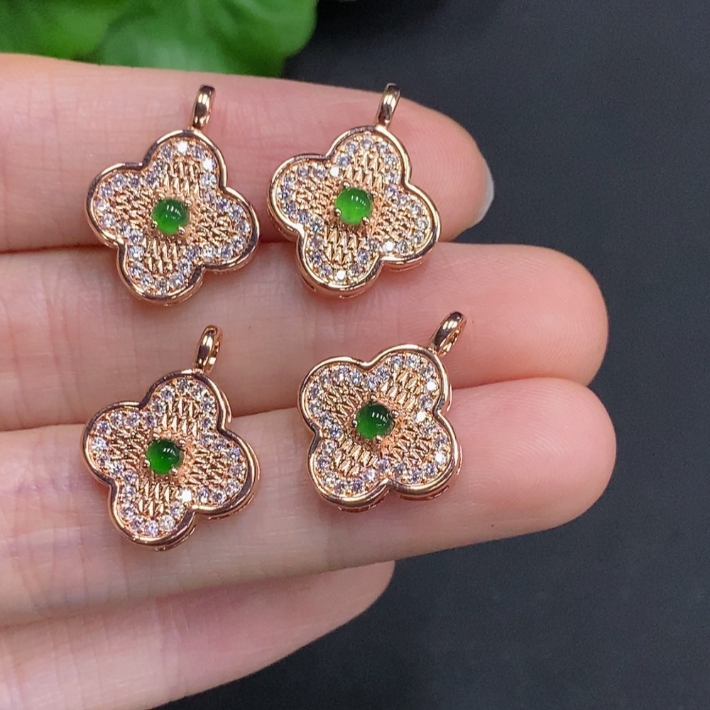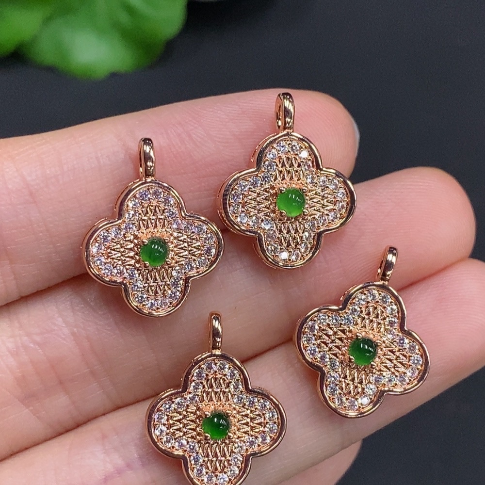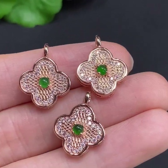 Jadeite Cabochon Inlaid Pendant Sell as a Lot Non-Gold Inlaid