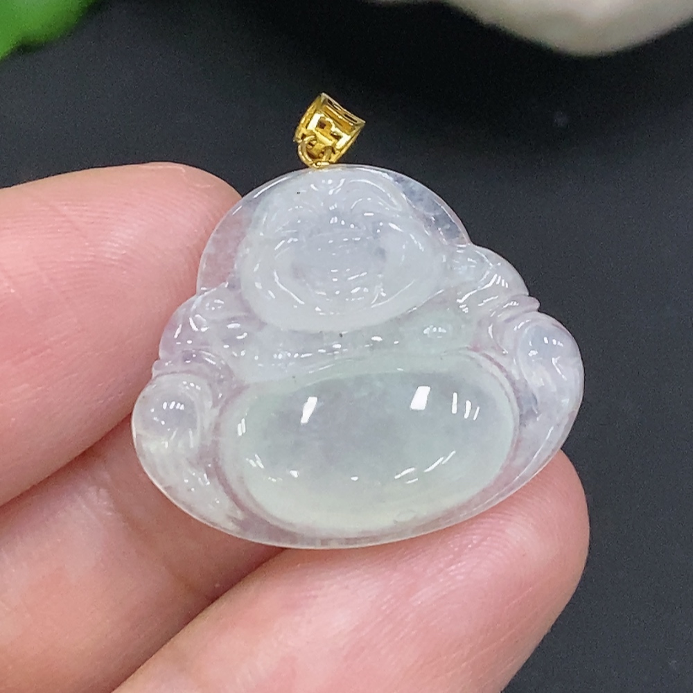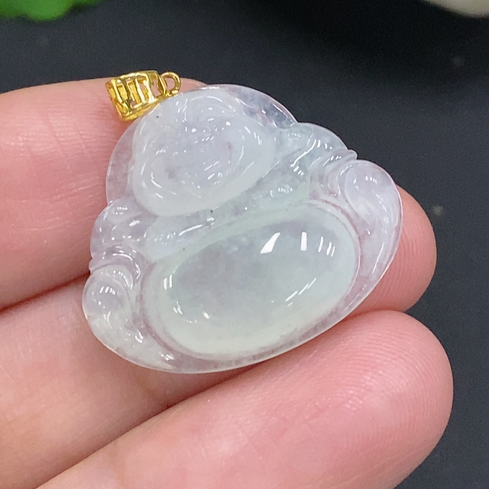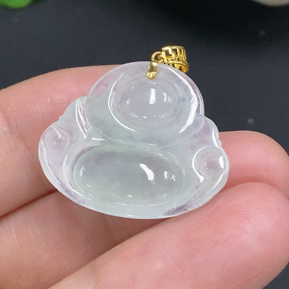 Jadeite Buddha Pendant with 18K Gold Clasp, Total Weight Approximately 3.4g
