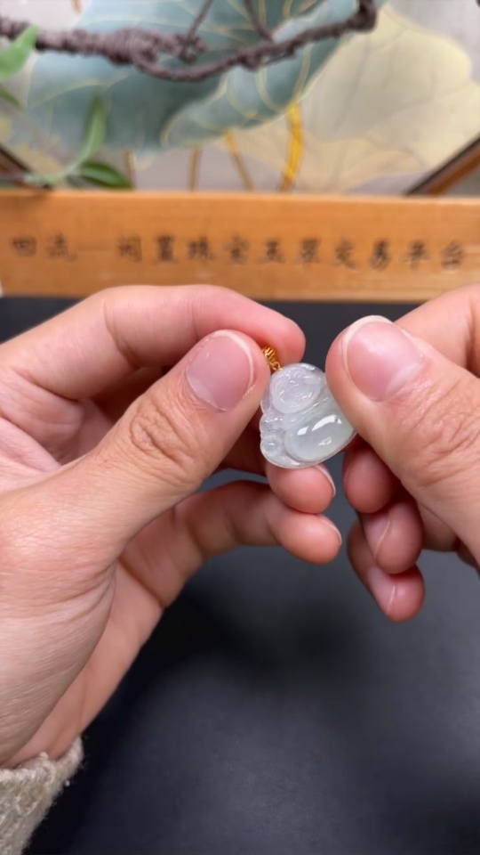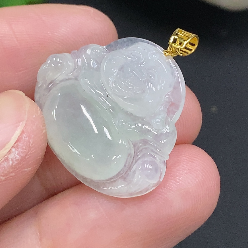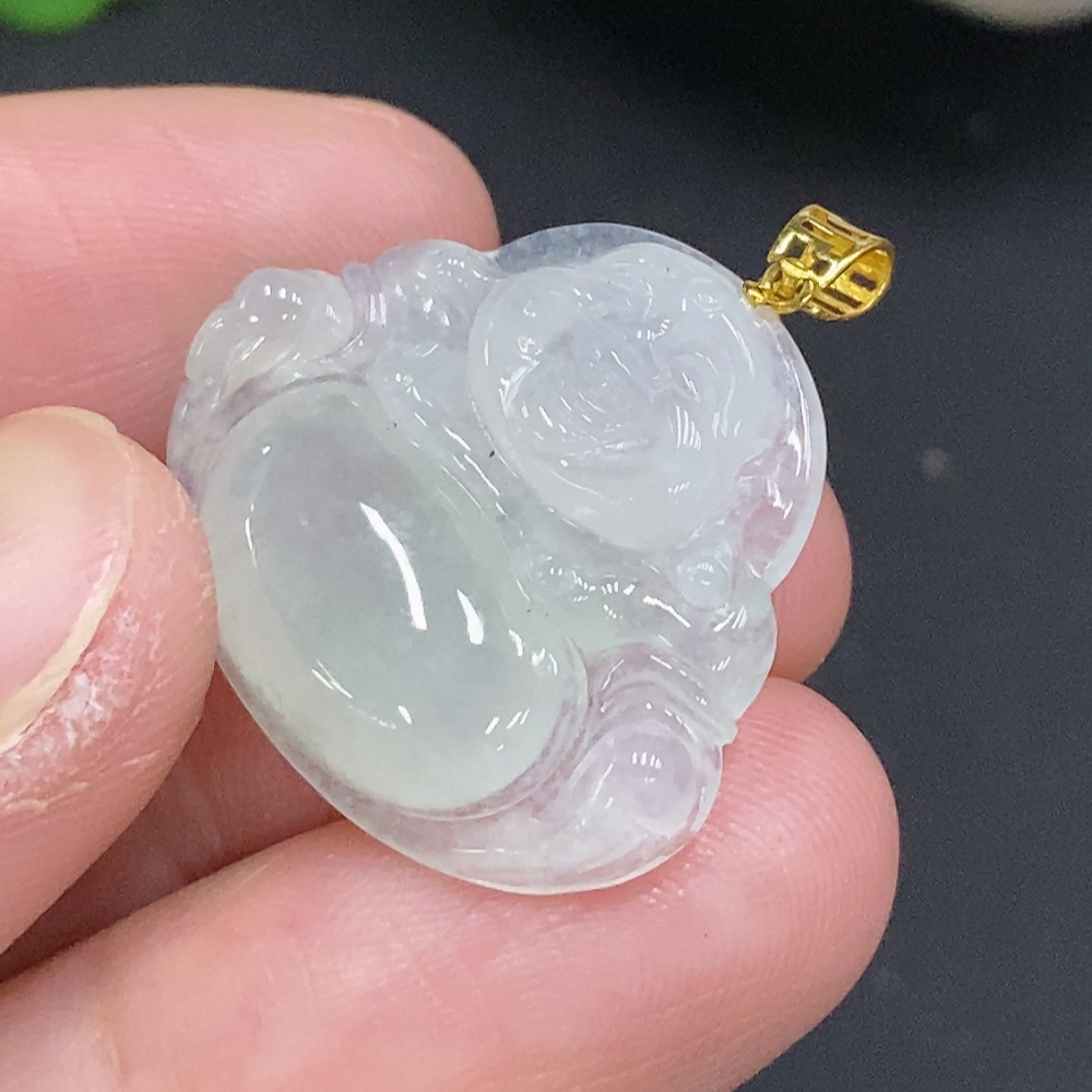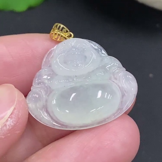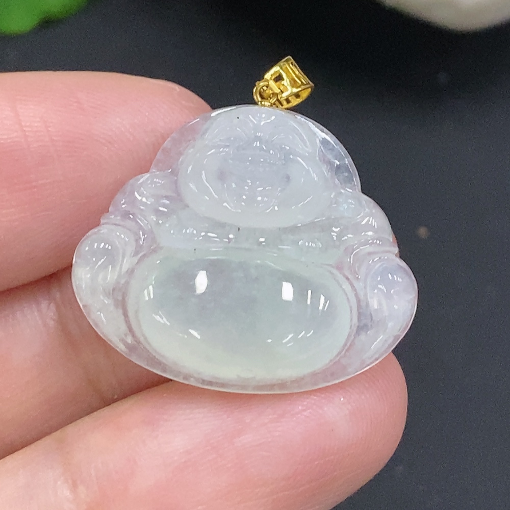 Jadeite Buddha Pendant with 18K Gold Clasp, Total Weight Approximately 3.4g