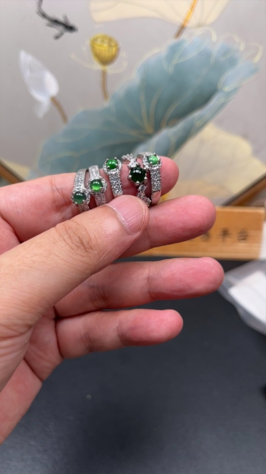 Jadeite Inlaid Pieces Non-Gold Adjustable Sell as a Lot