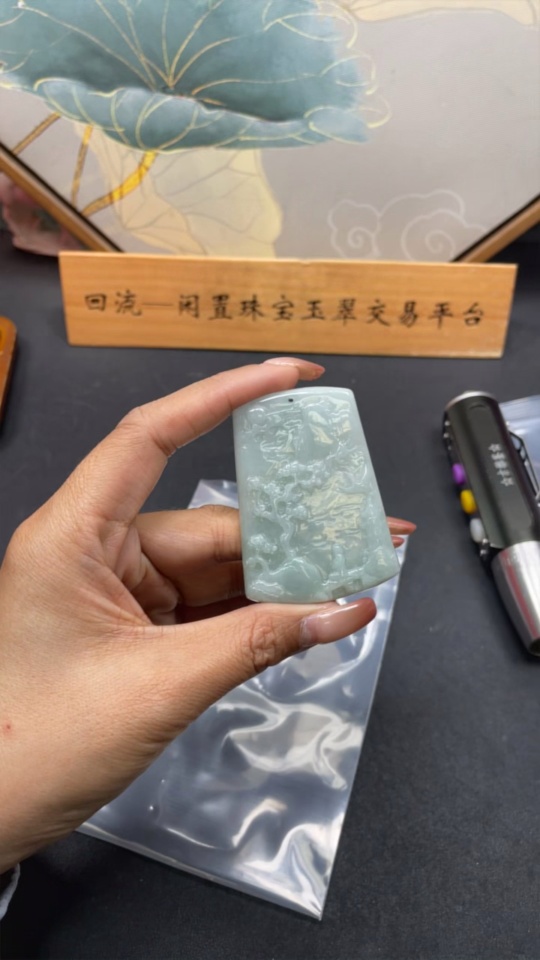 Trezaar - Jadeite landscape pendant, total weight approximately 29g