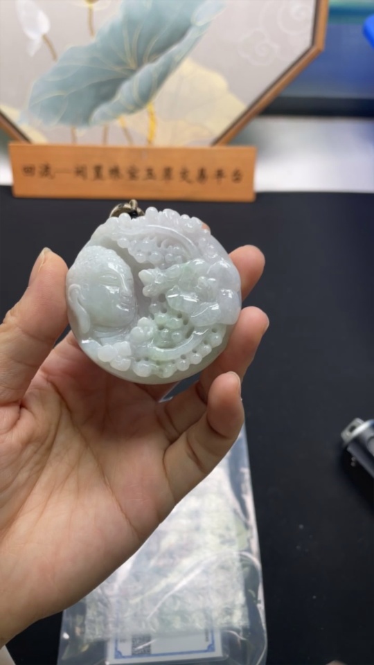 Jadeite Flower Blossom Reveals Buddha Pendant