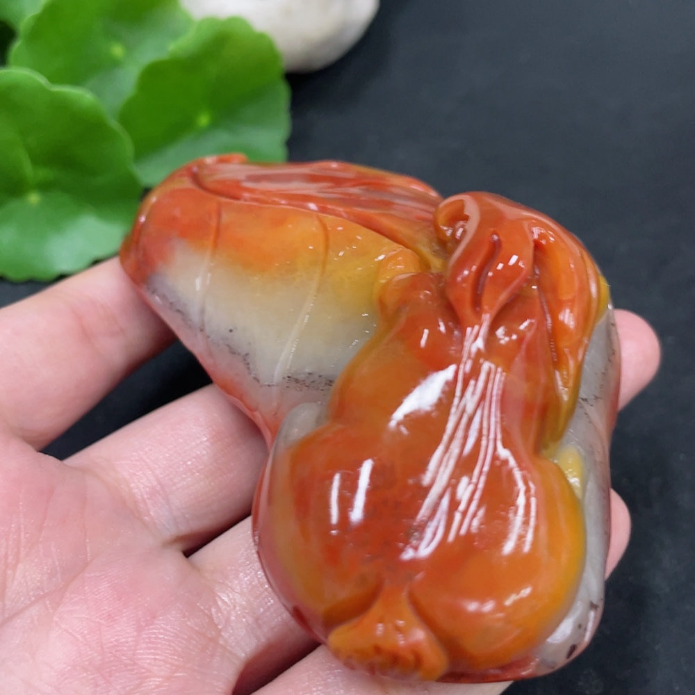 Shoushan Stone Handheld Carving - Rabbit, Total Weight Approx. 153.7g