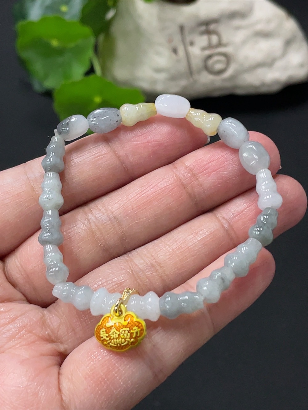 Jadeite Bracelet Non-Gold Inlaid Total Weight Approx. 9.5g