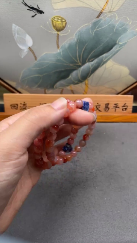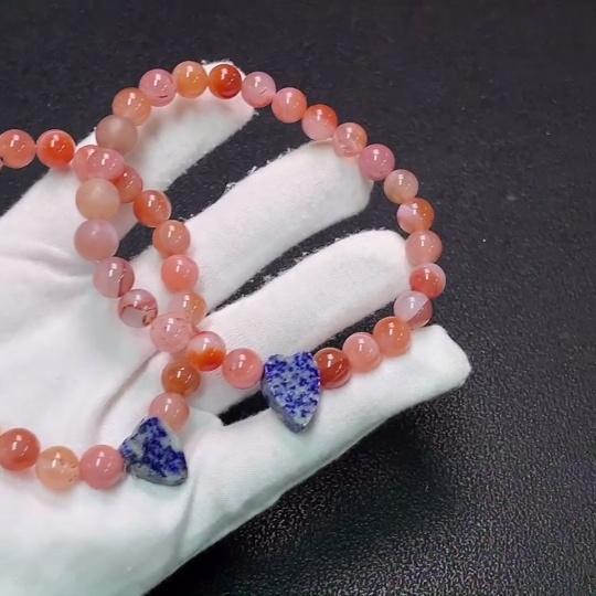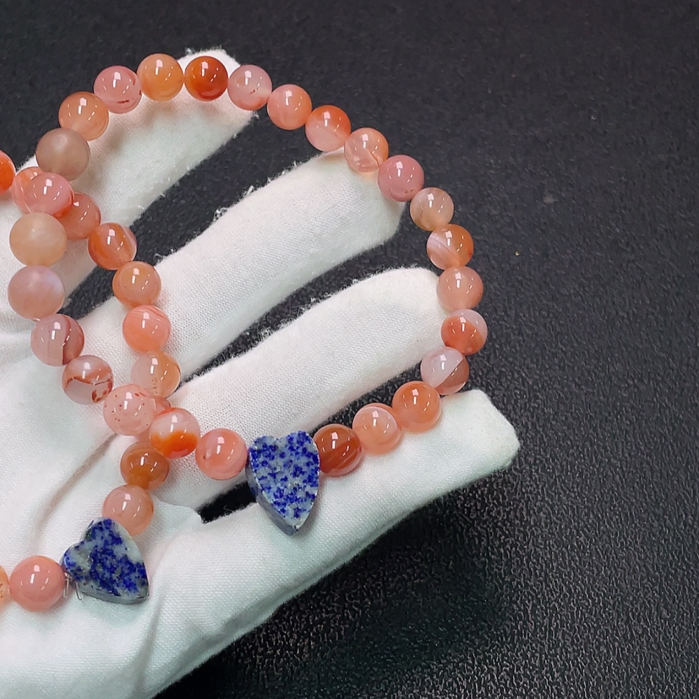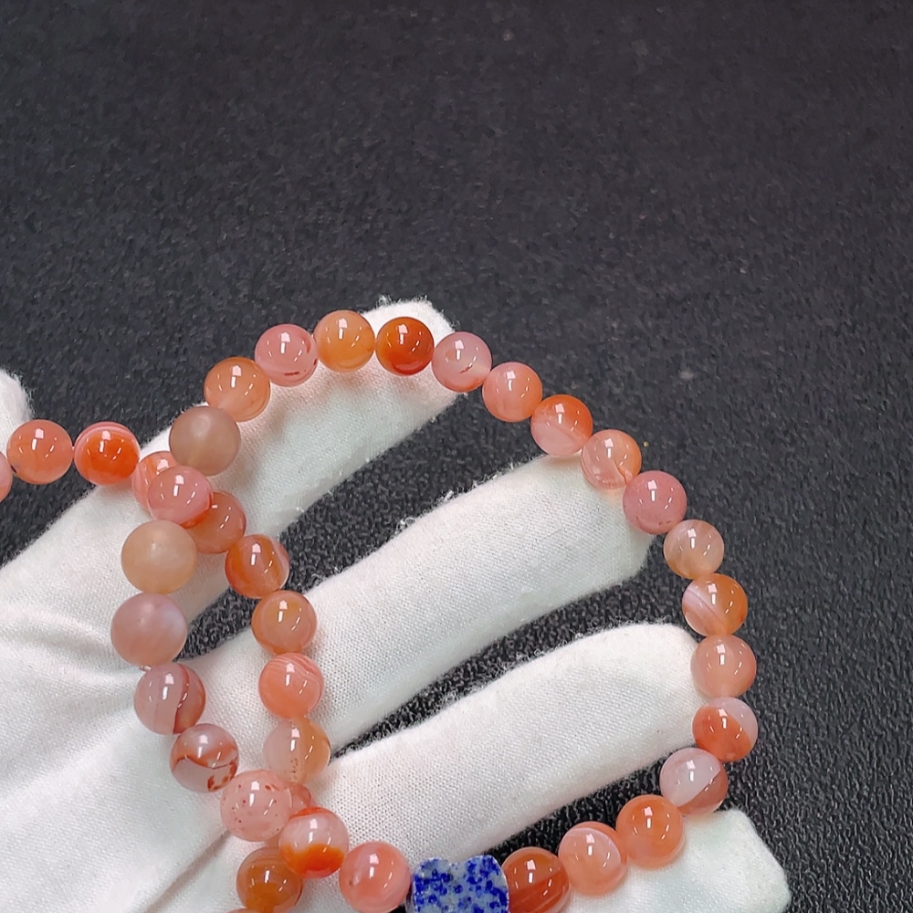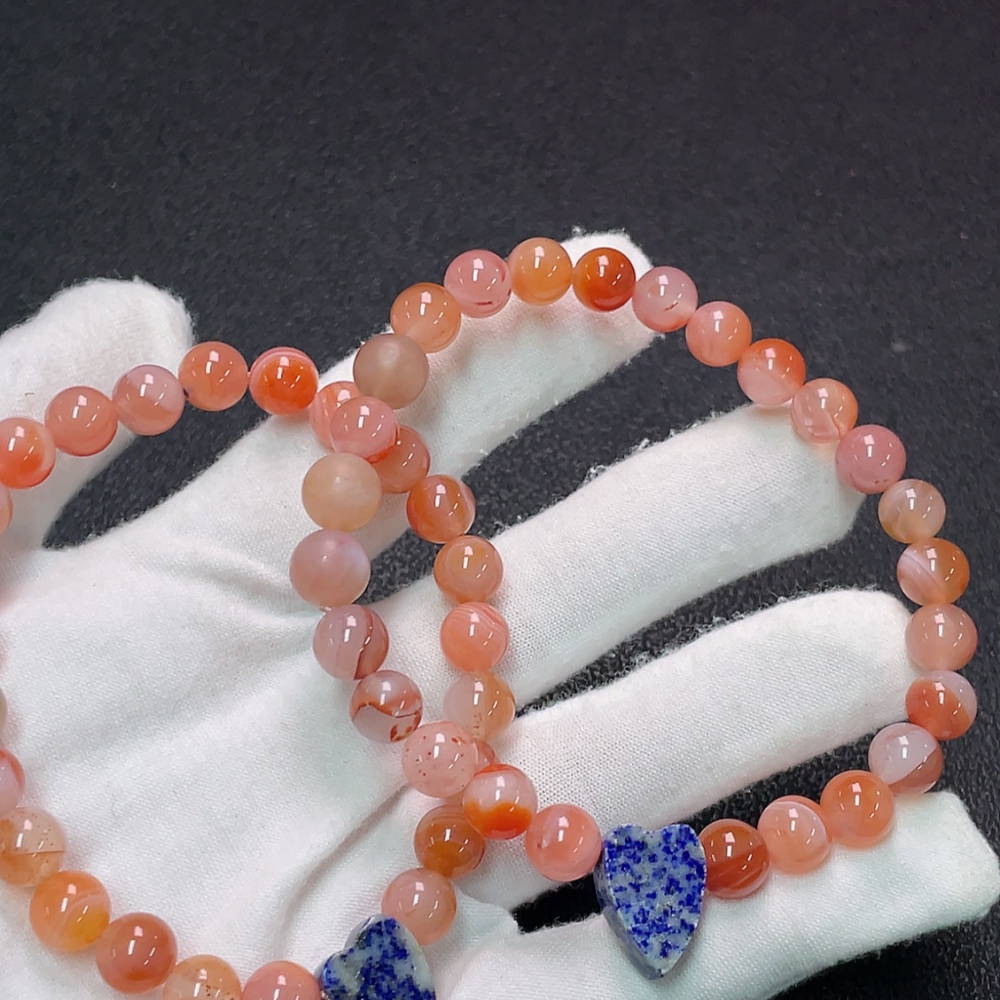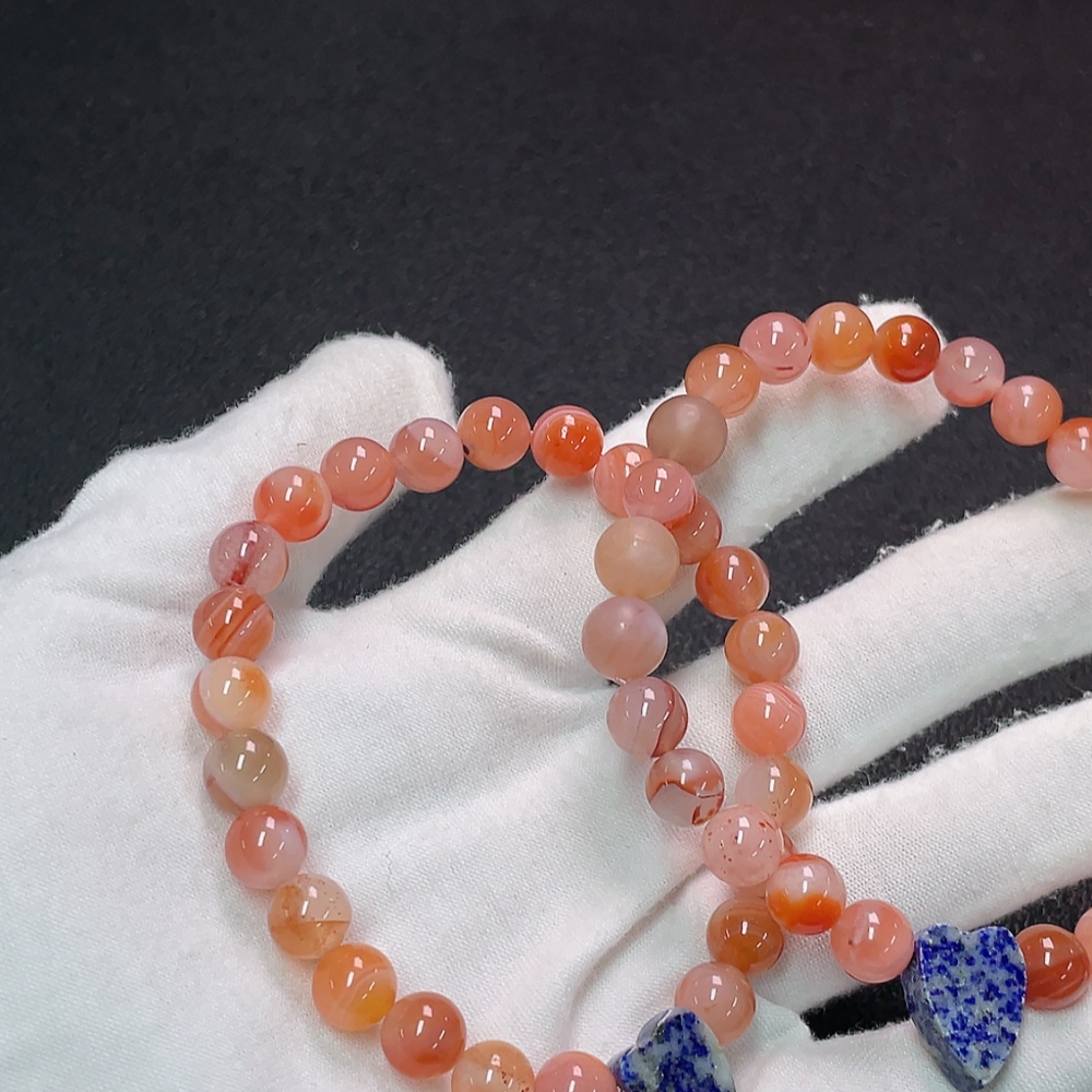 Red Agate Bracelet with Visible Organic Matter, Non-Natural Accent Stones, Total Weight Approx. 41.47g, Sell as a Lot