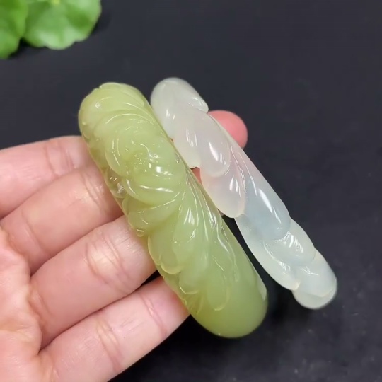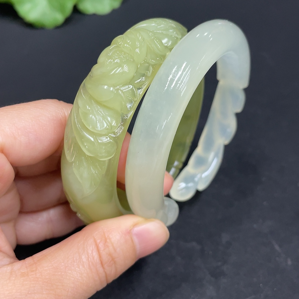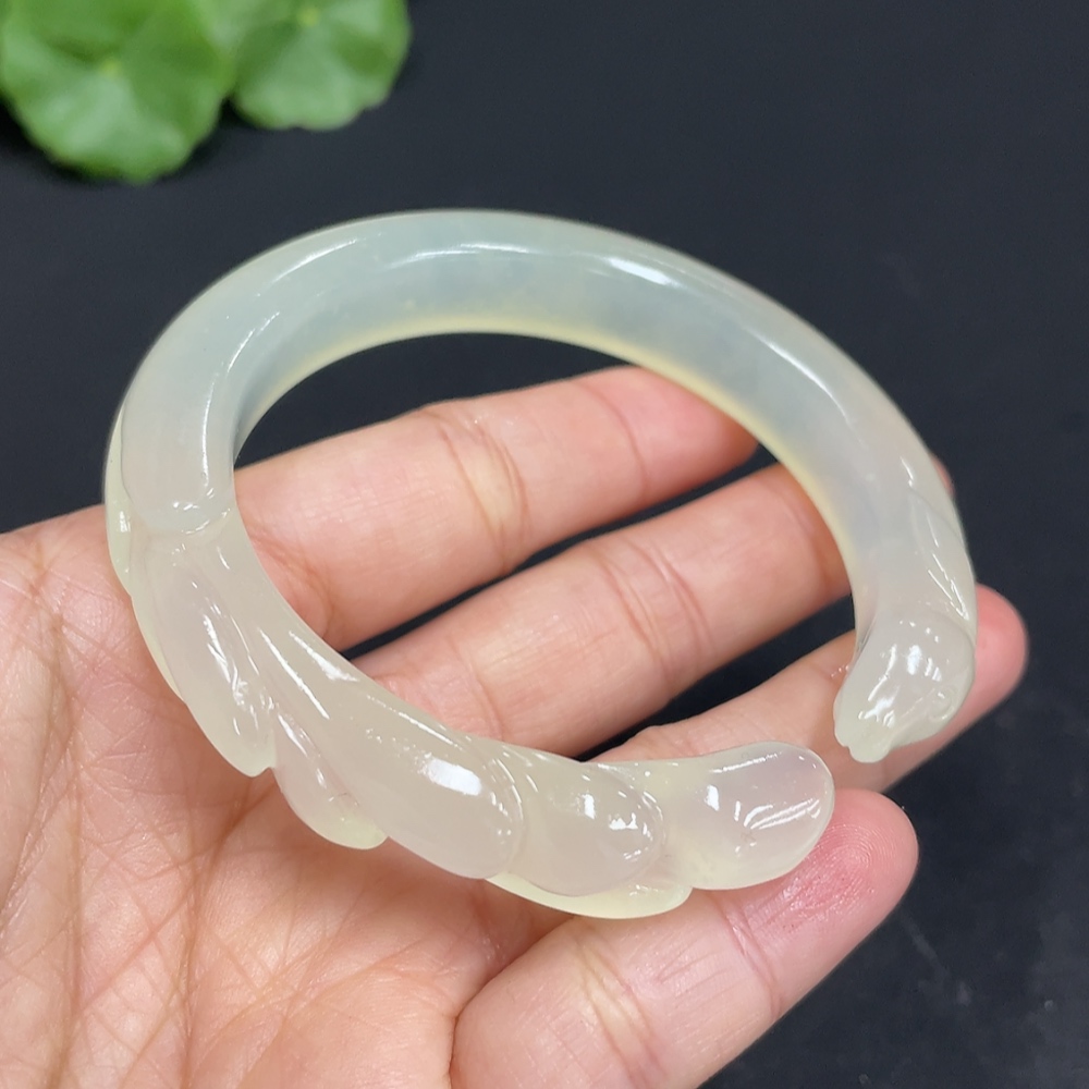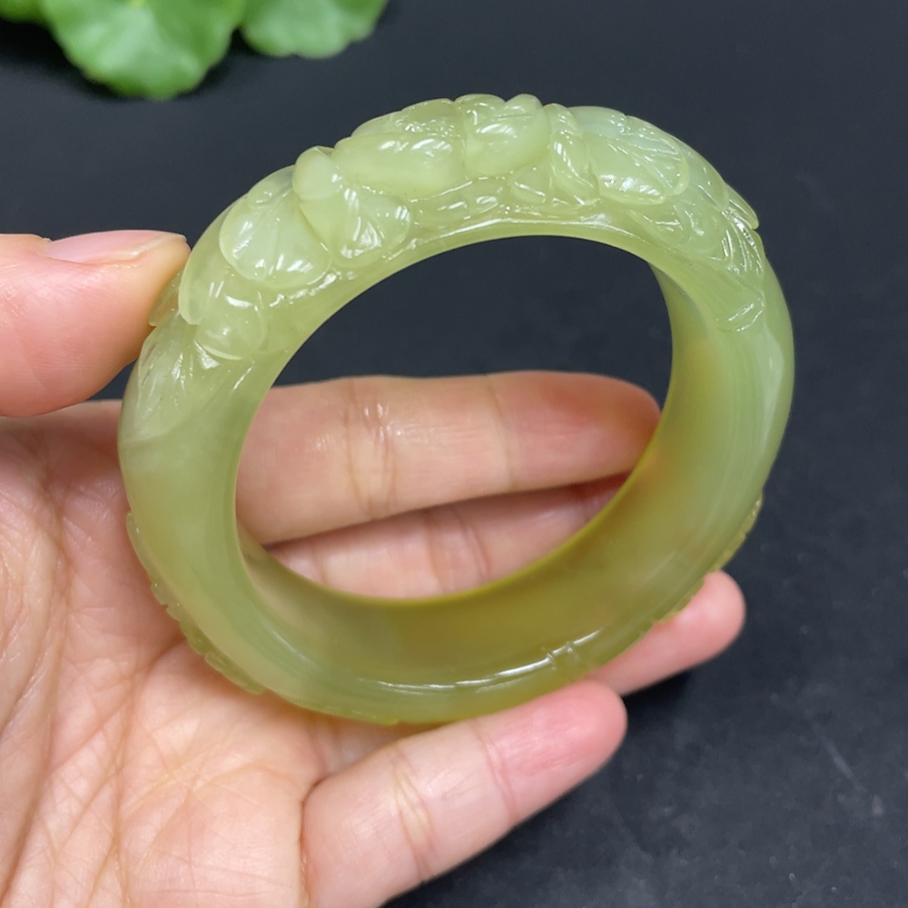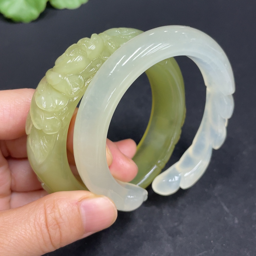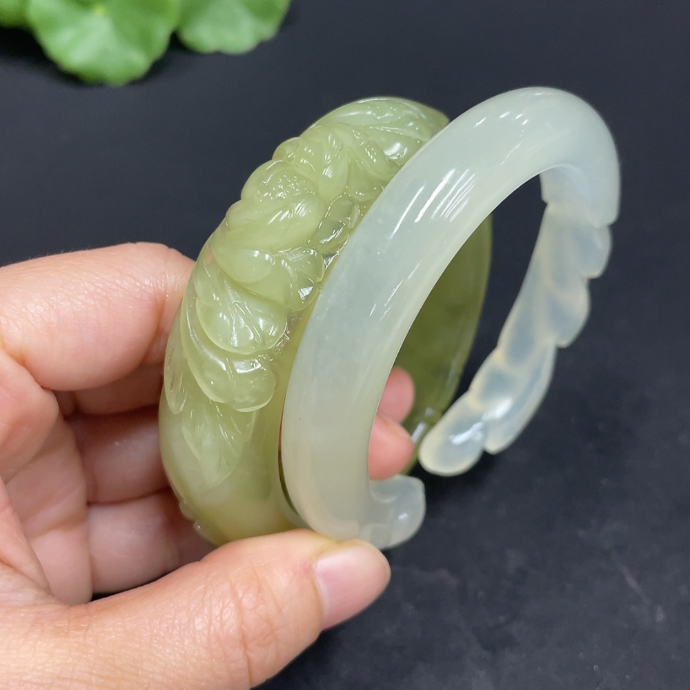 Xiuyu (Serpentine Jade) Carved/Nine-Tailed Fox Bracelet Size 52.6/54.4 Total Weight Approx. 105g
