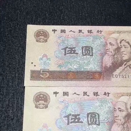 Trezaar - 805 Fourth Edition 5-Yuan Two Consecutively Numbered Banknotes with Sequential Half-Digit Prefix in Between