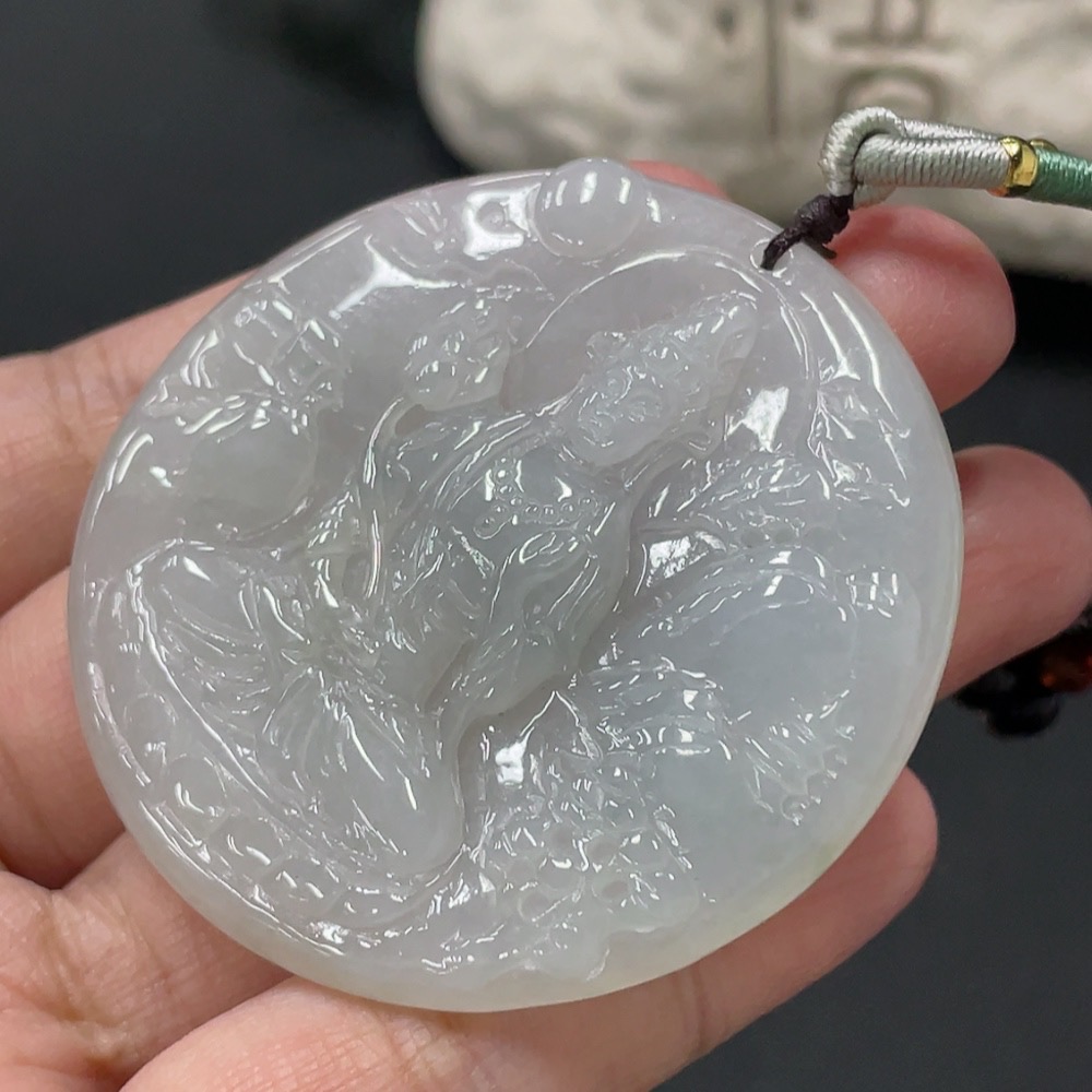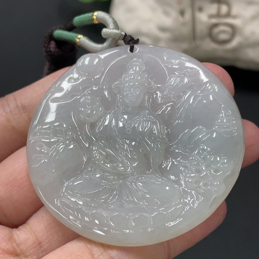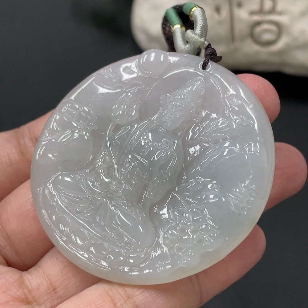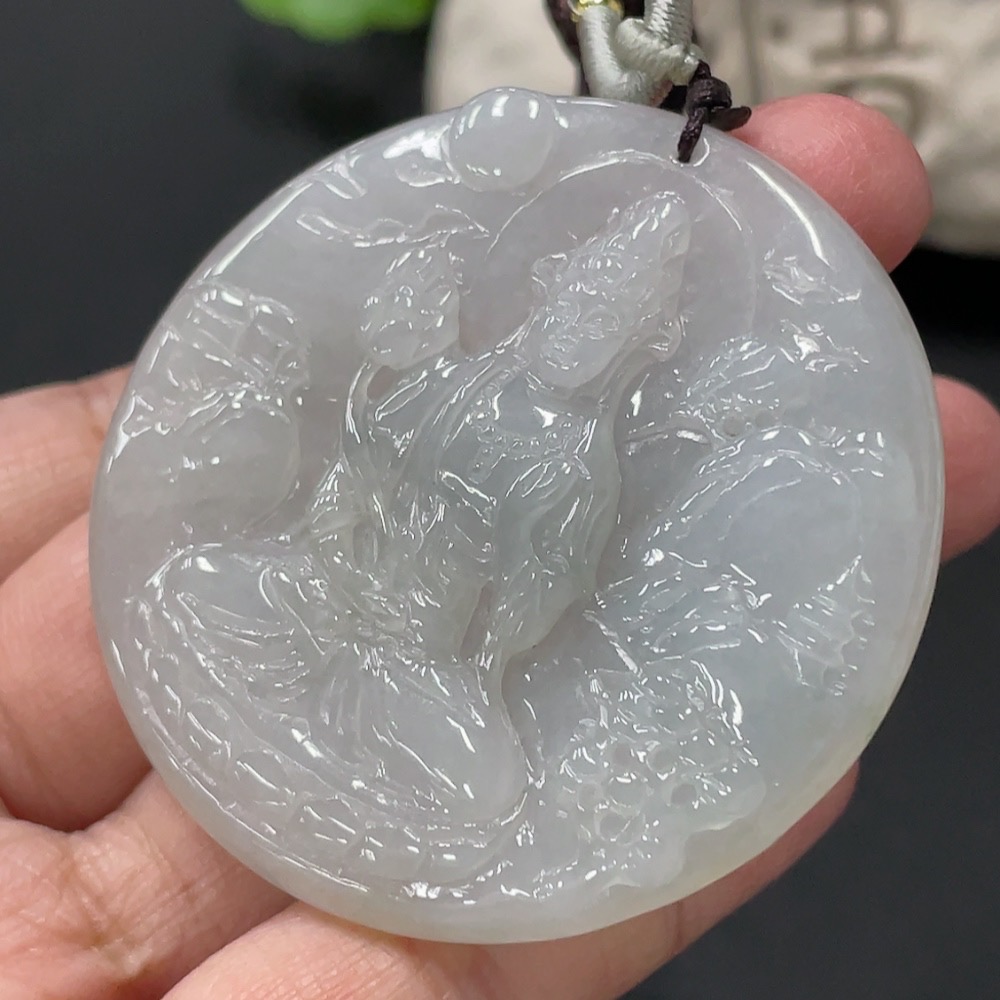 Jadeite Guanyin Pendant, Total Weight Approx. 28.7g
