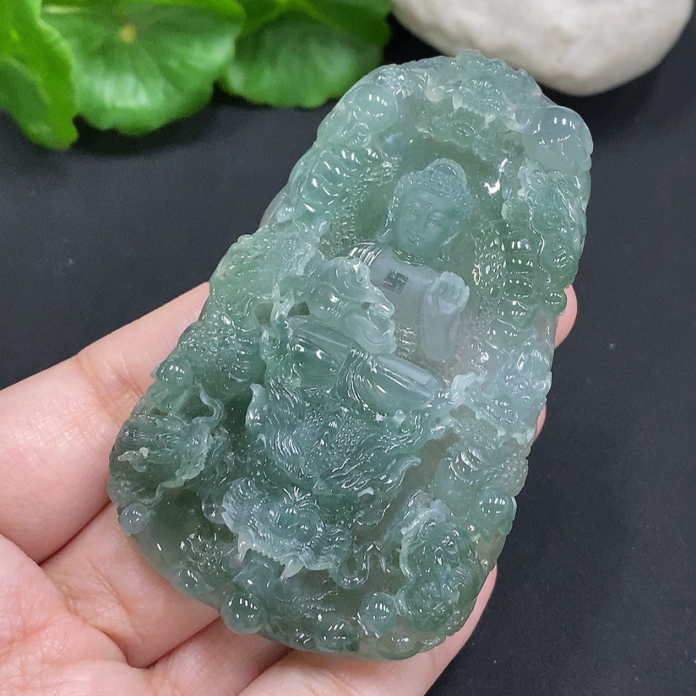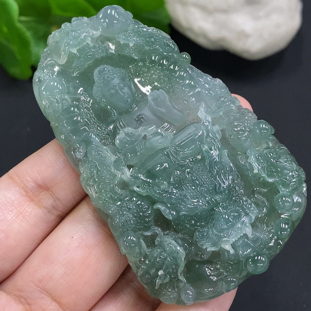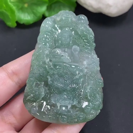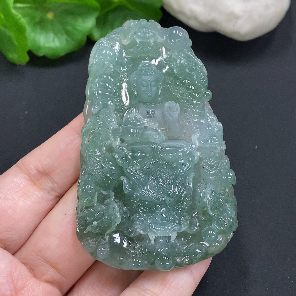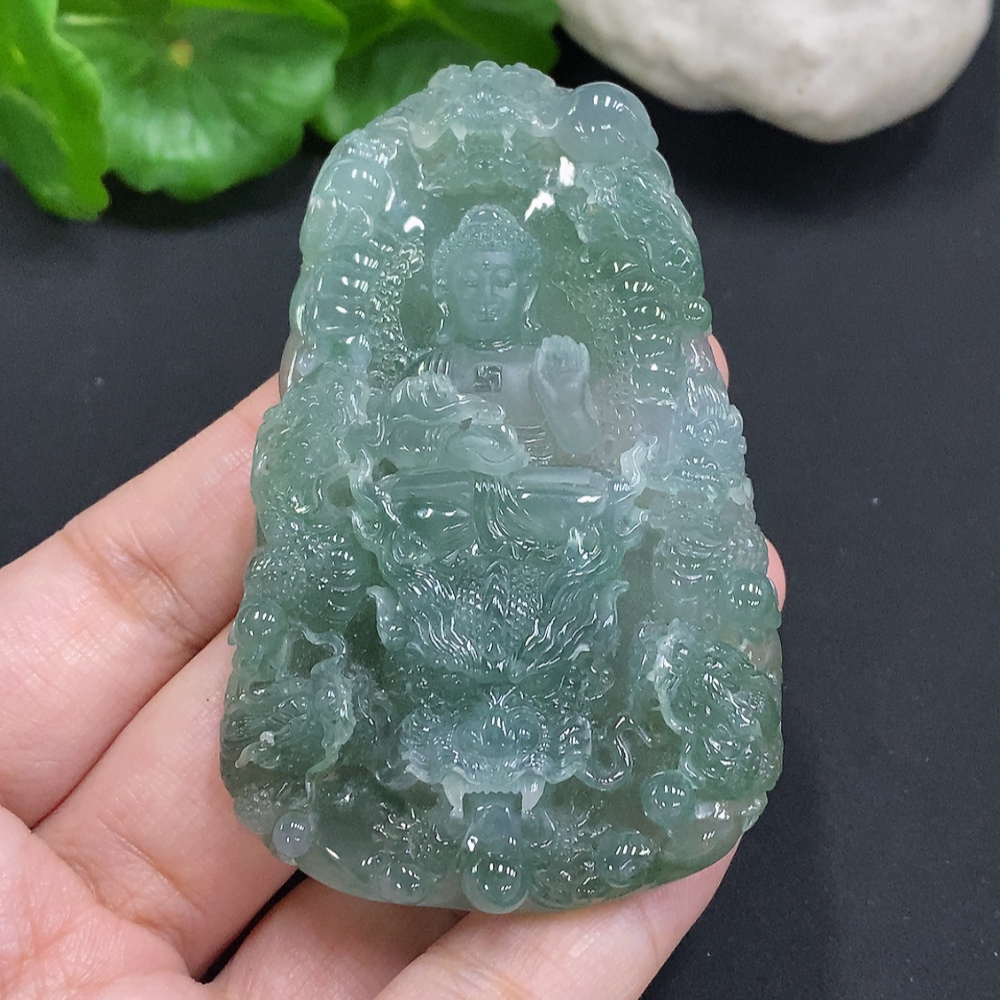 Jadeite Amitabha Buddha Pendant, Total Weight Approximately 65.2 Grams