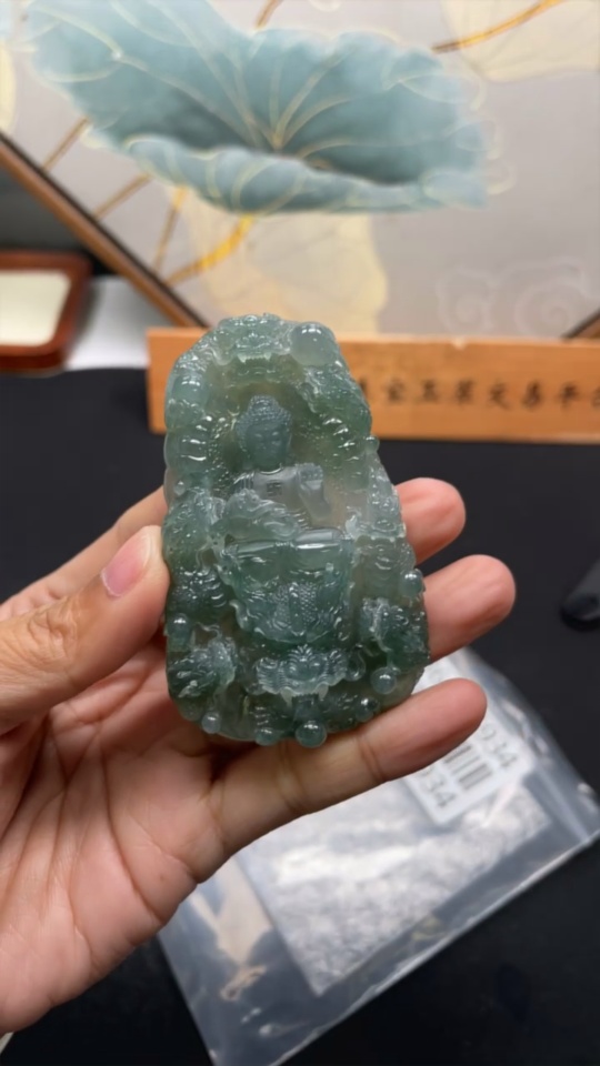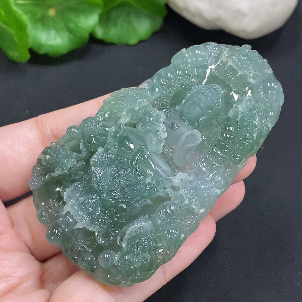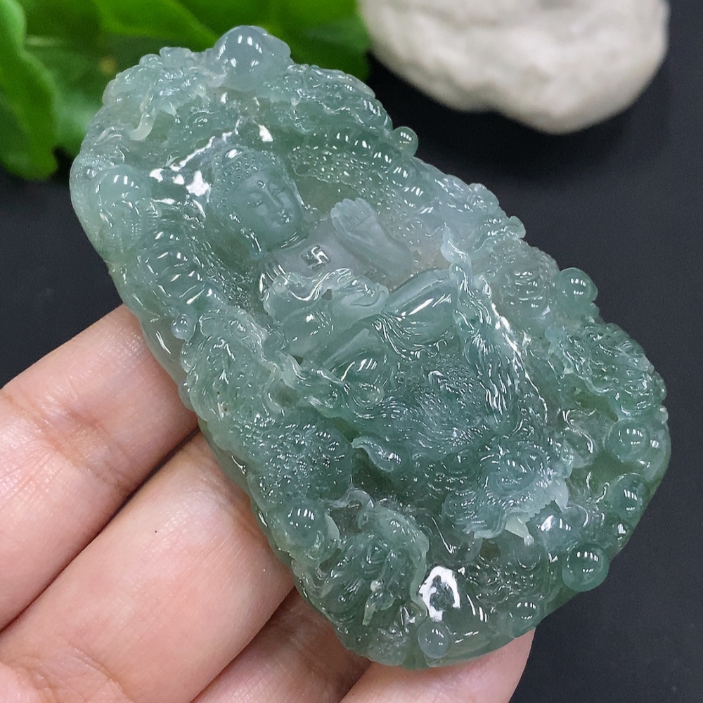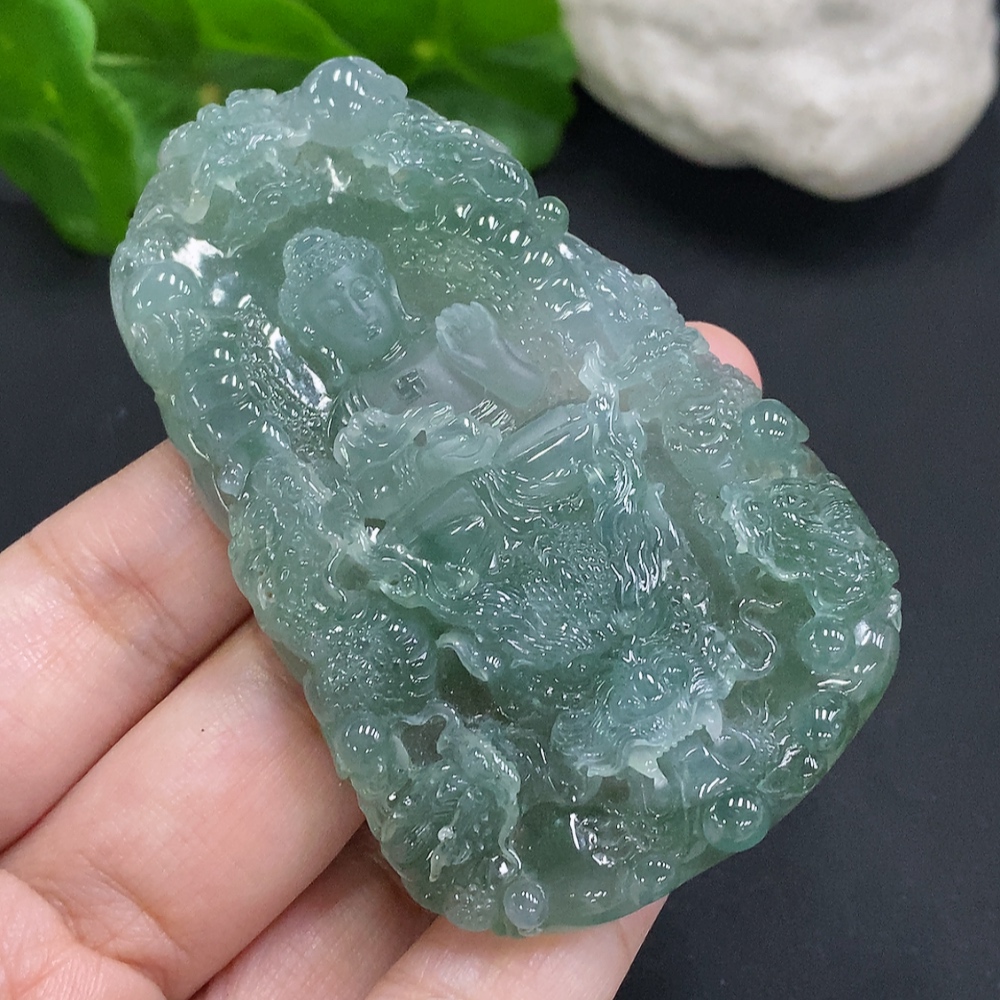 Jadeite Amitabha Buddha Pendant, Total Weight Approximately 65.2 Grams
