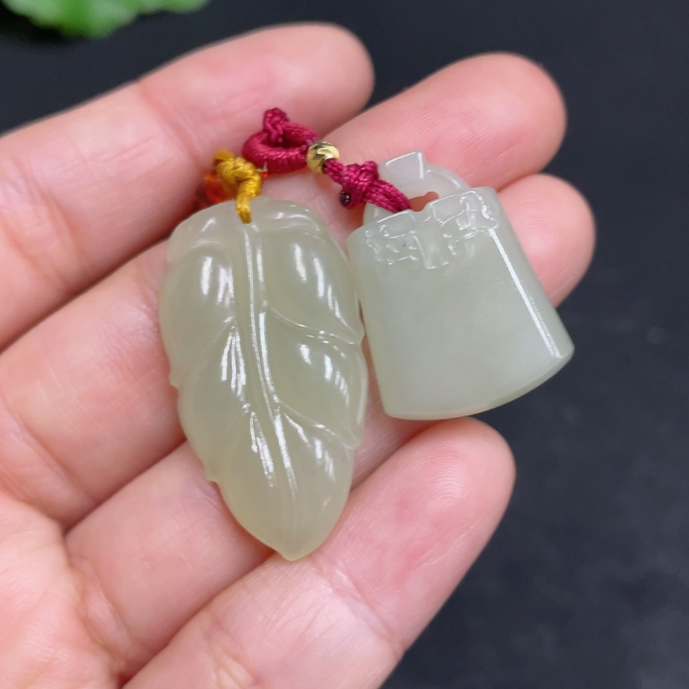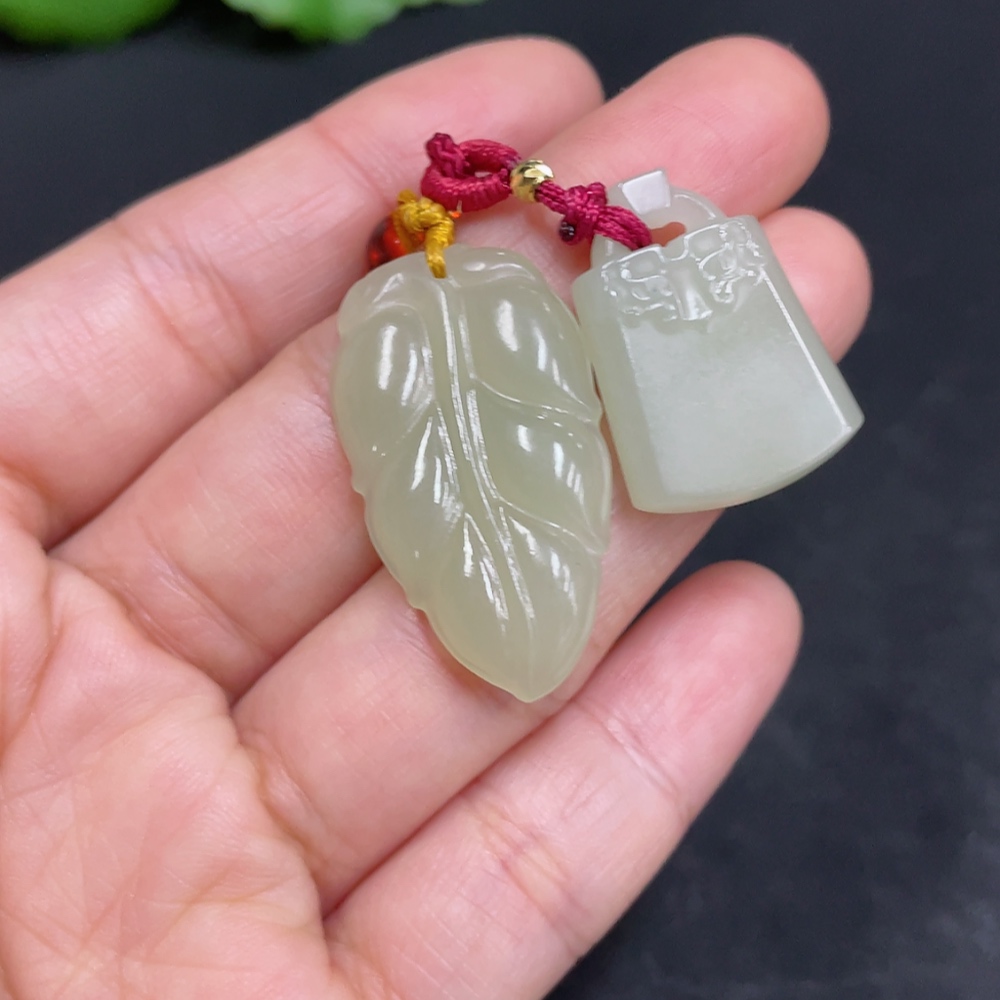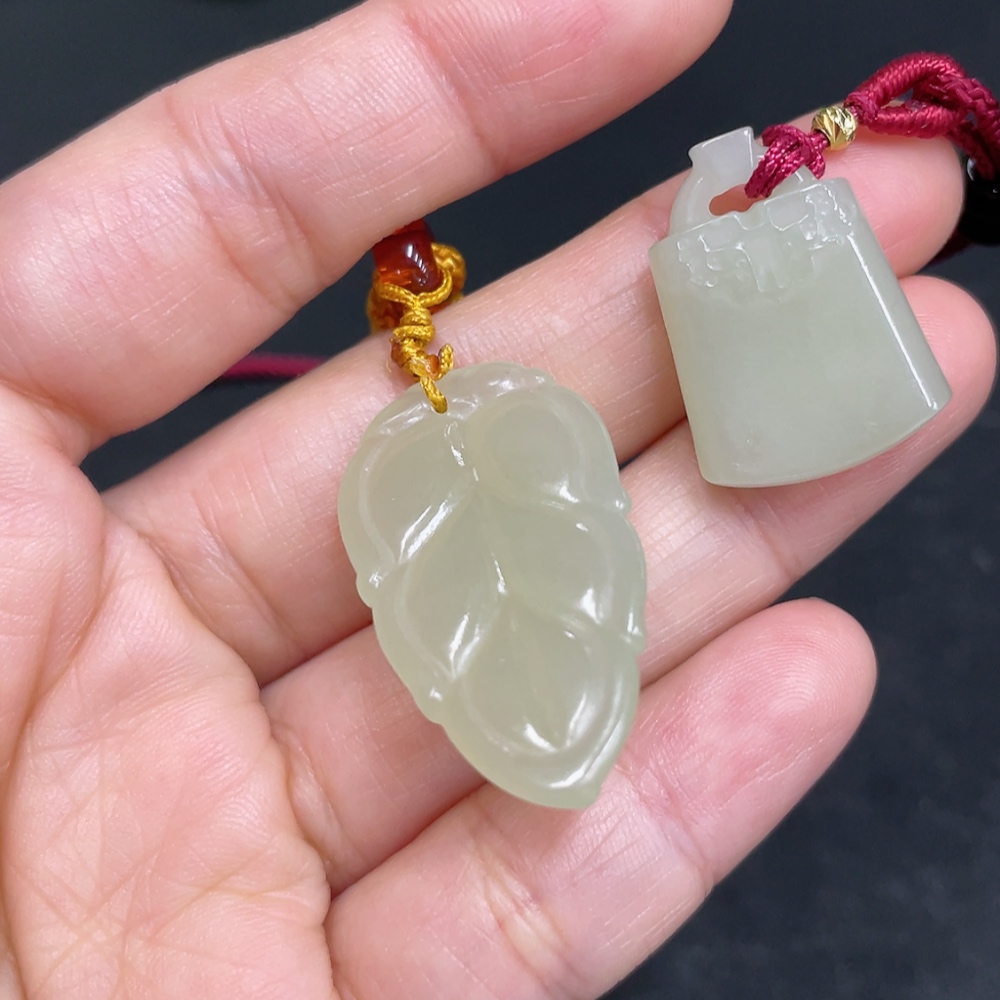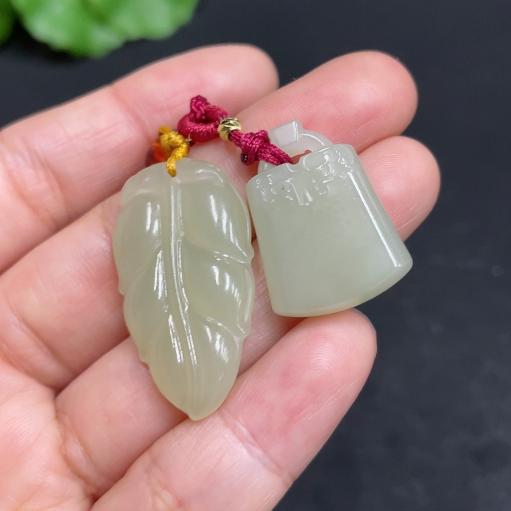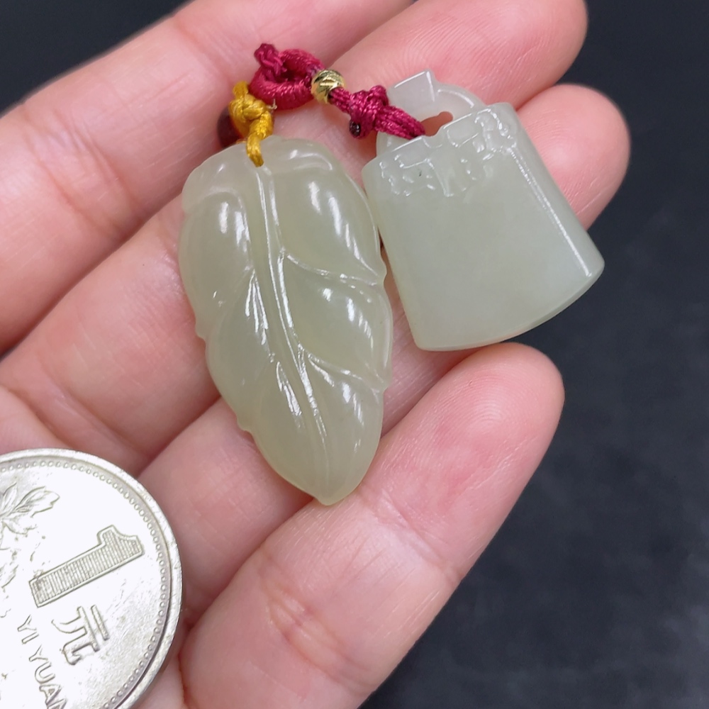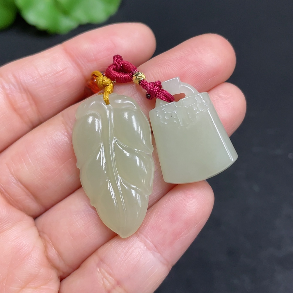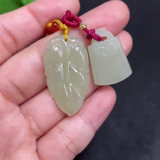 Hetian Jade Pendant Antique Piece Leaf Total Weight Approx. (Including Rope) 11g